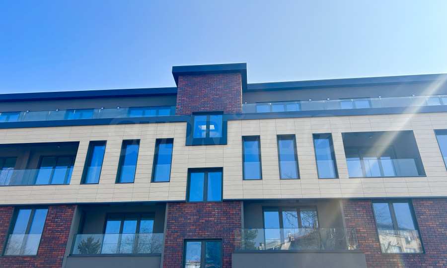 Сградата има модерен облик, като е разделена на два визуални елемента по височина. Първият и вторият етаж формират основата, върху която третият етаж изпъква с индивидуален стил и елегантност. Фасадата е облицована с висококачествени материали, които осигуряват отлична енергийна ефективност. Дизайнът съчетава тухлена визия и каменна облицовка за естетика и устойчивост.