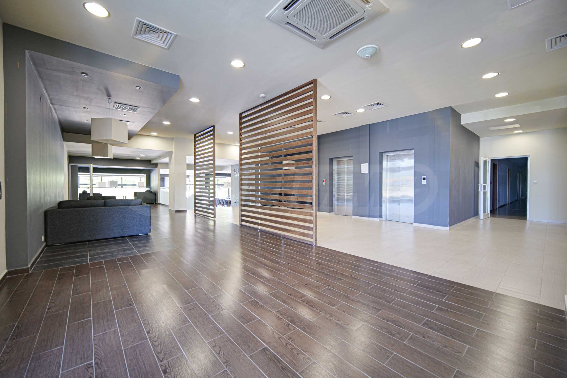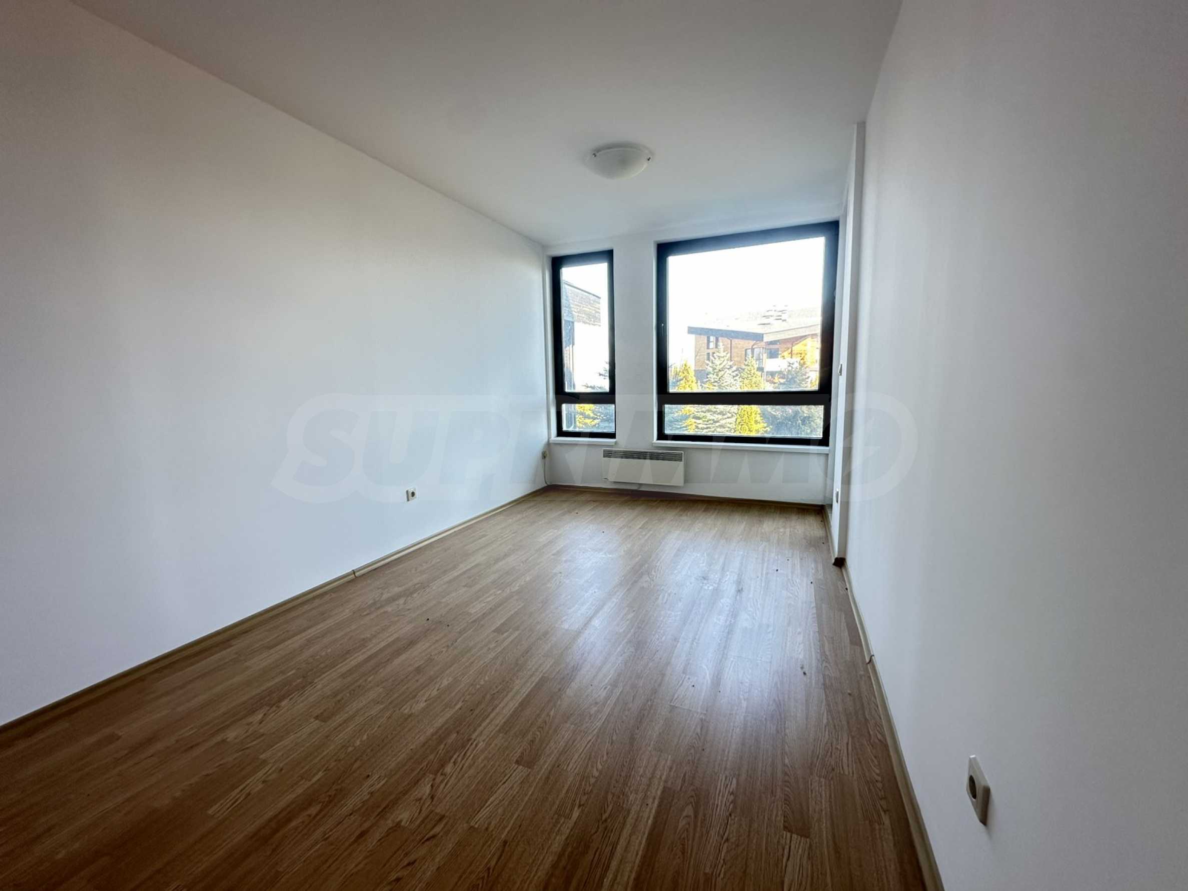Подовата настилка е с ламинат, прозорците са с алуминиева дограма, стените са боядисани с латекс.