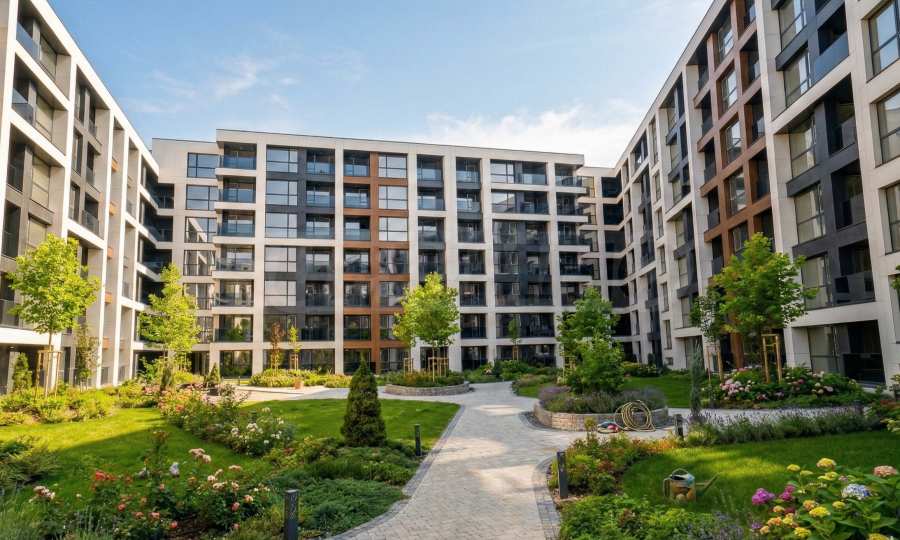В комплекса е предвиден богато озеленен вътрешен двор 4.3 дка с алея, детски площадки, фонтани и барбекю зона, а също контрол на достъп, охрана и видеонаблюдение.
