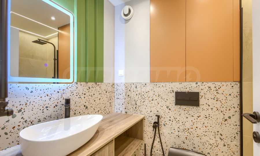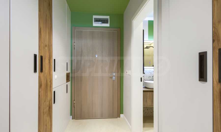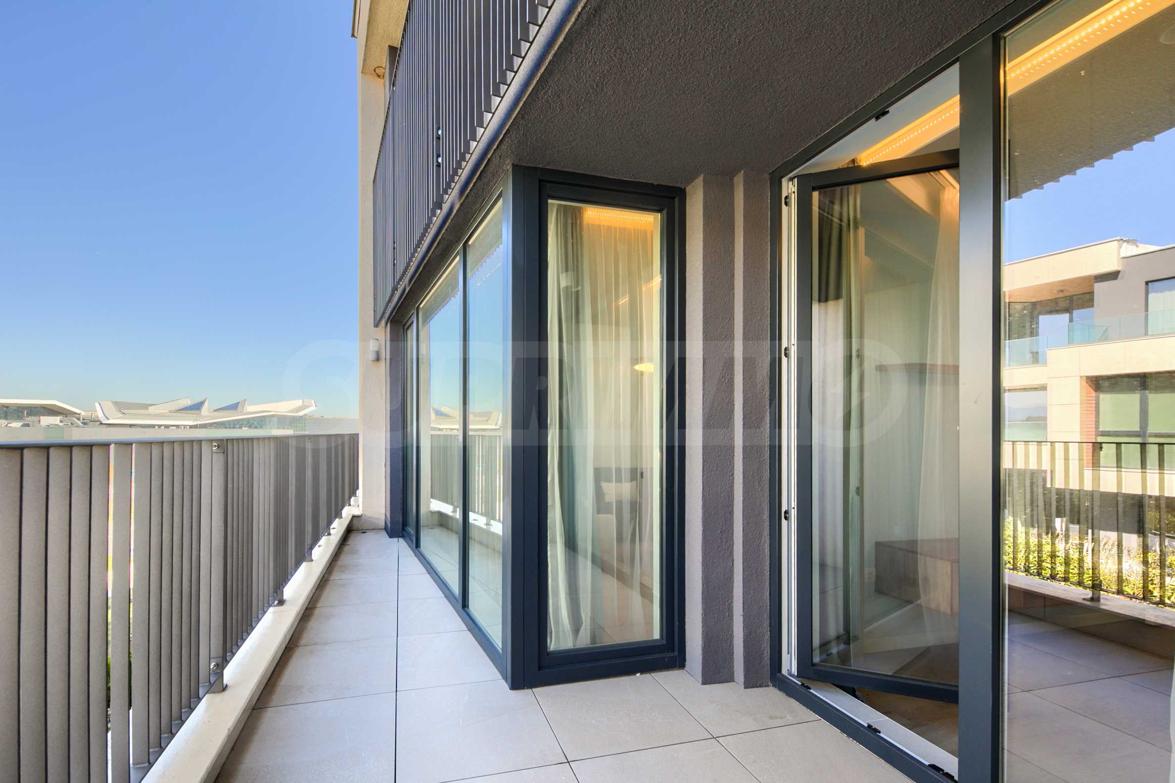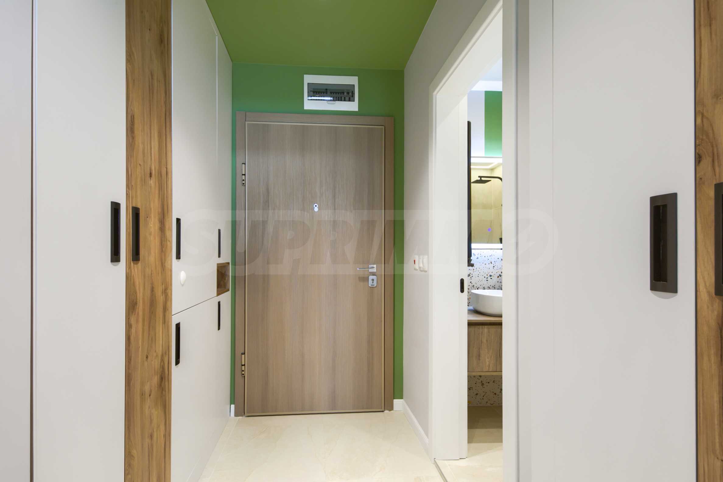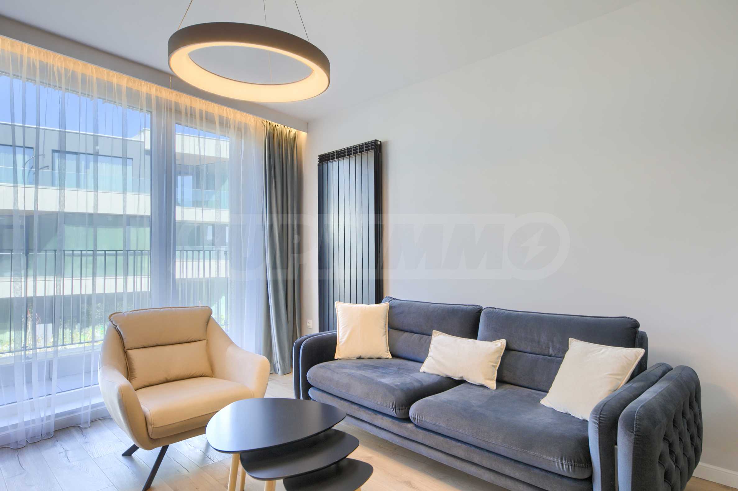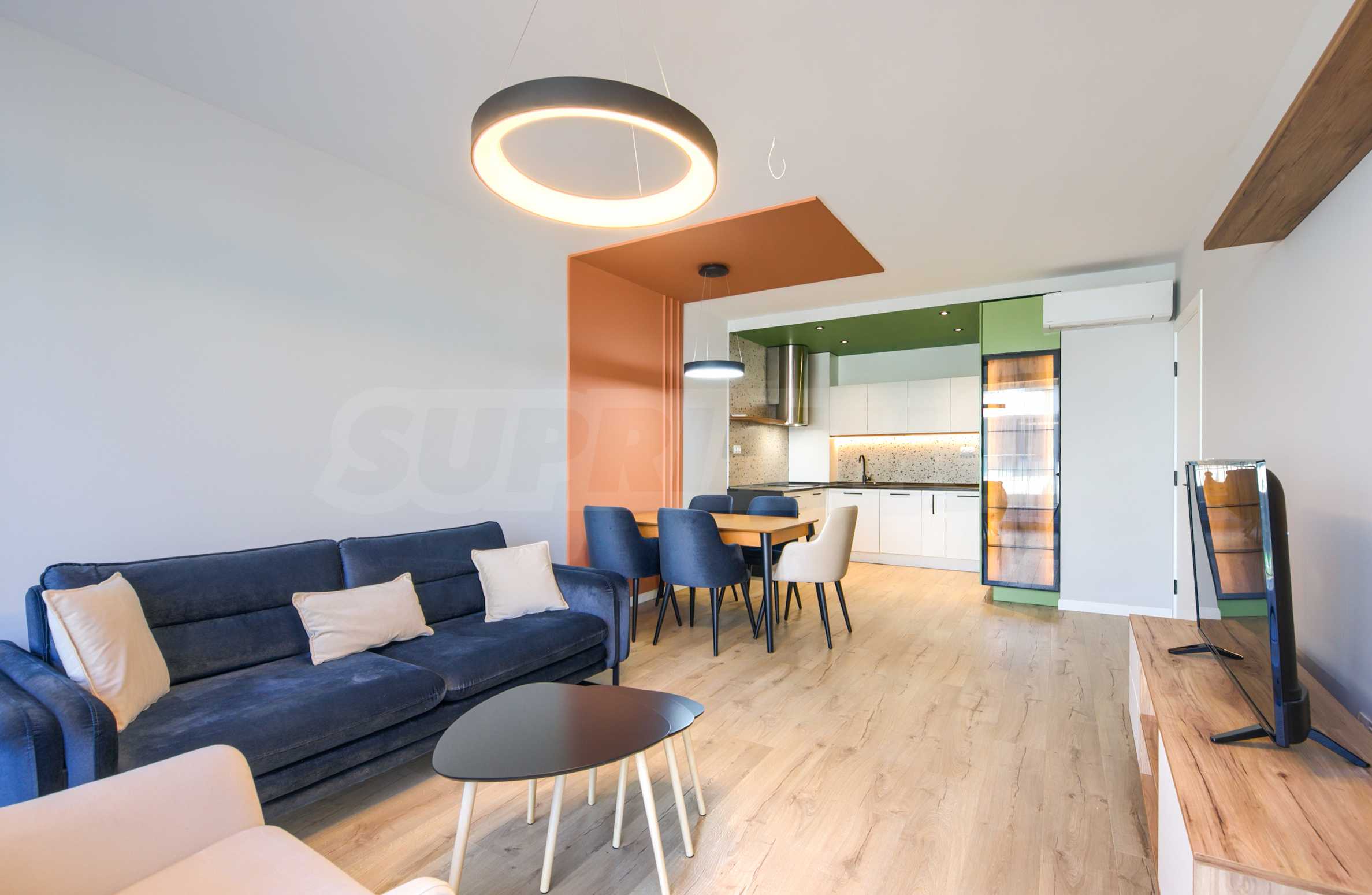Жилището е обзаведено с поръчкови мебели и висок клас довършителни работи. Използвано е съвсем малко и е в отлично състояние. Настилките са гранитогрес, а дограмата е Schüco, което осигурява добра изолация и комфорт.