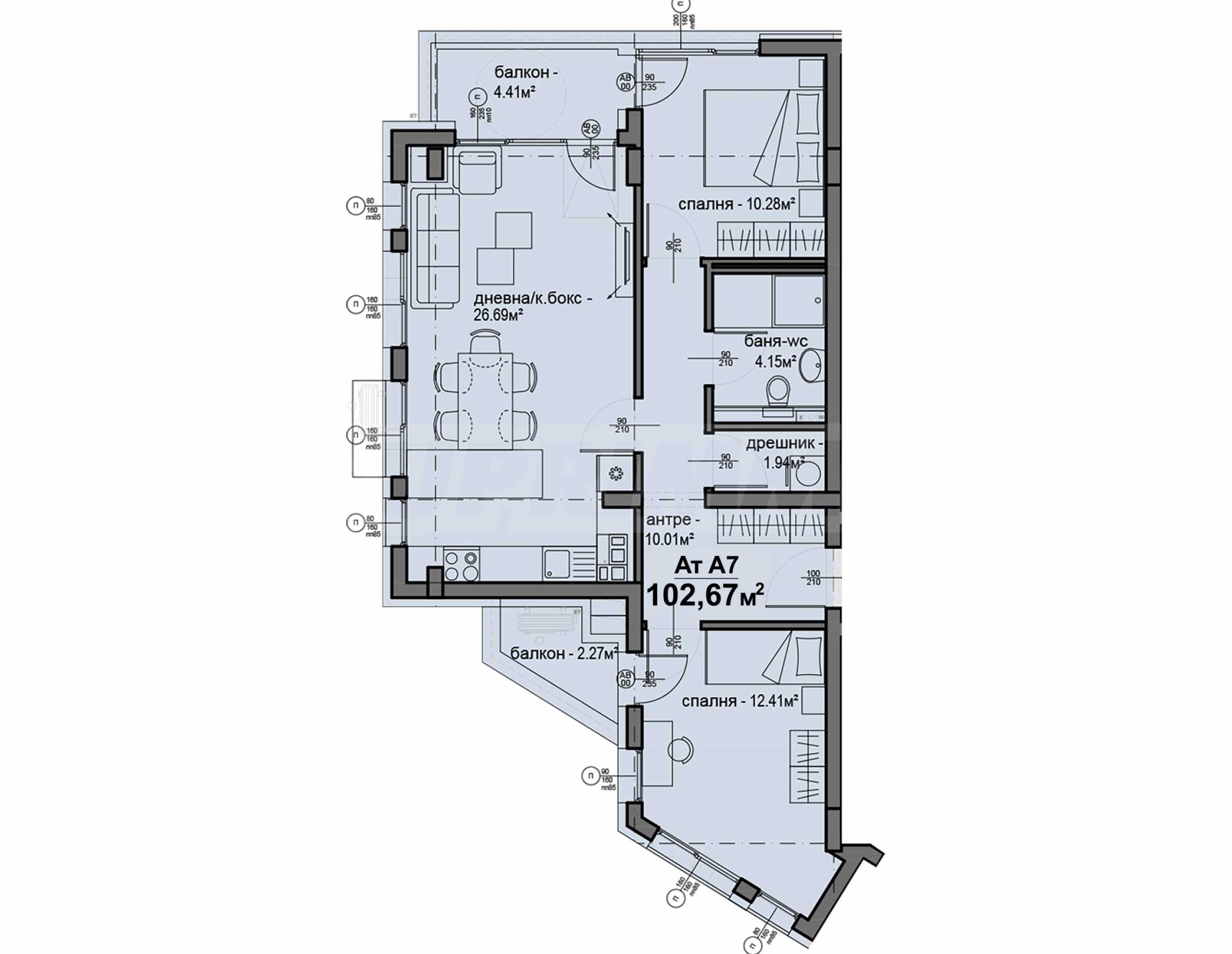 • обща площ: 102.67 кв.м.