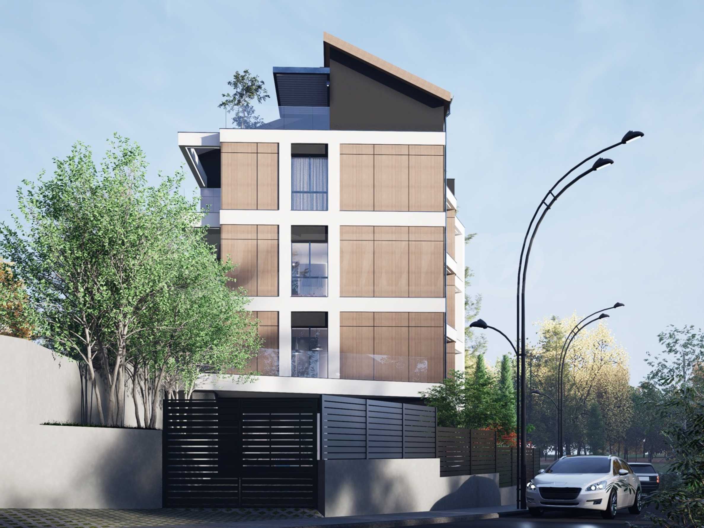 Сградата е малка и представителна, с едва 6 апартамента, разпределени на 4 етажа, което осигурява високо ниво на уединение, тишина и комфортна жилищна среда. Архитектурната визия е модерна и елегантна, а фасадата е изпълнена с естествен камък, който придава характер и устойчивост на проекта.