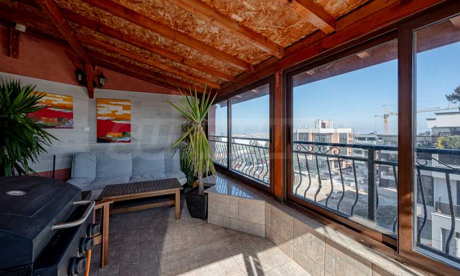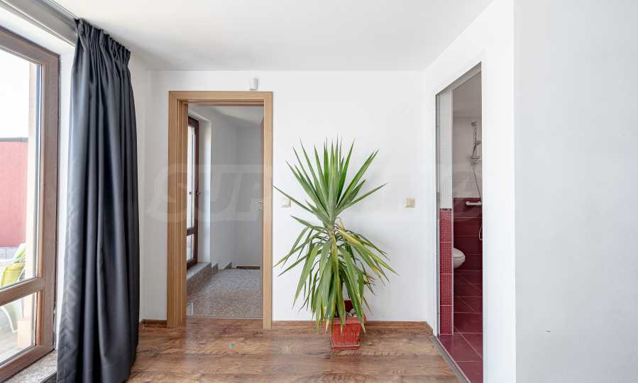 Представяме просторен пентхаус тип мезонет с допълнителна самостоятелна покривна тераса, предлагаща впечатляващи панорамни гледки към града. Имотът съчетава просторни вътрешни помещения с големи външни пространства, които създават усещане за светлина и простор.