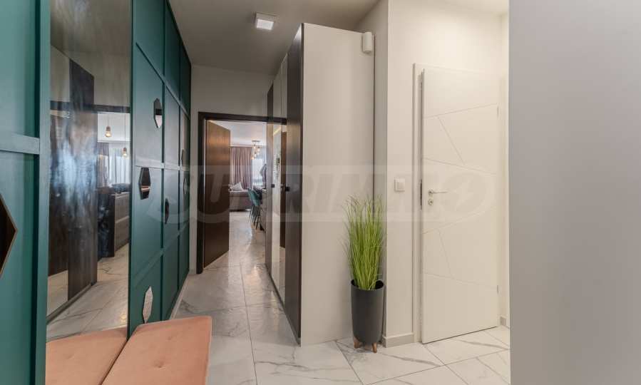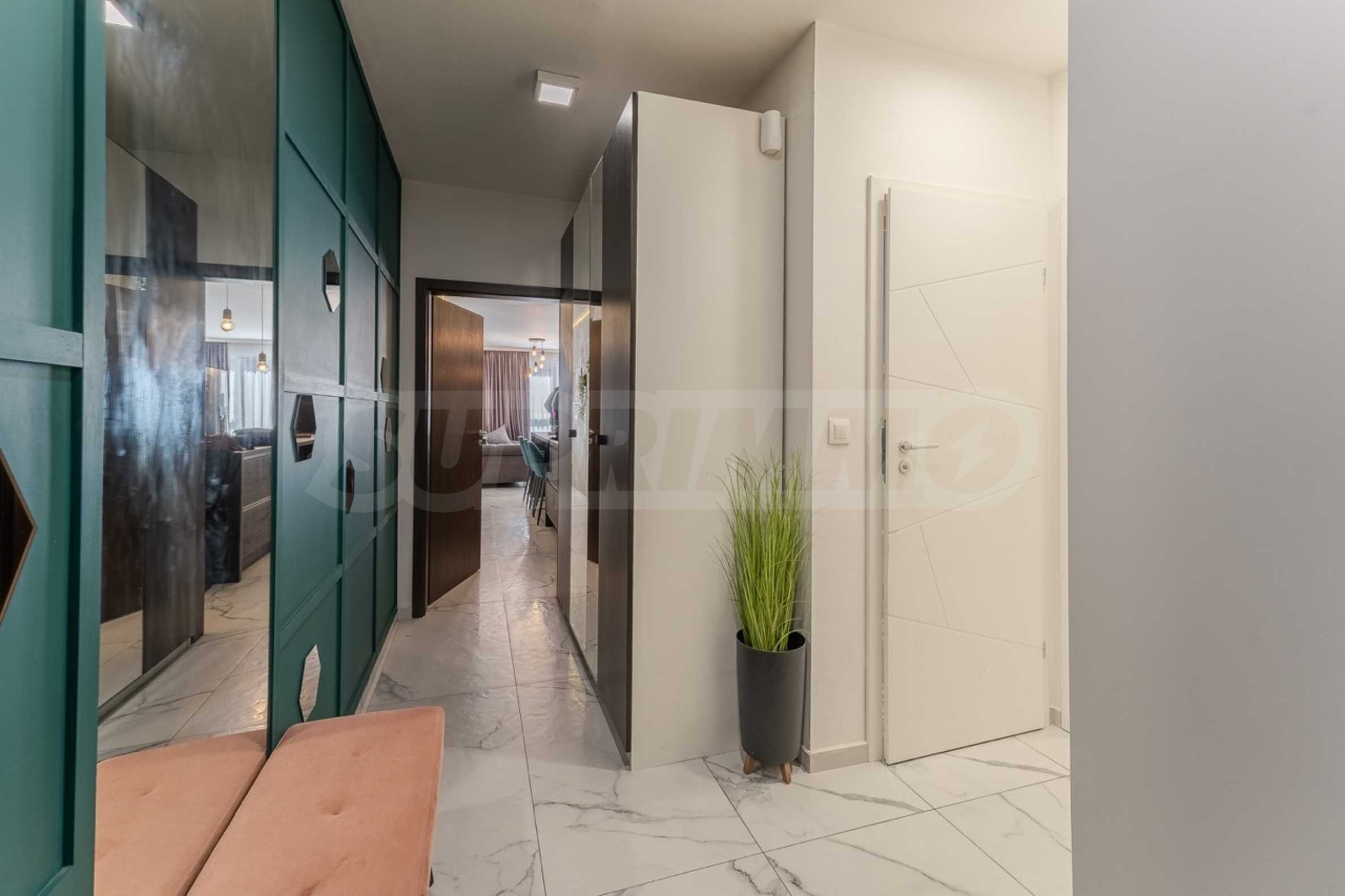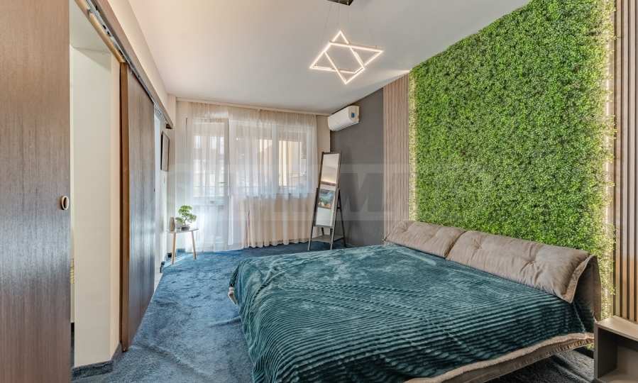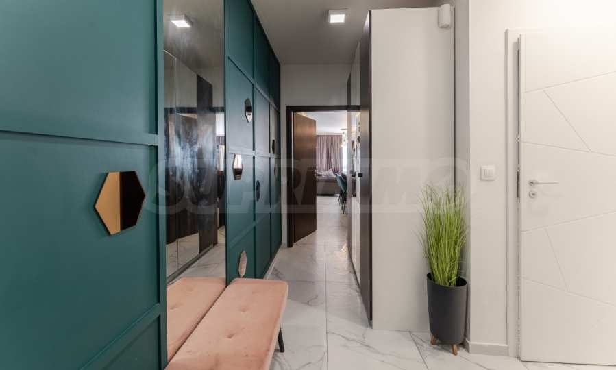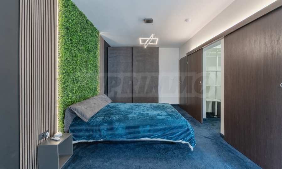 Жилището впечатлява с просторна площ от 130 кв.м, функционално разпределение и съвременна концепция за интелигентен дом. Апартаментът е оборудван със смарт система, която позволява лесно управление на осветлението, климатизацията и щорите, създавайки максимален комфорт и енергийна ефективност в ежедневието.