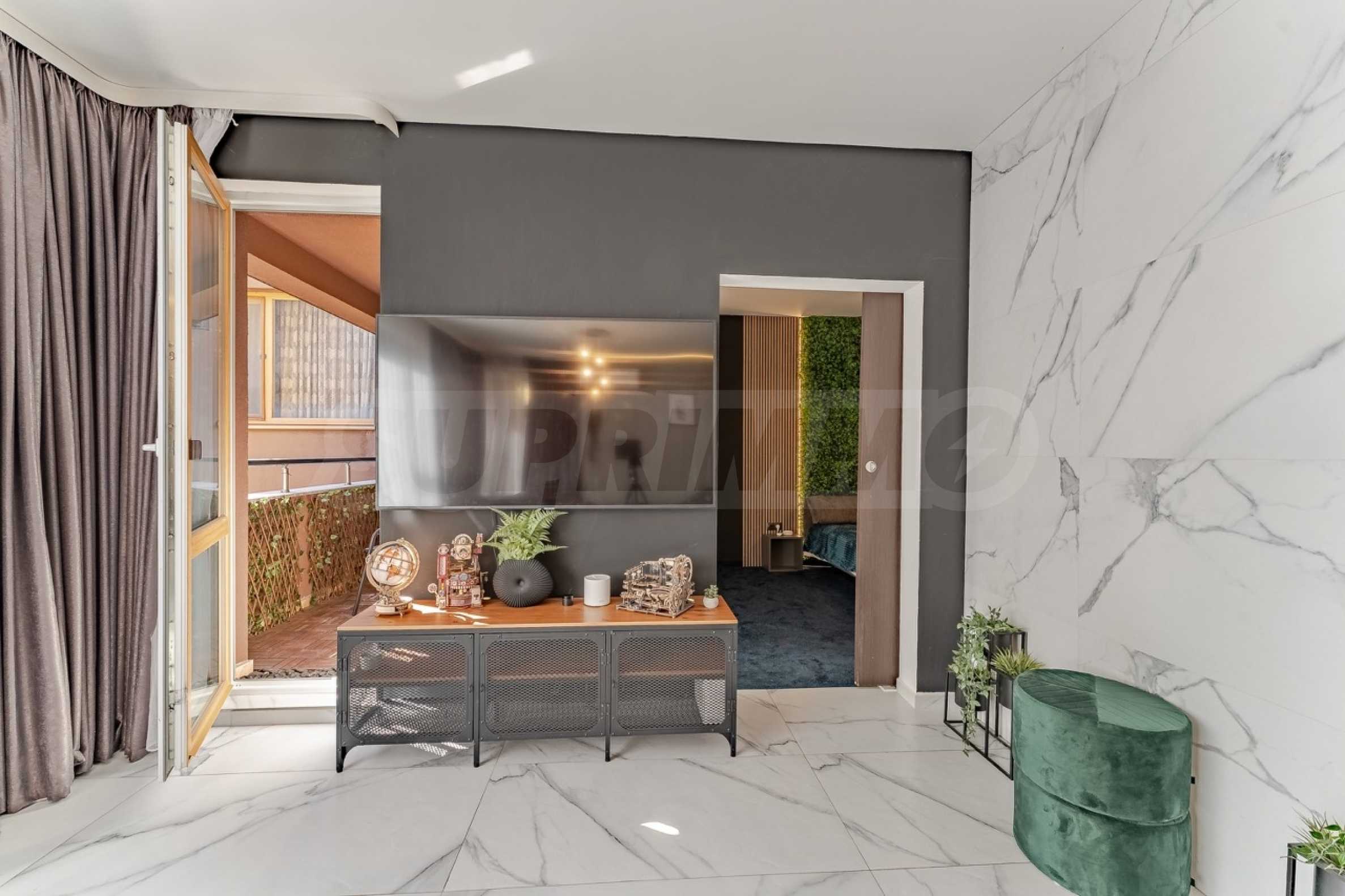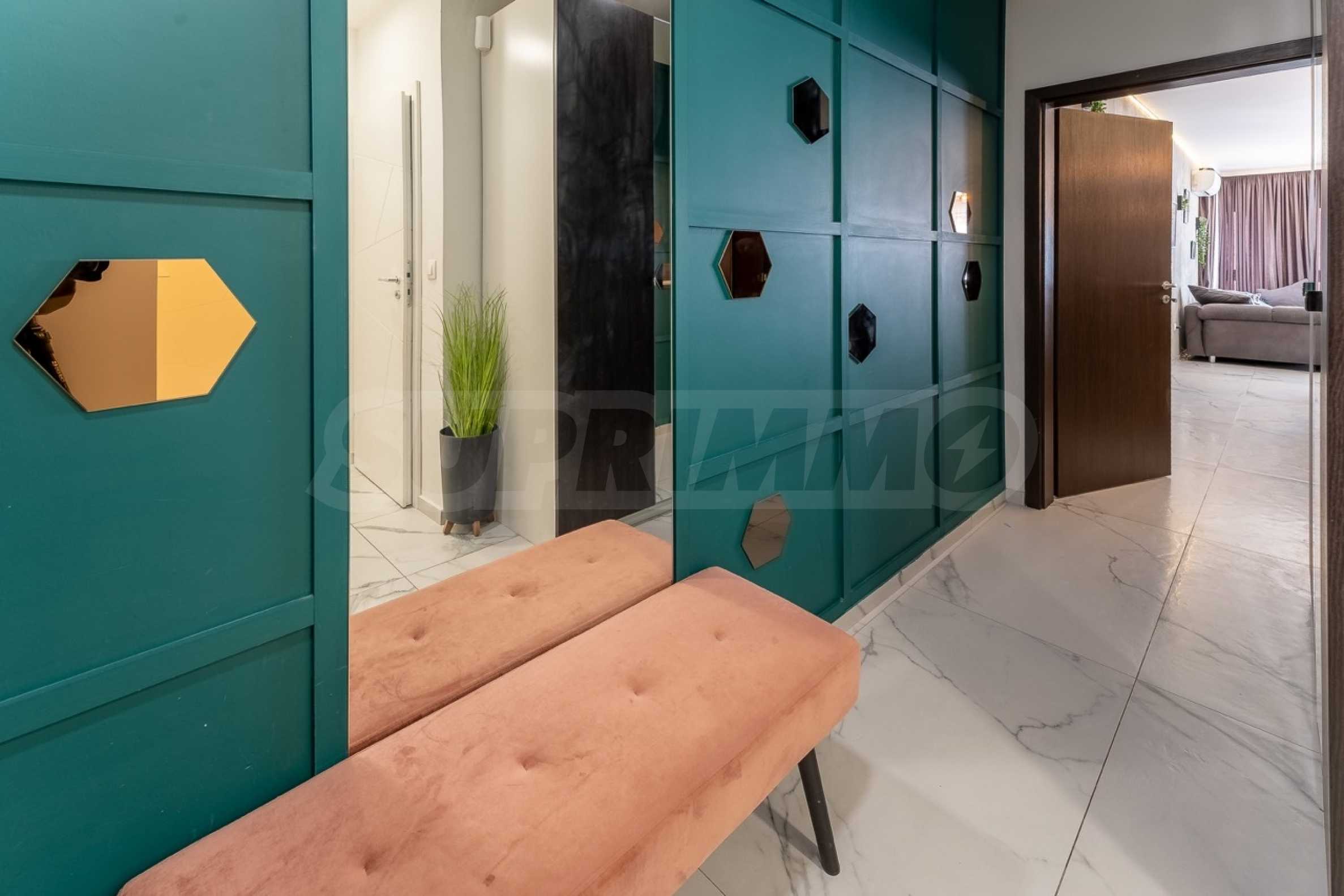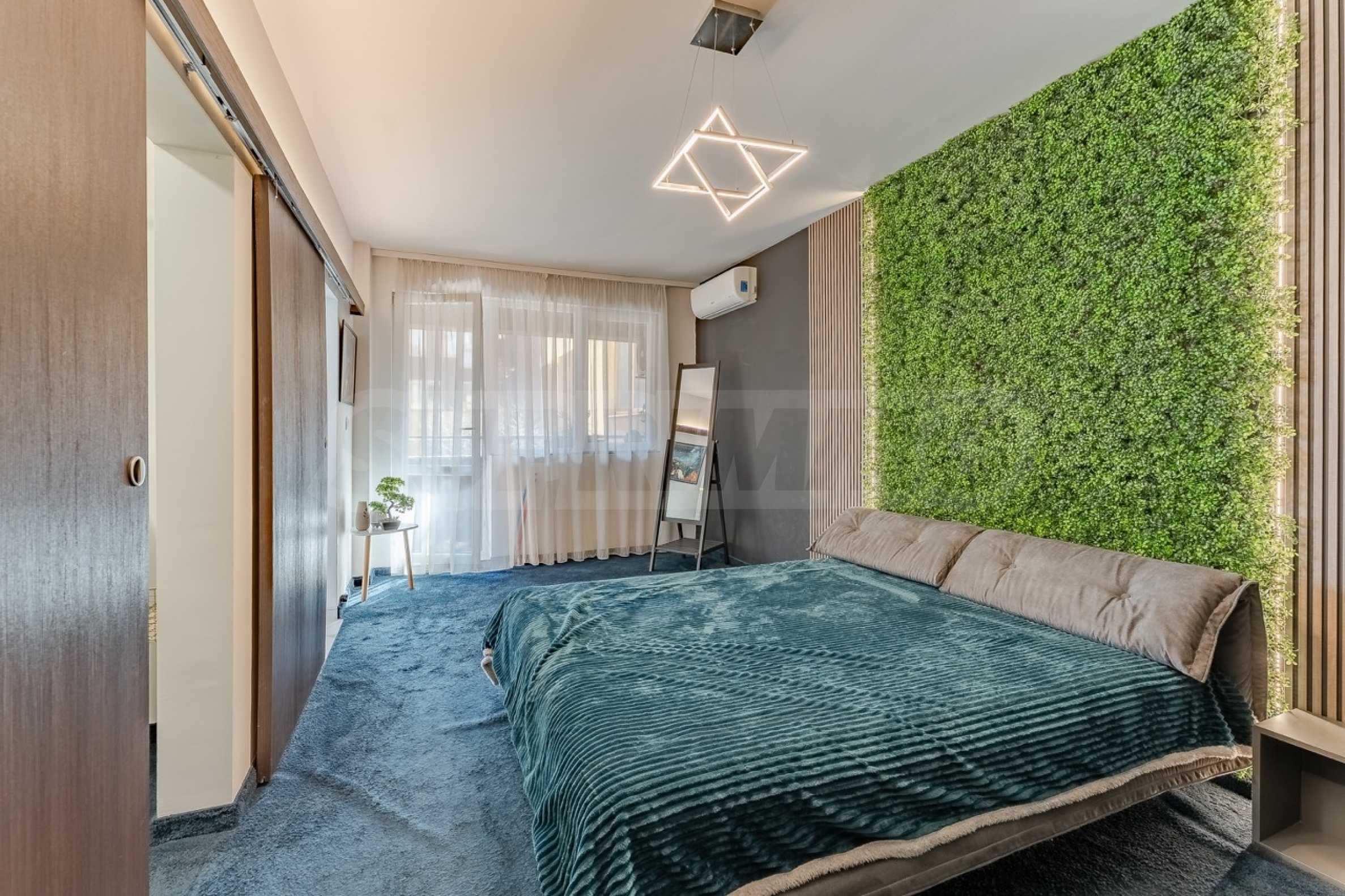 Жилището впечатлява с просторна площ от 130 кв.м, функционално разпределение и съвременна концепция за интелигентен дом. Апартаментът е оборудван със смарт система, която позволява лесно управление на осветлението, климатизацията и щорите, създавайки максимален комфорт и енергийна ефективност в ежедневието.