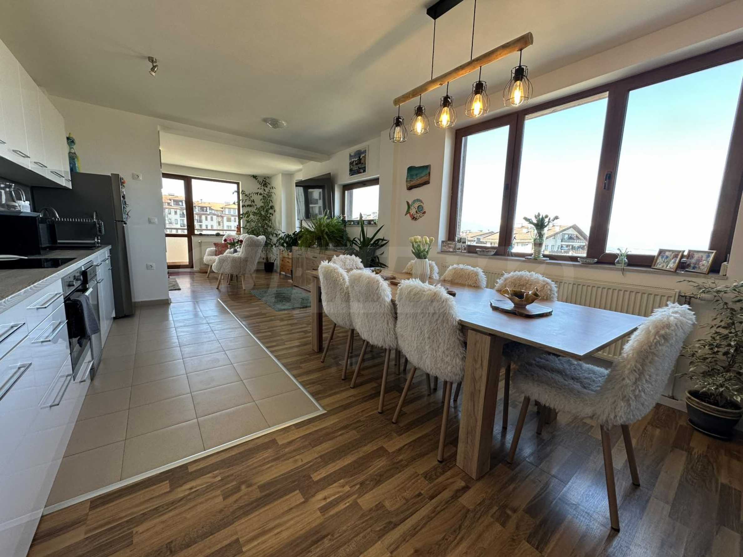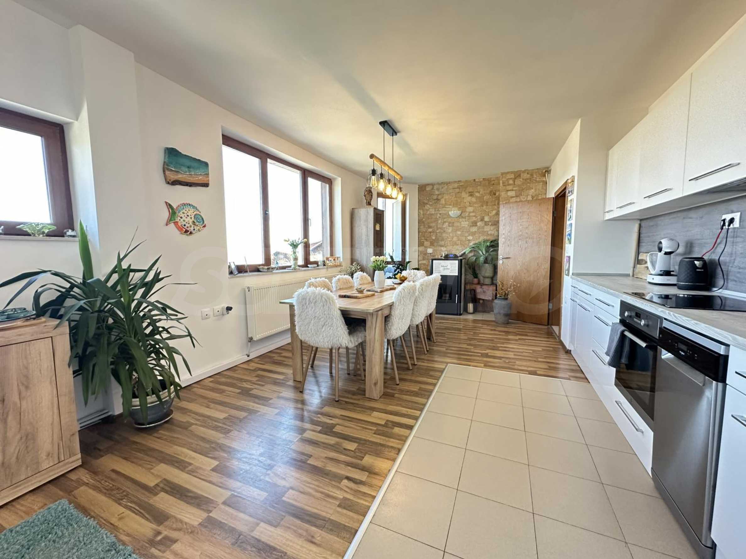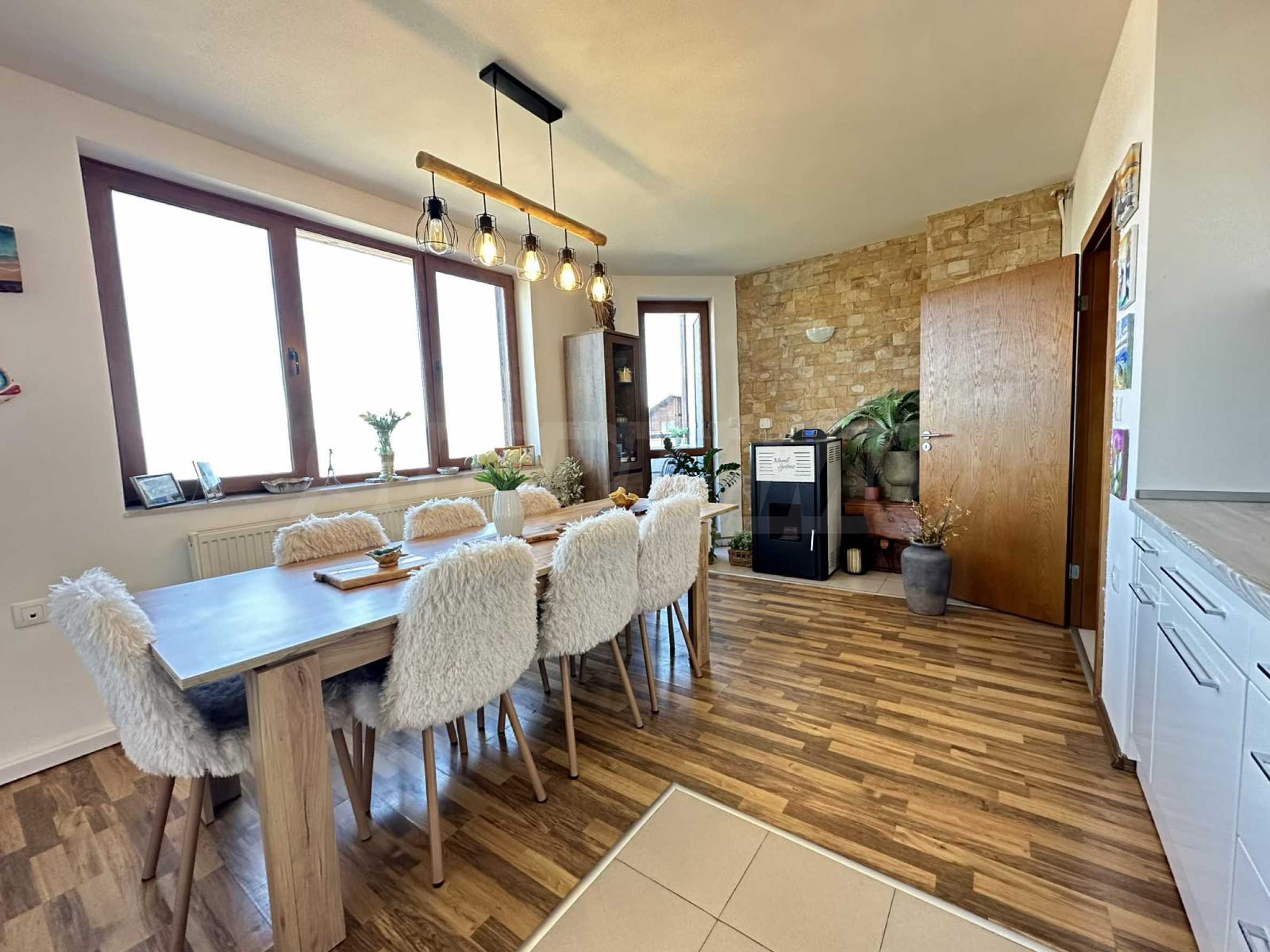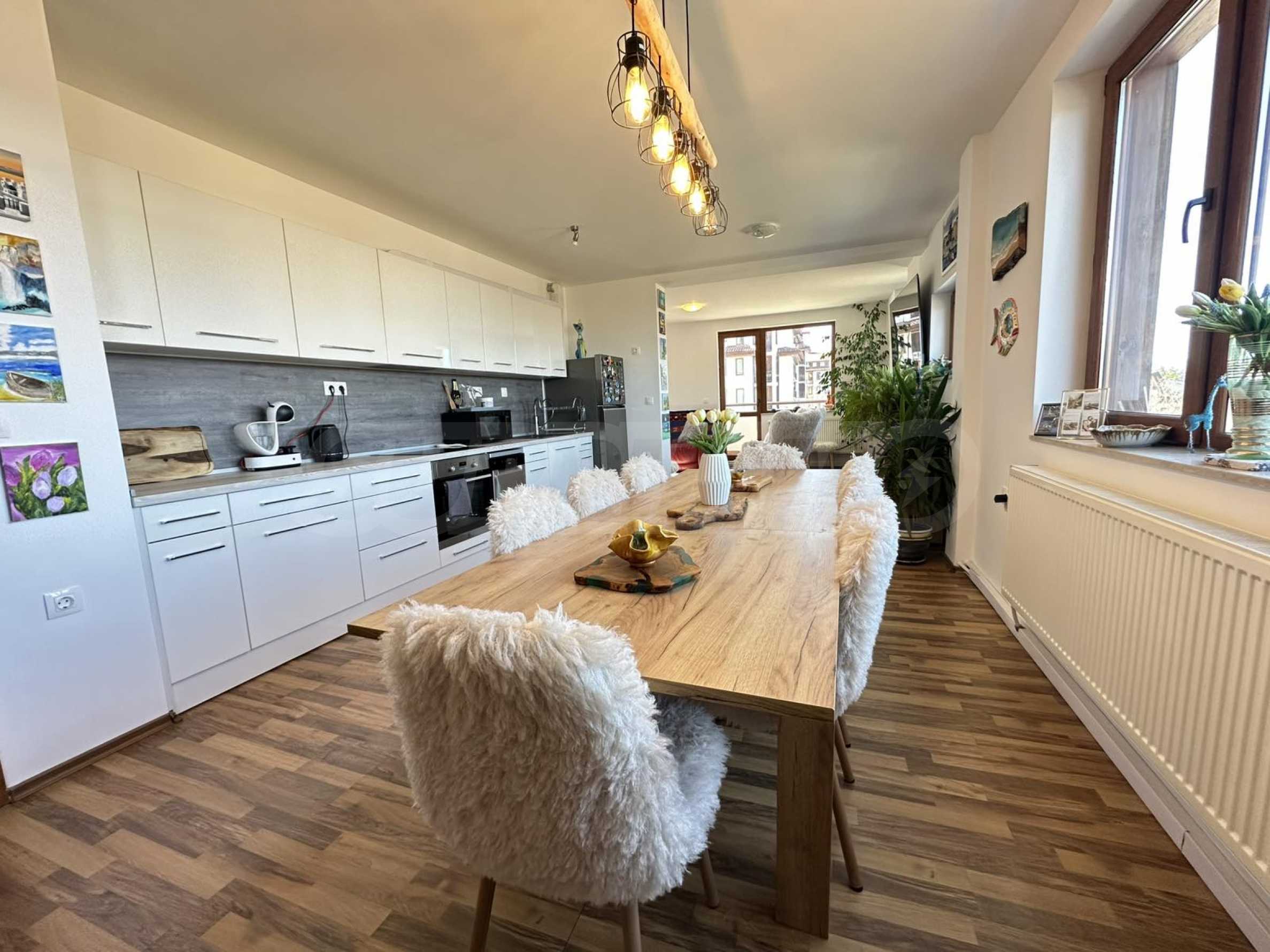 Имотът впечатлява с простор, функционално разпределение и елегантен интериор, съчетаващ алпийски стил със съвременен комфорт.