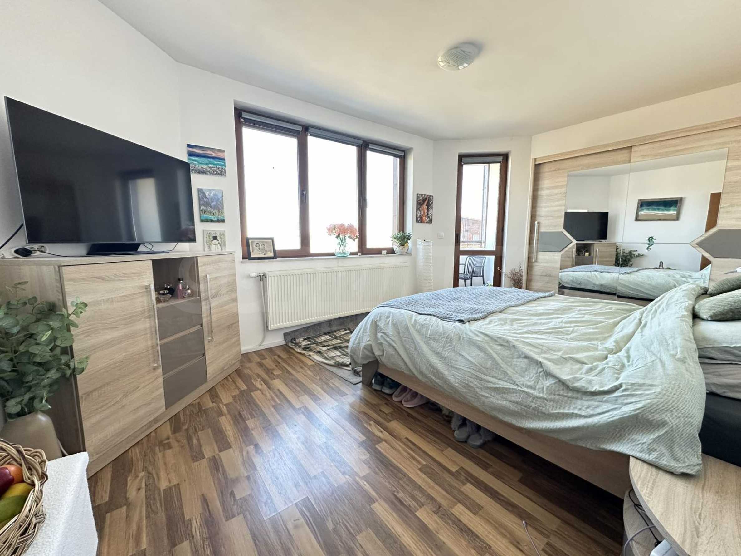 • Втора спалня е с двойно легло, гардероб и излаз към балкон.
