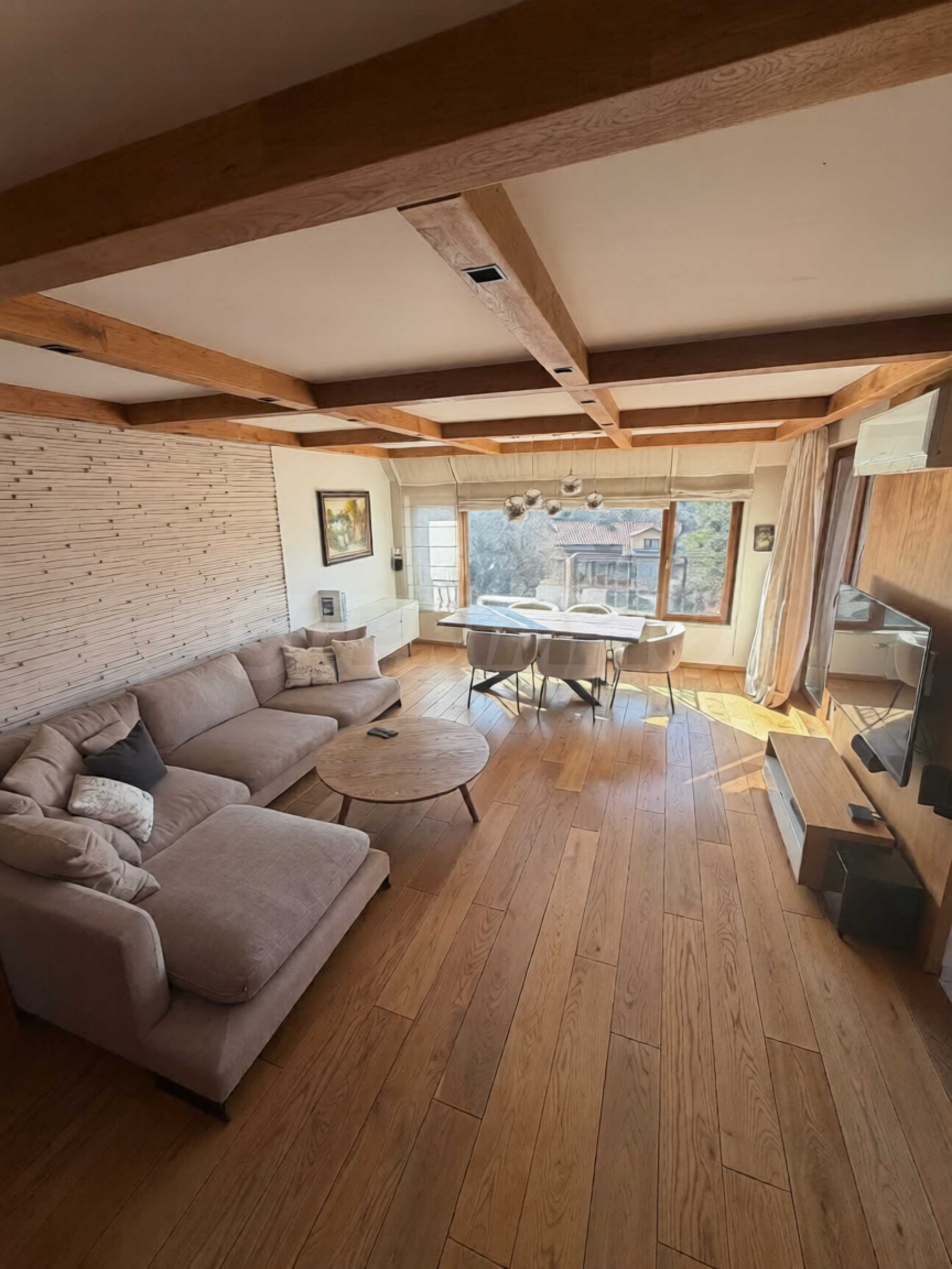 - Просторна всекидневна с кухня, отделена с масивна плъзгаща врата;