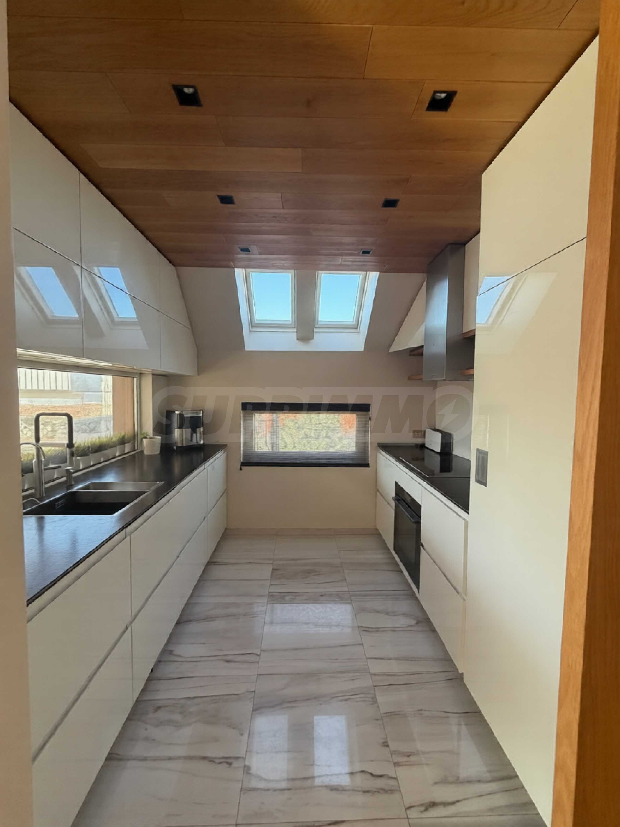 Соларната система на покрива с батерия напълно покрива нуждите от електричество, а премиум система за пречистване на вода и машина за алкална вода Kangen гарантират здравословен и комфортен начин на живот. Мезонетът е оборудван с премиум електроуреди: пералня и сушилня Miele, фурна и котлон Neff от най-висок клас, хладилник и фризер Liebherr, както и смарт телевизори Sony във всяка стая.