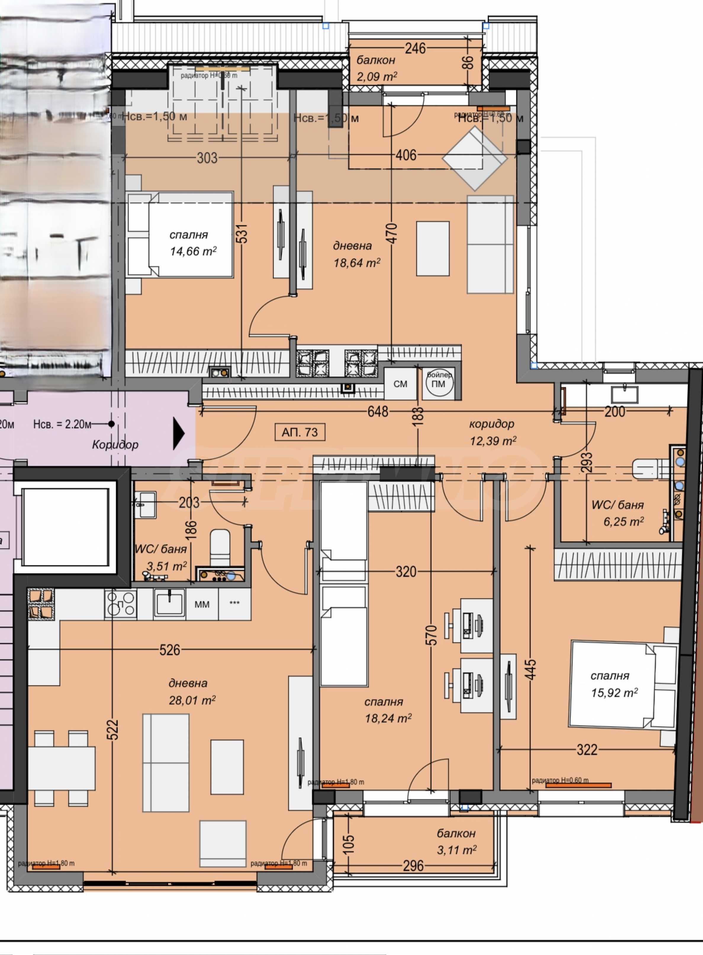 • Отопление – ТЕЦ, както и предвидено място за бойлер;