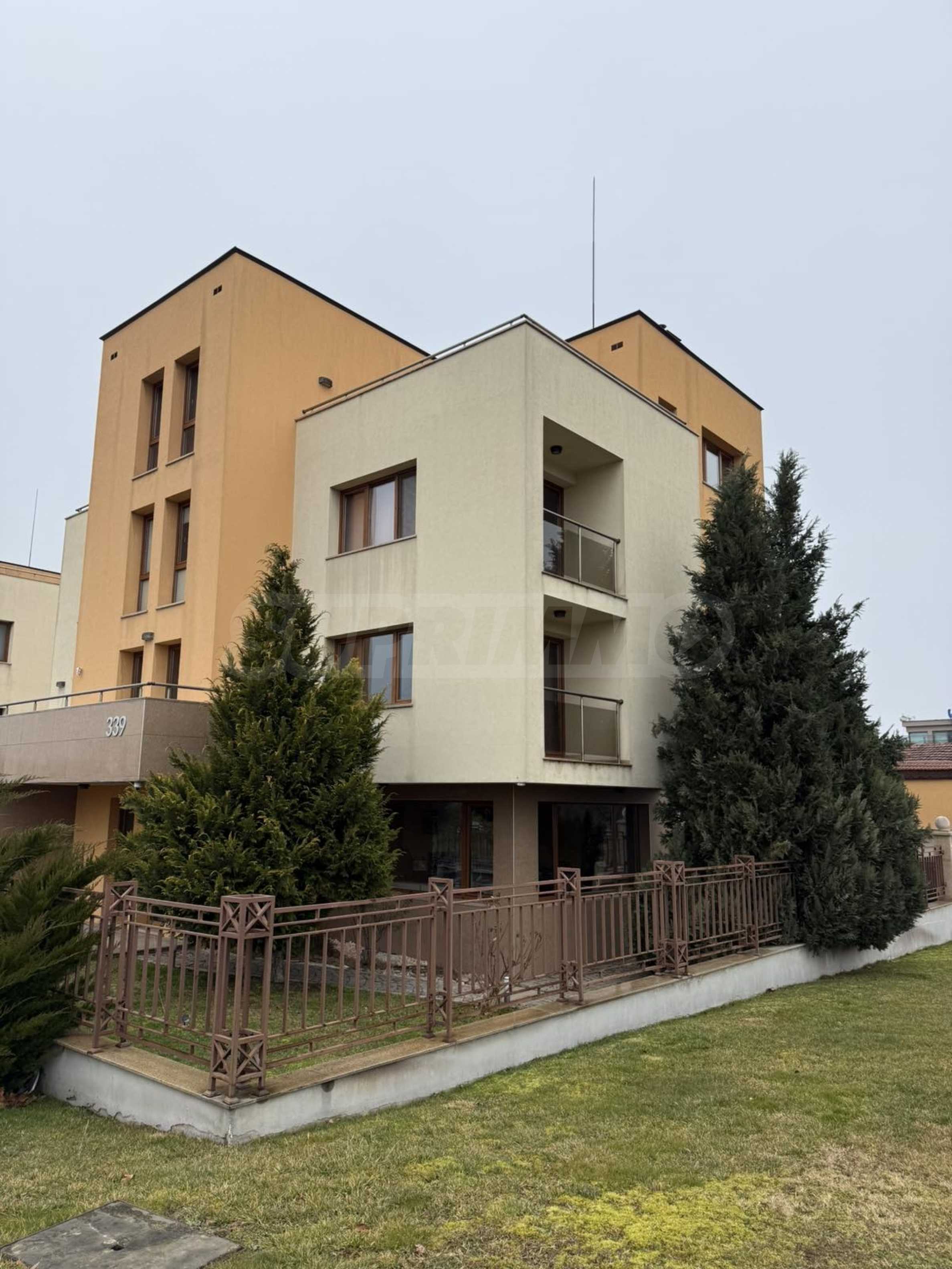 Имотът е със застроена площ от 95 кв.м и се намира във фамилна жилищна сграда с контрол на достъпа, озеленен и ограден двор.