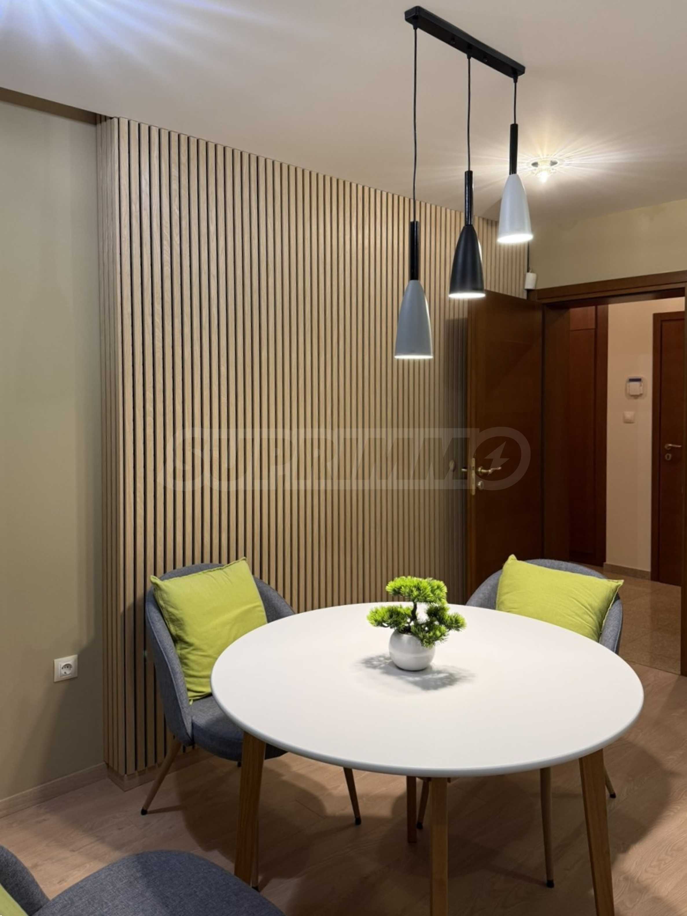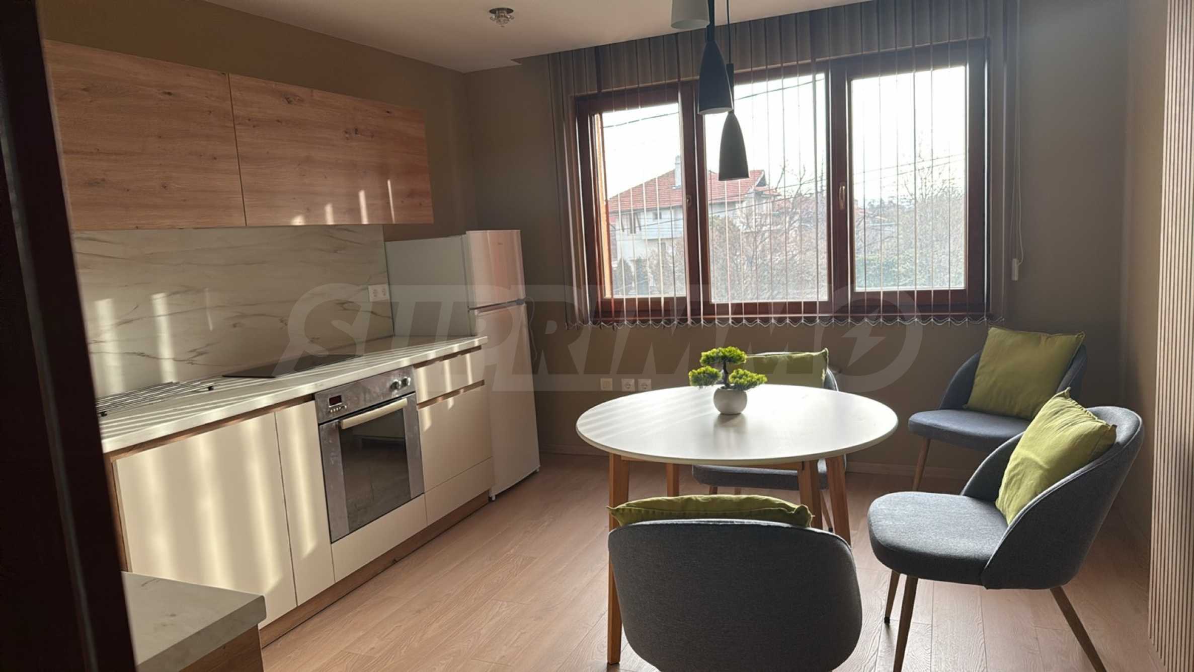 Апартаментът е основно ремонтиран и напълно обзаведен с чисто нови мебели и е готов за нанасяне.