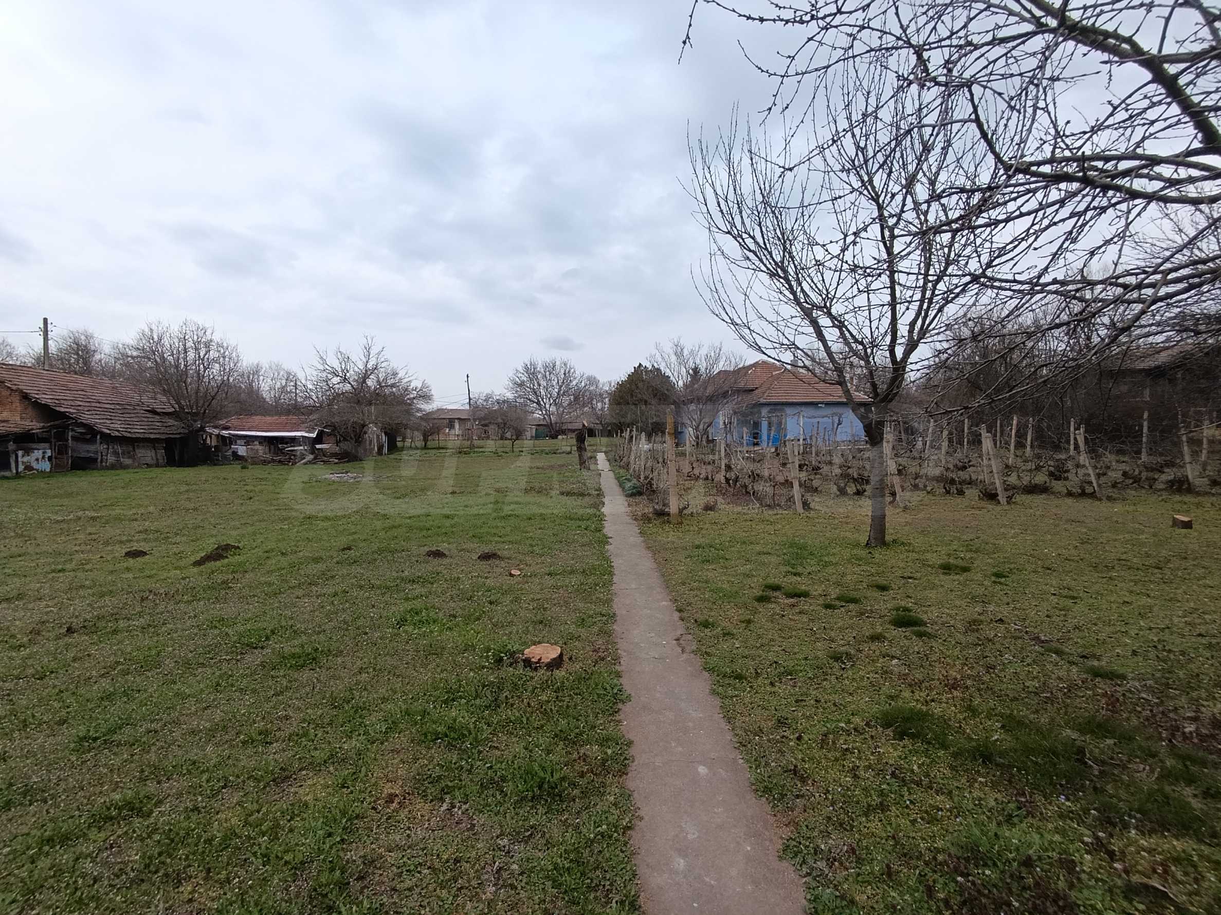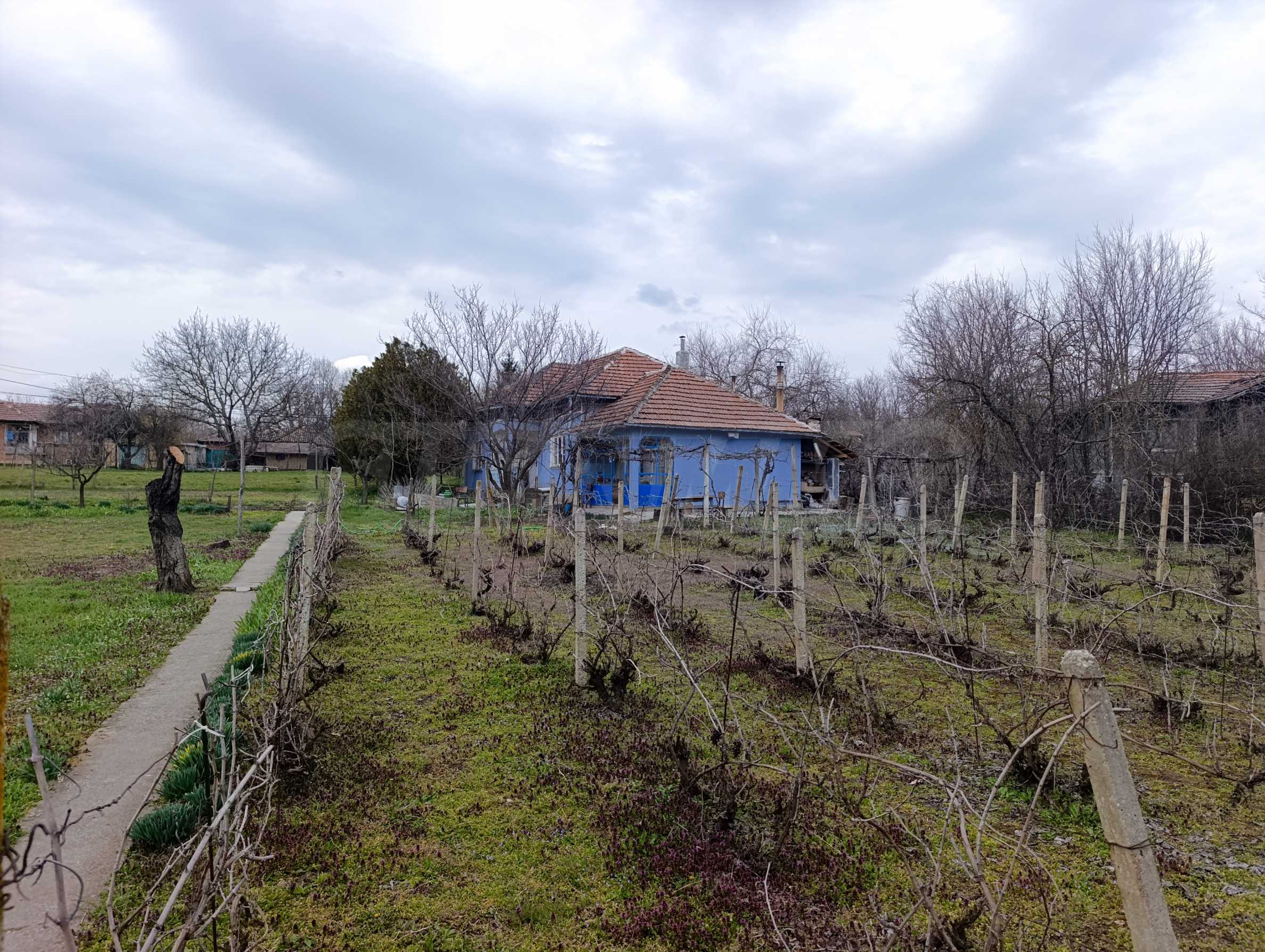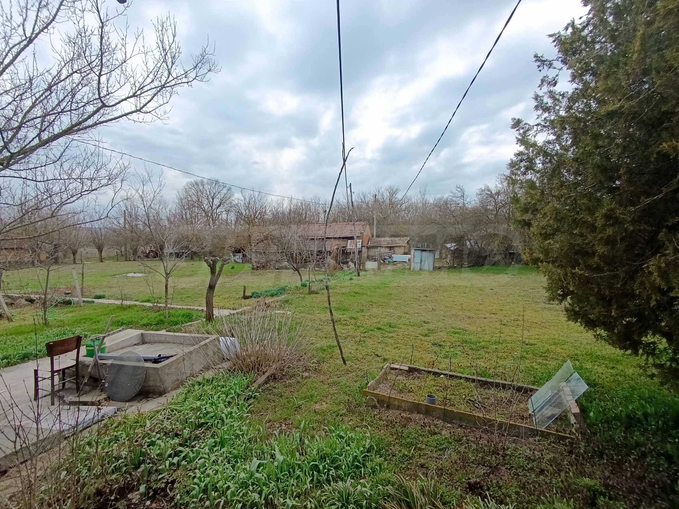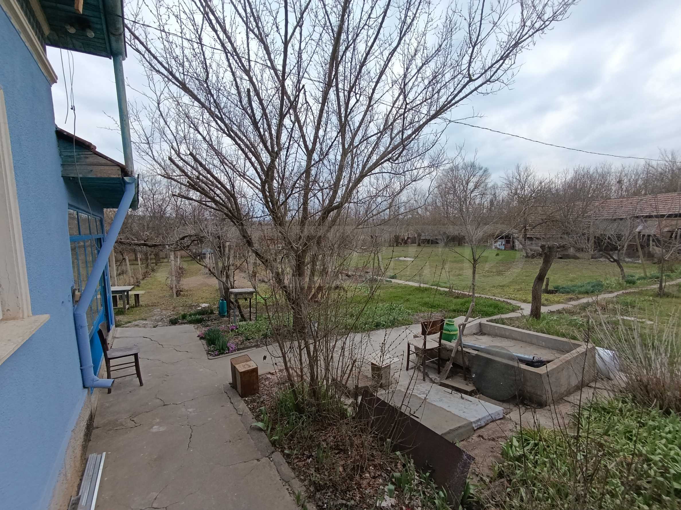 Дворът е просторен – 2300 кв.м, с овощни дървета, лозе, стопански постройки и плевня, предоставящ отлични възможности за градина, отдих или малко стопанство.
