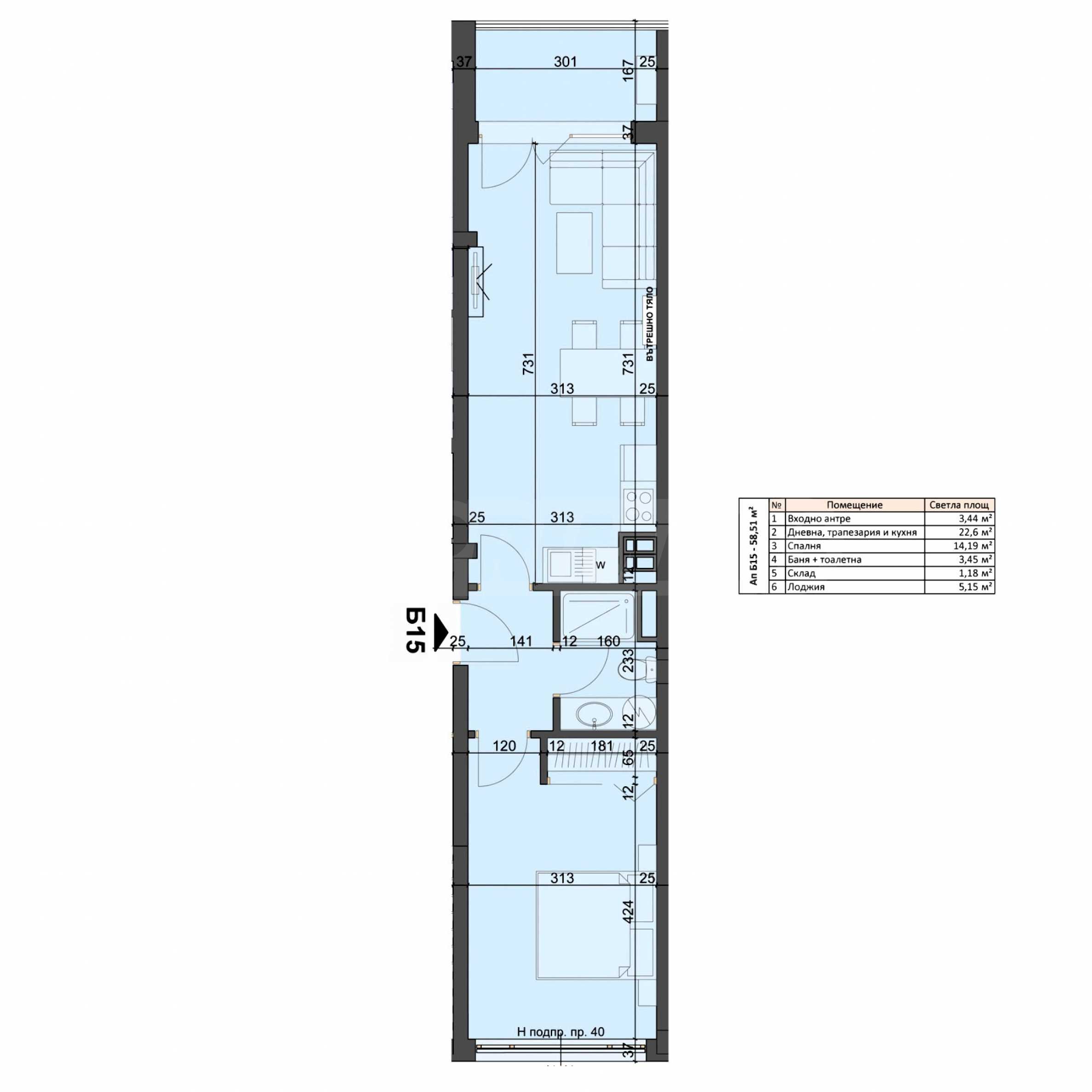 Общата площ е 68.72 кв.м,от които 58.51 кв.м са чиста жилищна площ.
