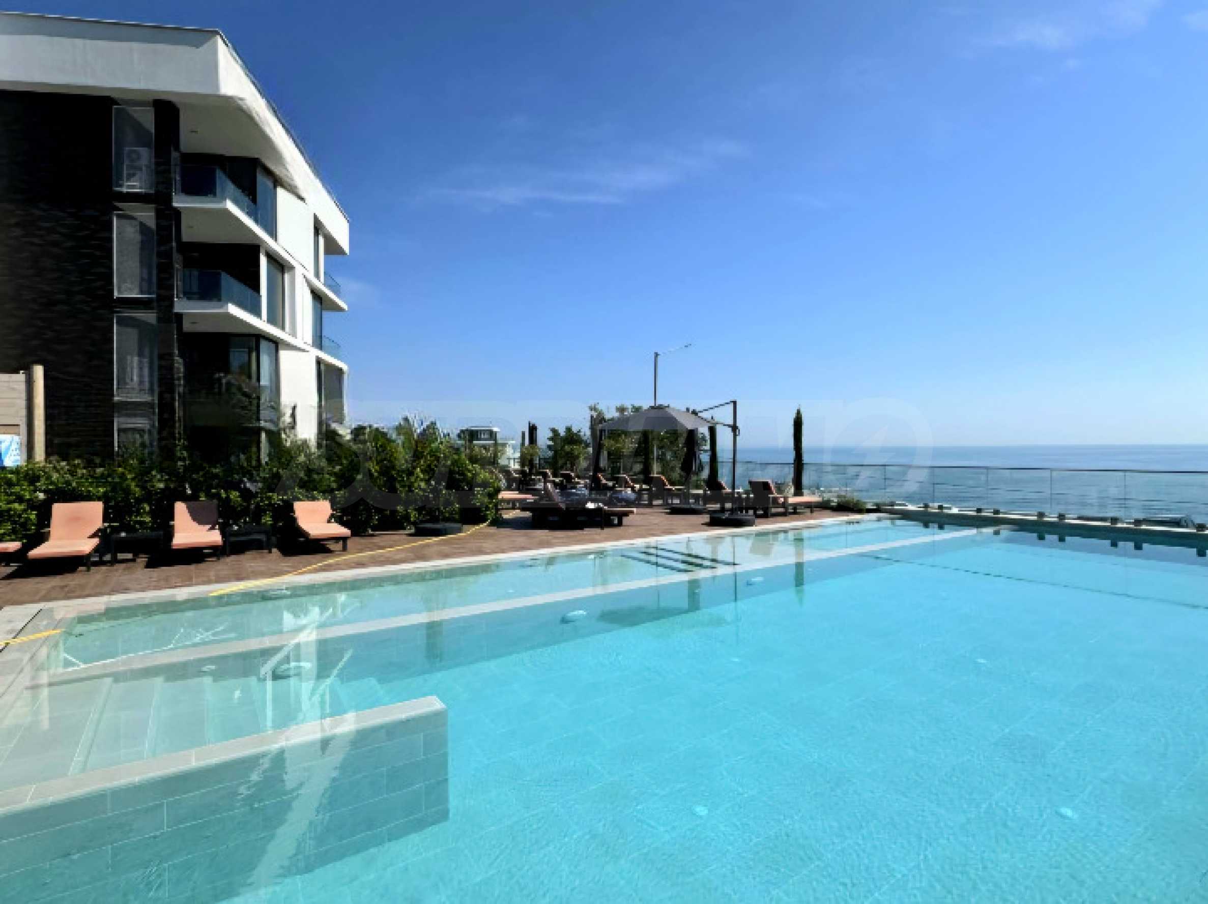 Сградата предлага денонощно видеонаблюдение и охрана, като в наемната цена е включена такса поддръжка. На разположение на наемателите са още модерен СПА център, фитнес, както и неограничено ползване на отопляем външен басейн и електрически велосипед. На партерния етаж ще откриете магазини и ресторант, а плажът е само на 100 метра разстояние.