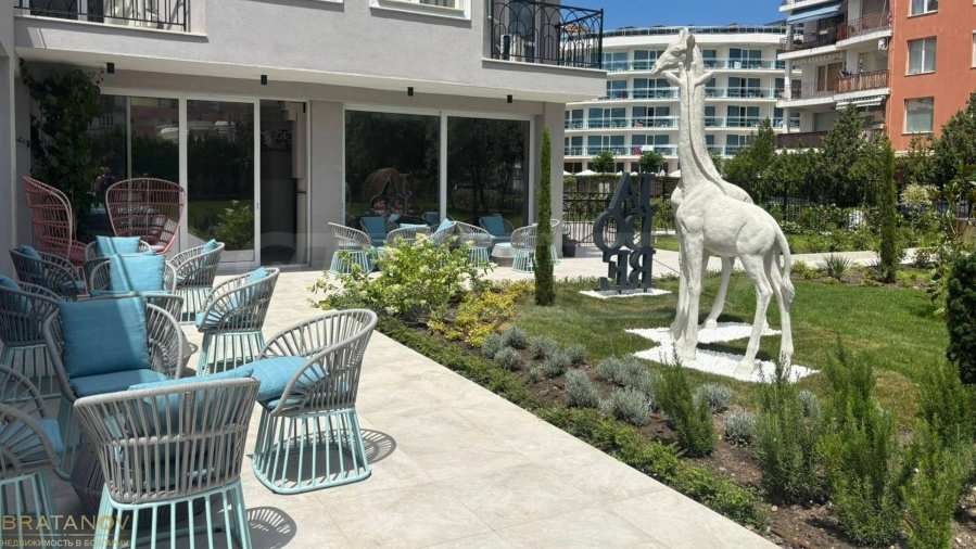 Разположен само на 250 метра от плажната ивица на Слънчев бряг, в непосредствена близост до най–атрактивните заведения за развлечение Zazu и Bedroom Beach, комплексът e вдъхновен от Френската ривиера, в меки пастелни цветове, с дизайнерски басейни, богато озеленяване, красиви градини и зони за отдих. В близост е до спирка на градския транспорт, магазини, ресторанти, и същевременно в тих и спокоен район.