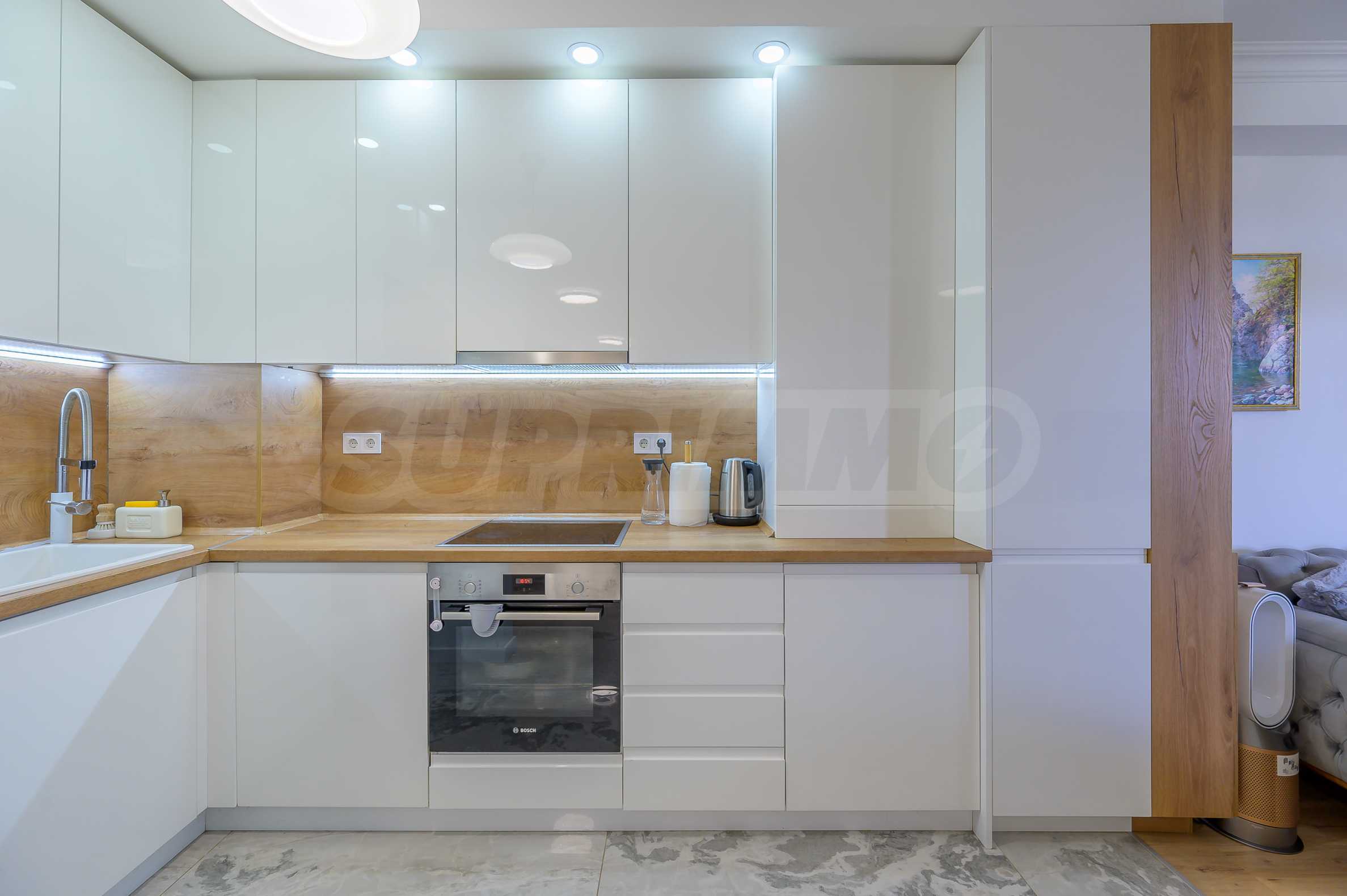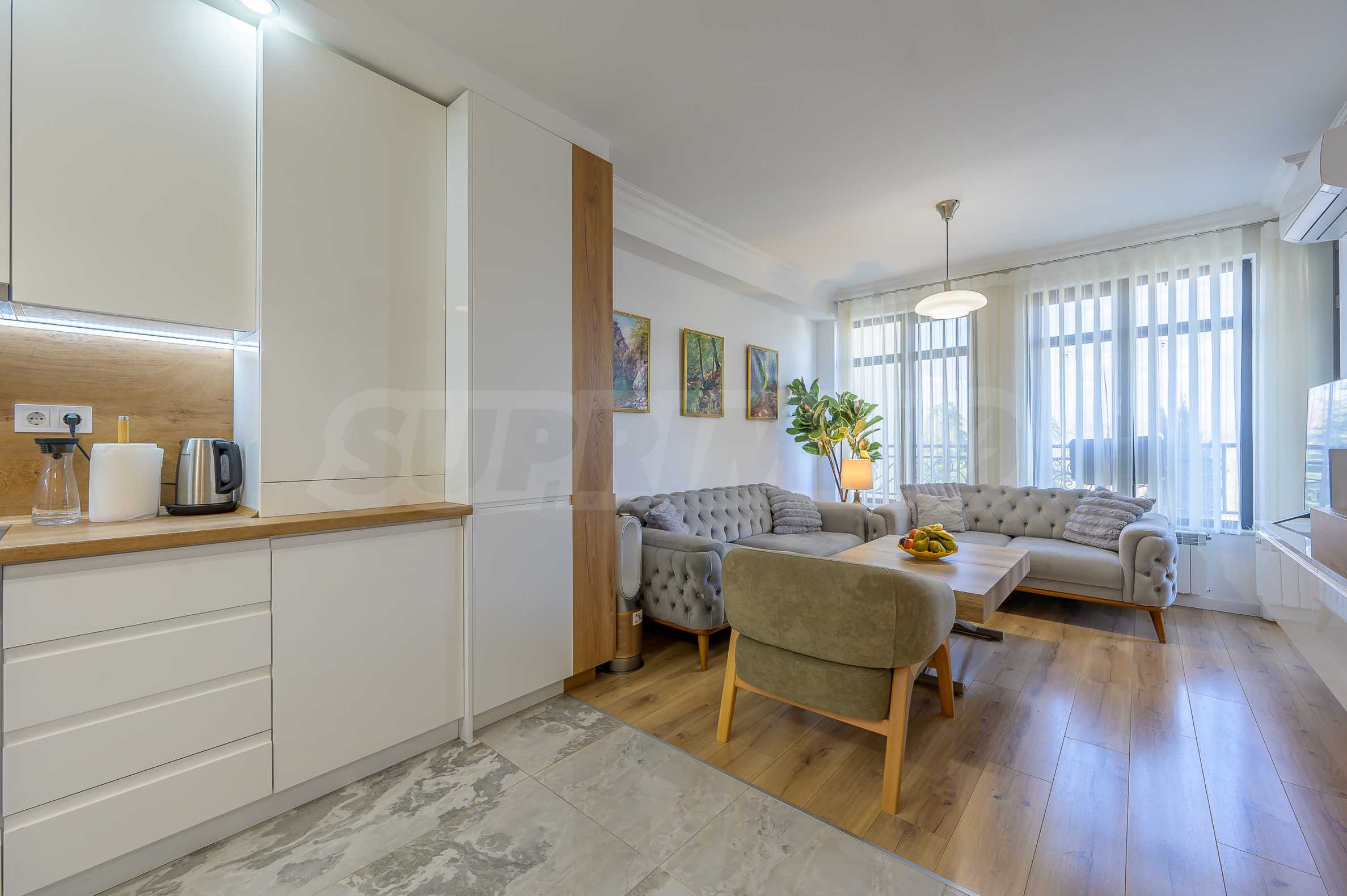 - Просторна всекидневна с кухненска част и трапезарна зона;