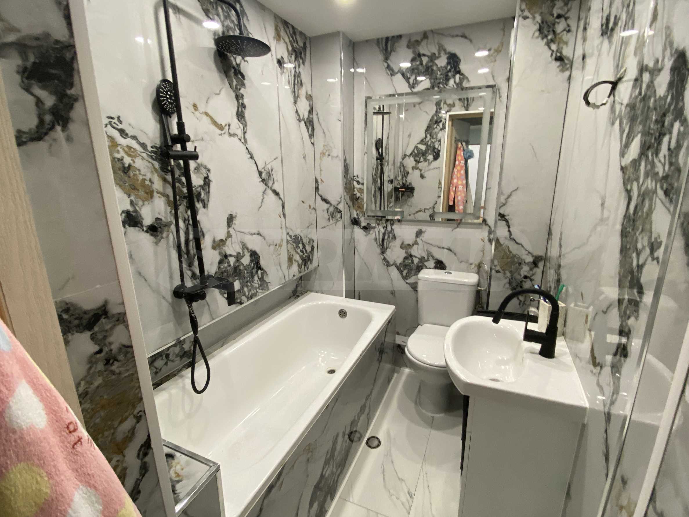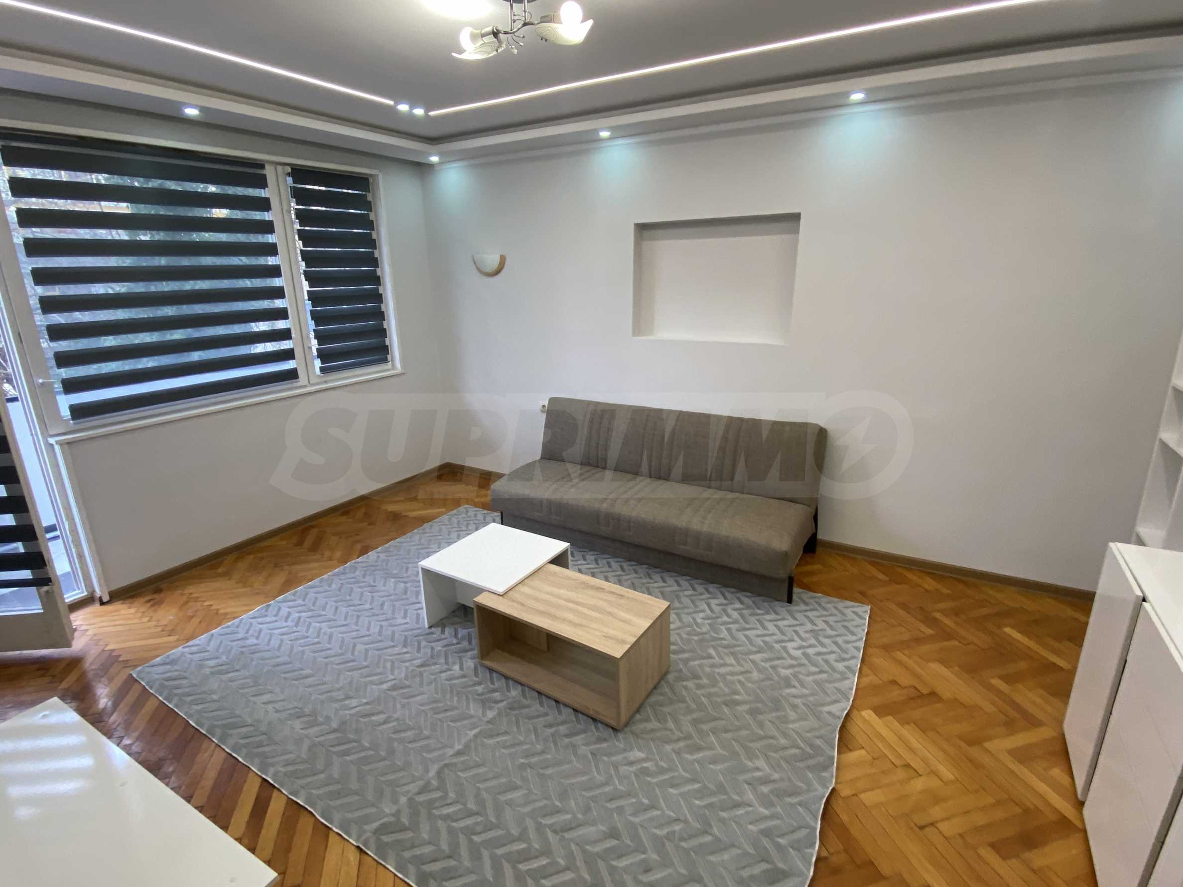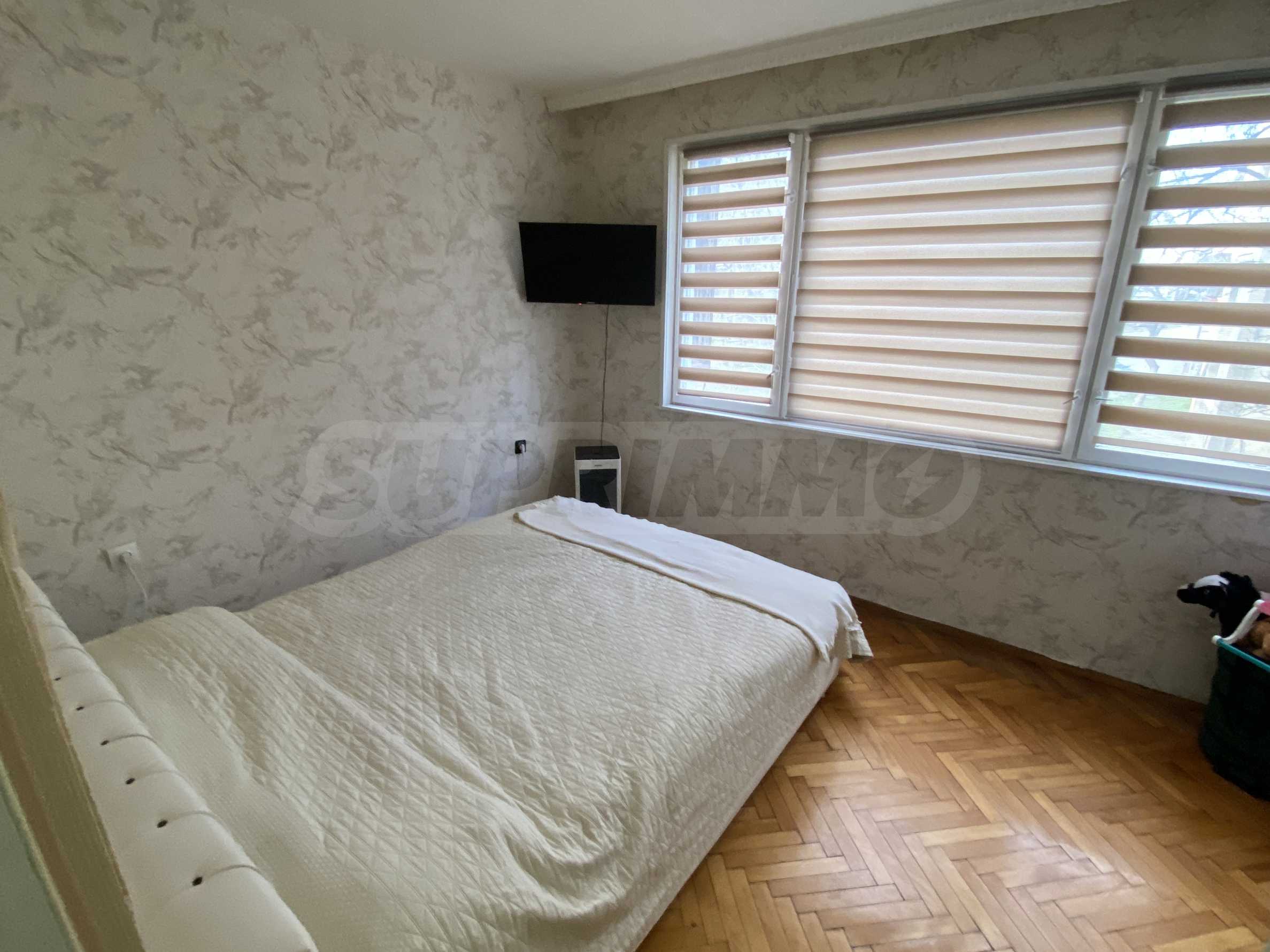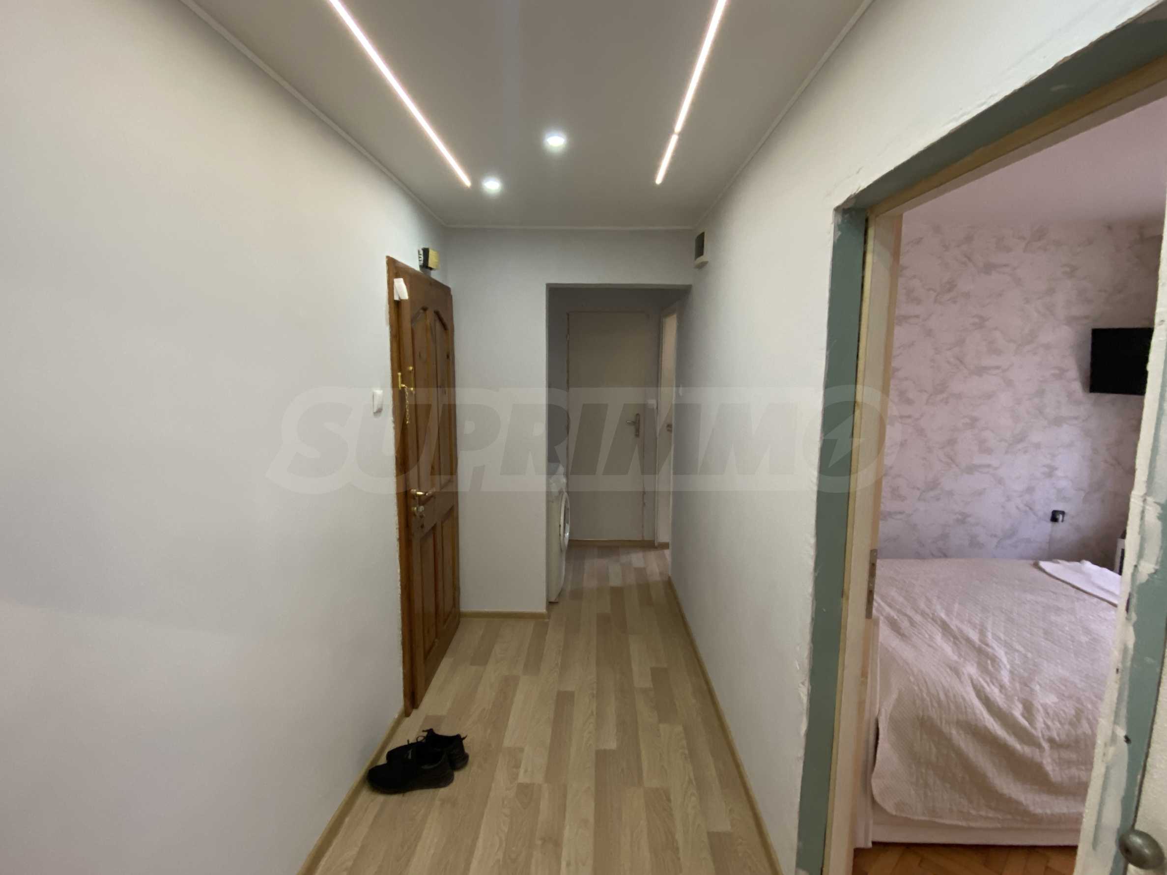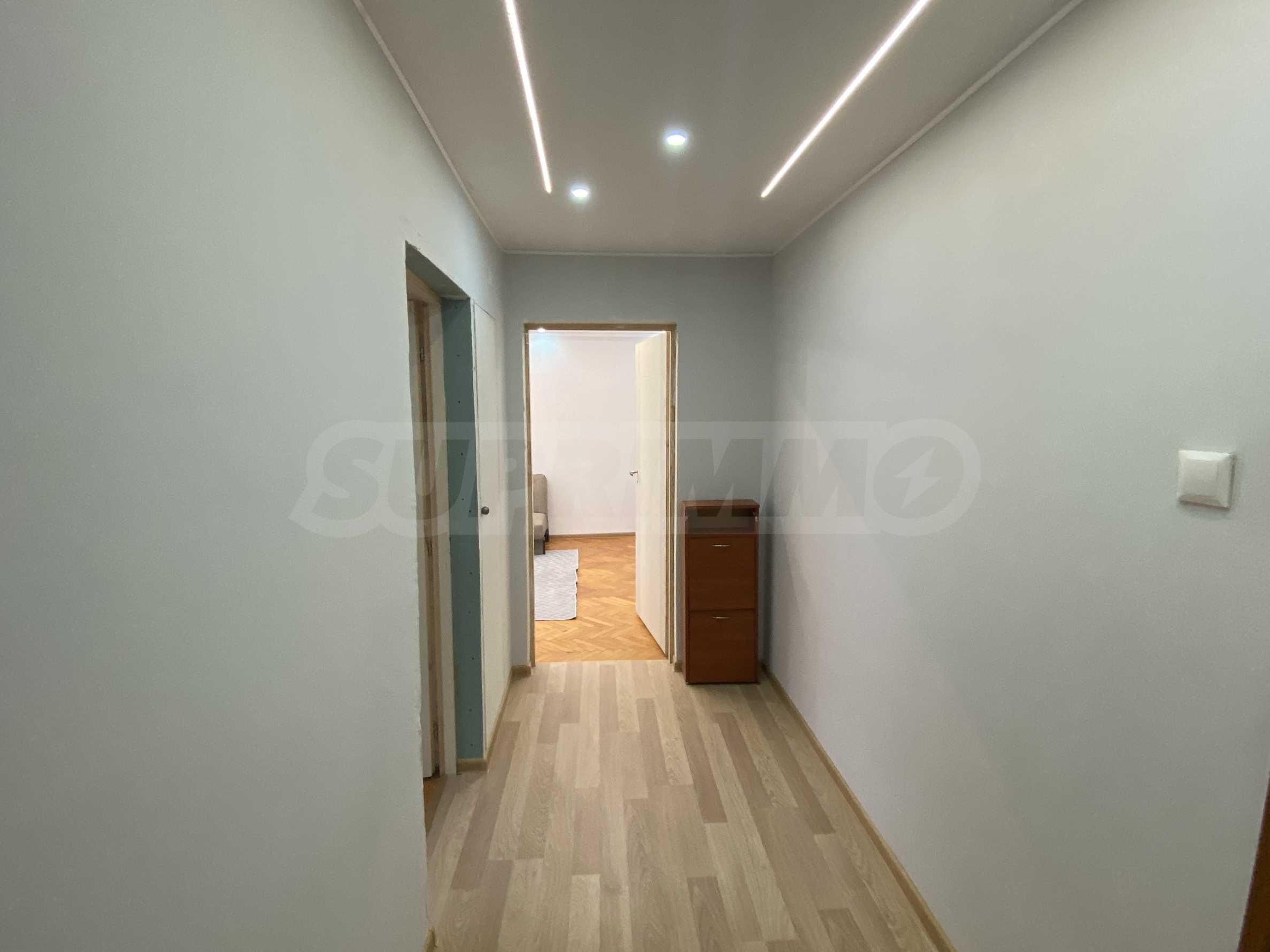 Жилището е в много добро състояние след извършен ремонт. Подменени са дограмата, електрическата и ВиК инсталациите, което гарантира надеждност и намалява необходимостта от допълнителни вложения. Стените са боядисани с латекс, а подовите настилки са от естествен паркет — материали, които осигуряват естетичен вид и дълготрайност.