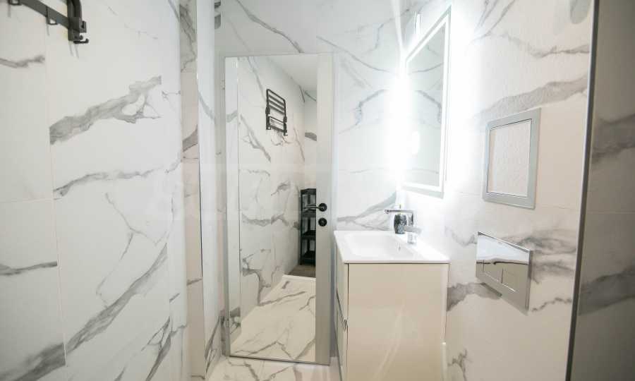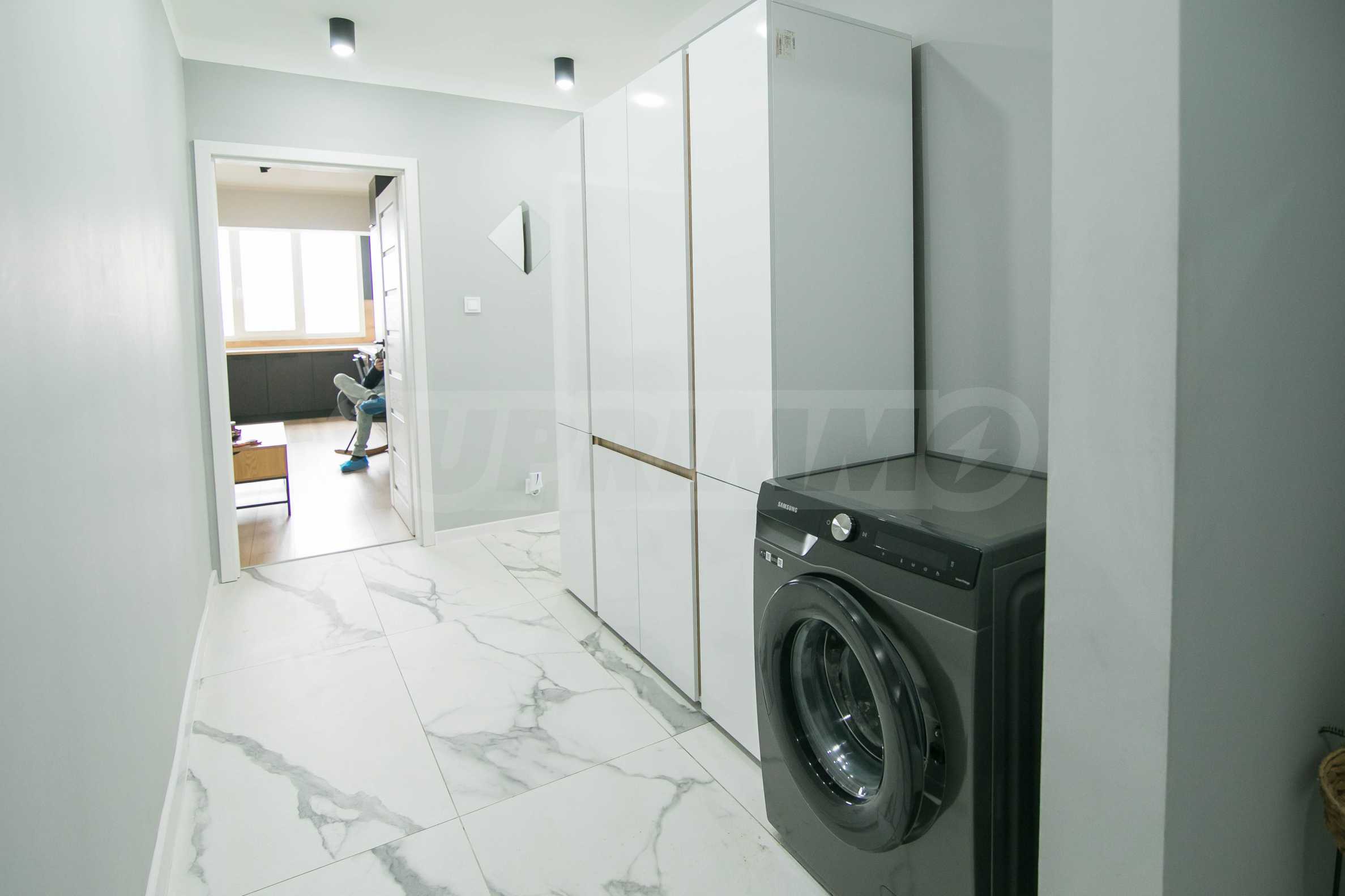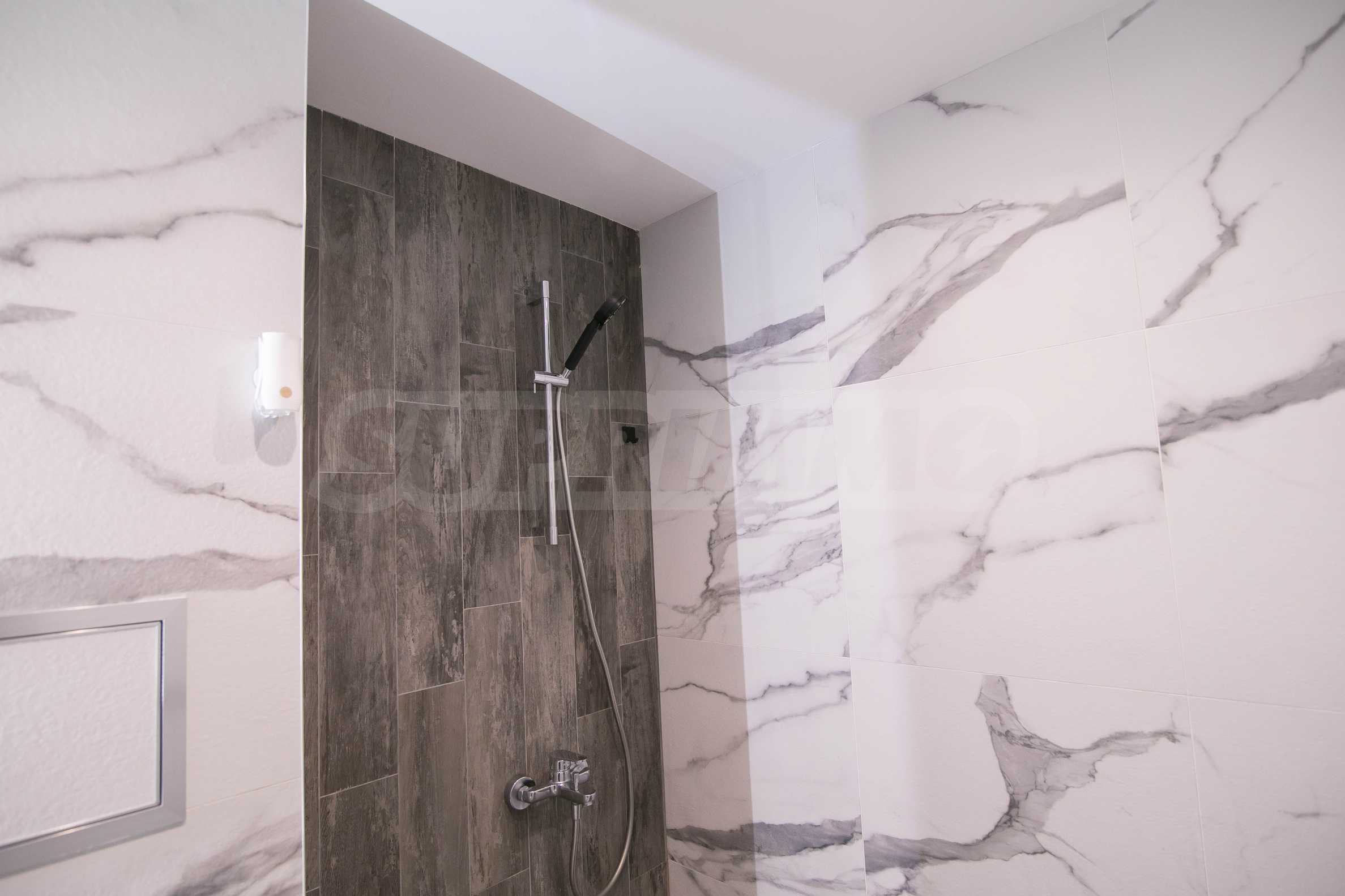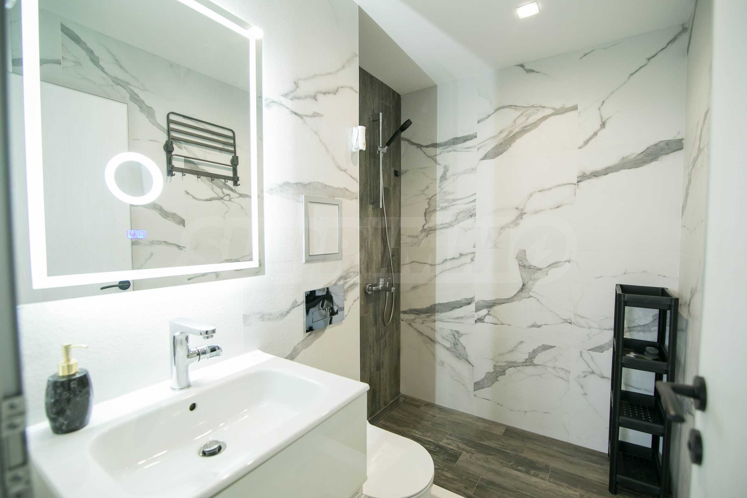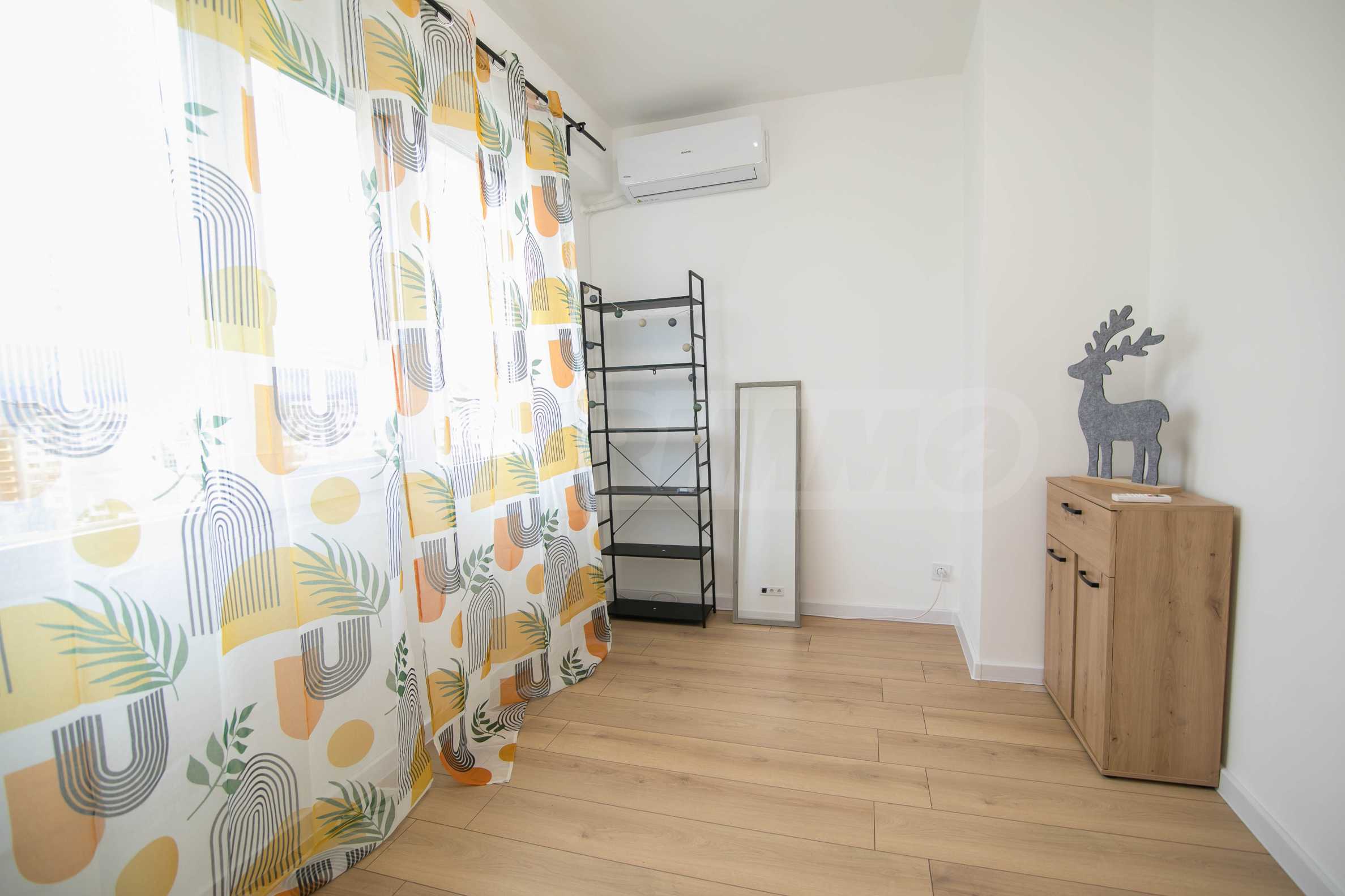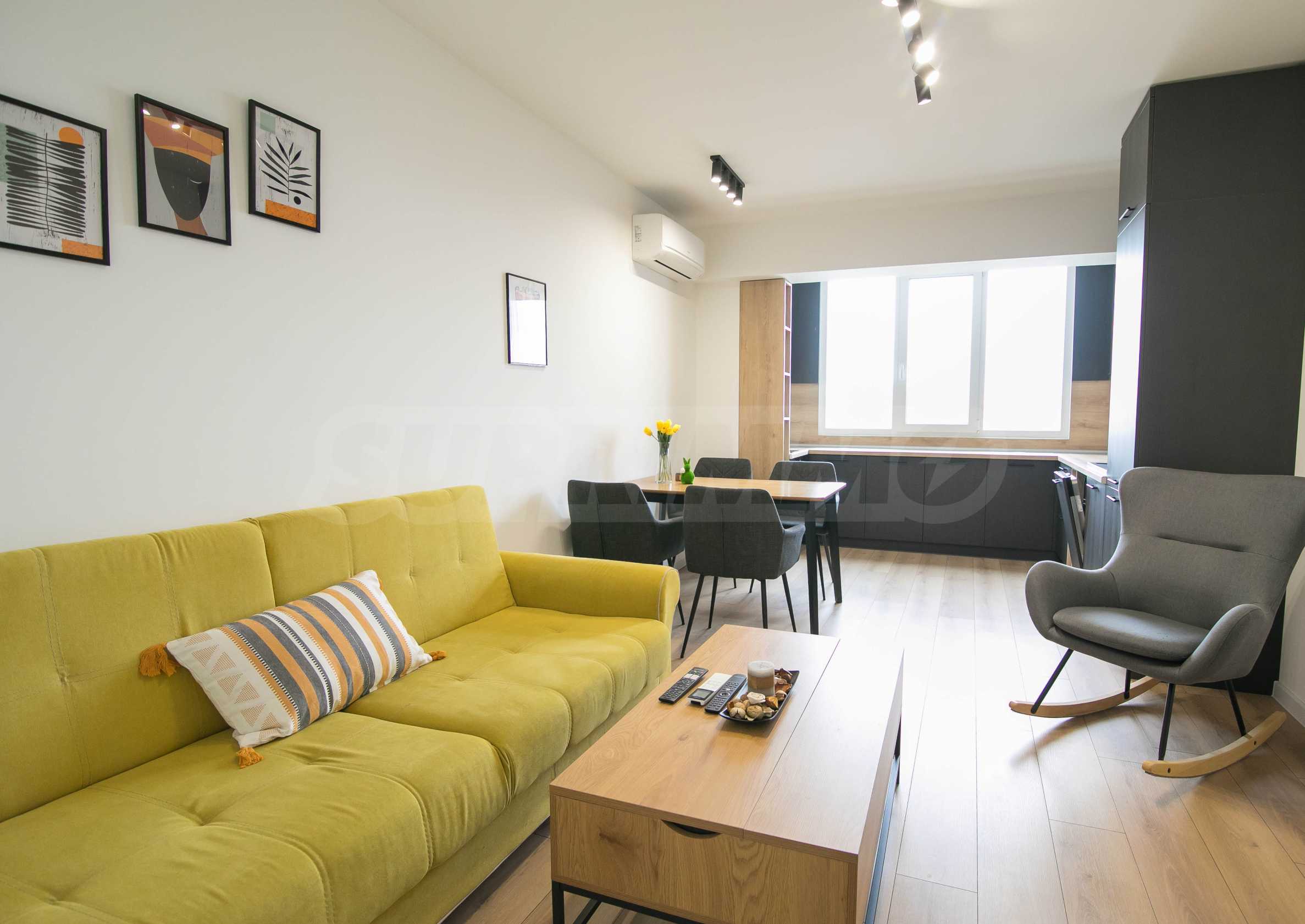 Имотът е обзаведен с чисто нови мебели и електроуреди. Жилището е напълно оборудвано с всичко необходимо за едно домакинство, като уредите са вградени – хладилник, съдомиялна машина, фурна и котлони.