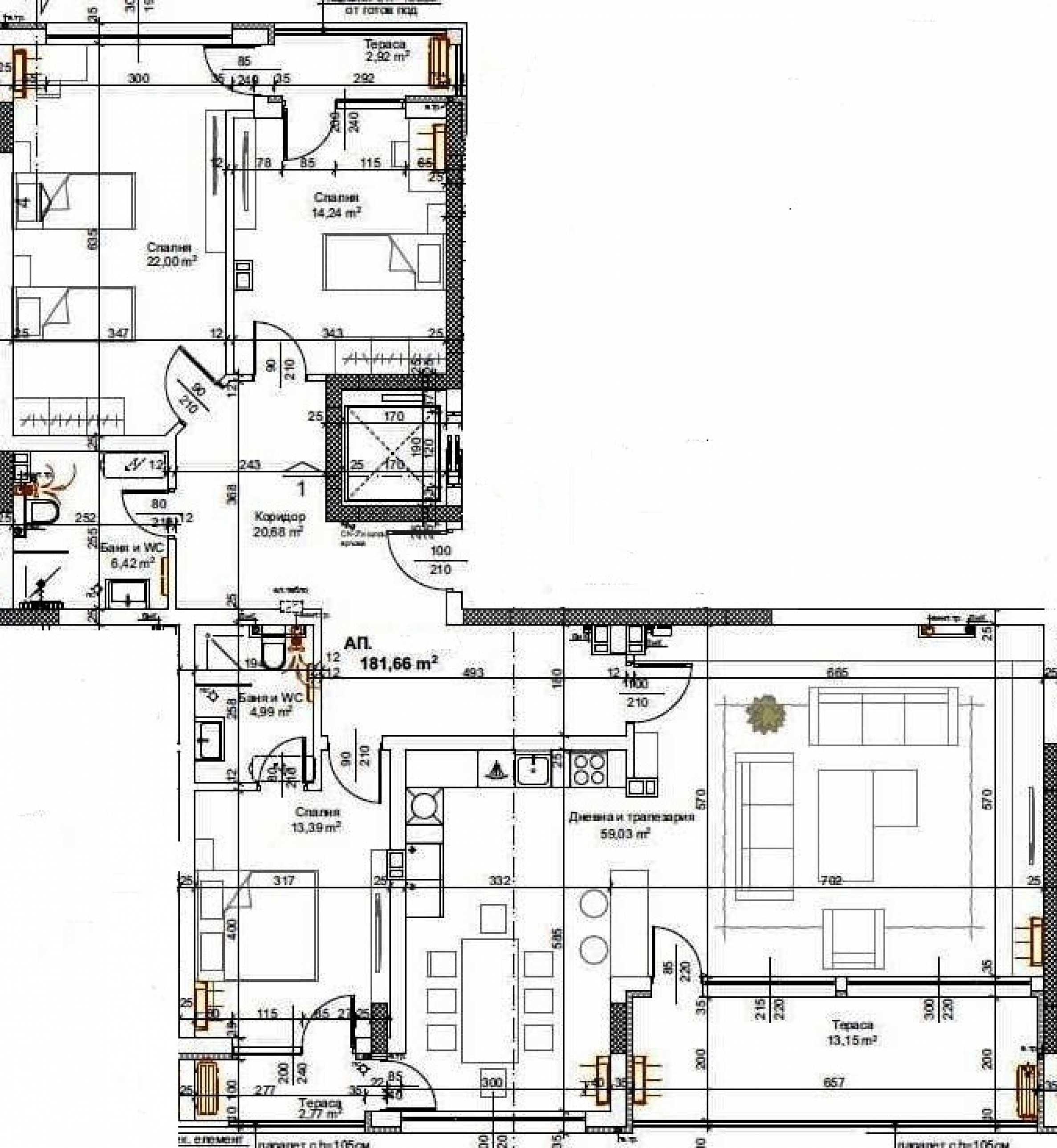 • впечатляваща всекидневна с трапезария и кухненски бокс - 59.03 кв.м;