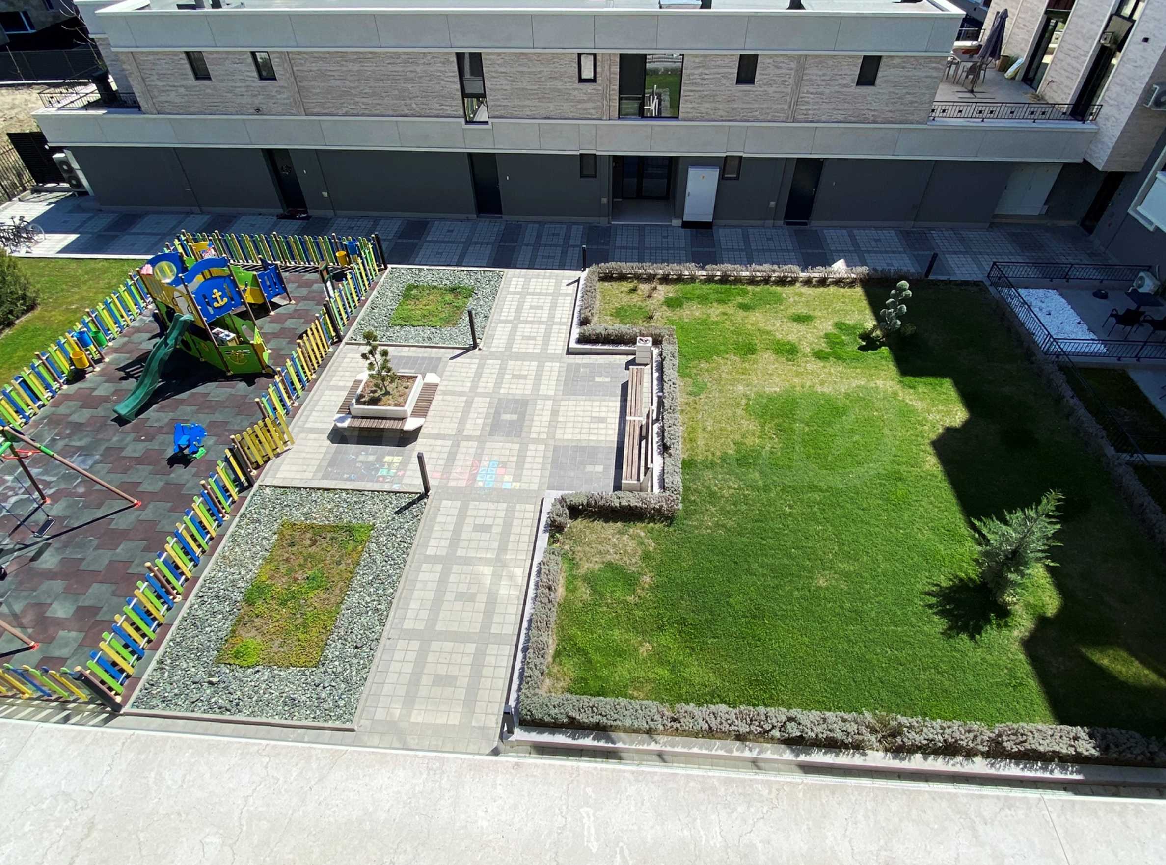 Сградата е въведена в експлоатация (с Акт 16), с контролиран достъп, асансьор и вътрешен парк.