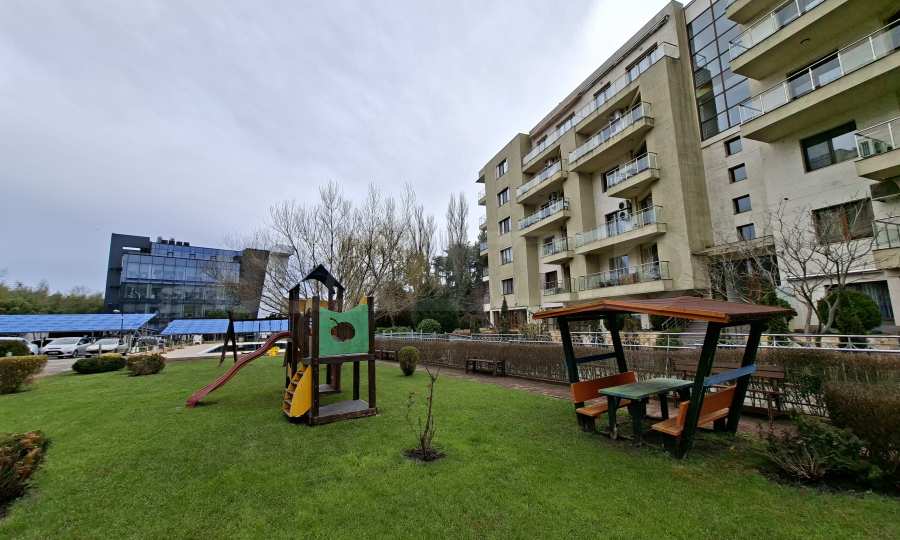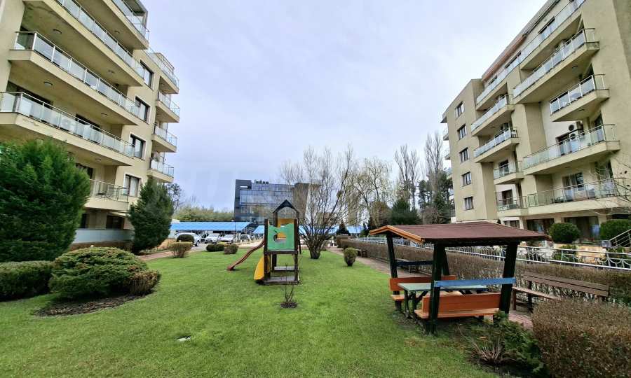 • Изглед: към тих, озеленен вътрешен двор и басейн;