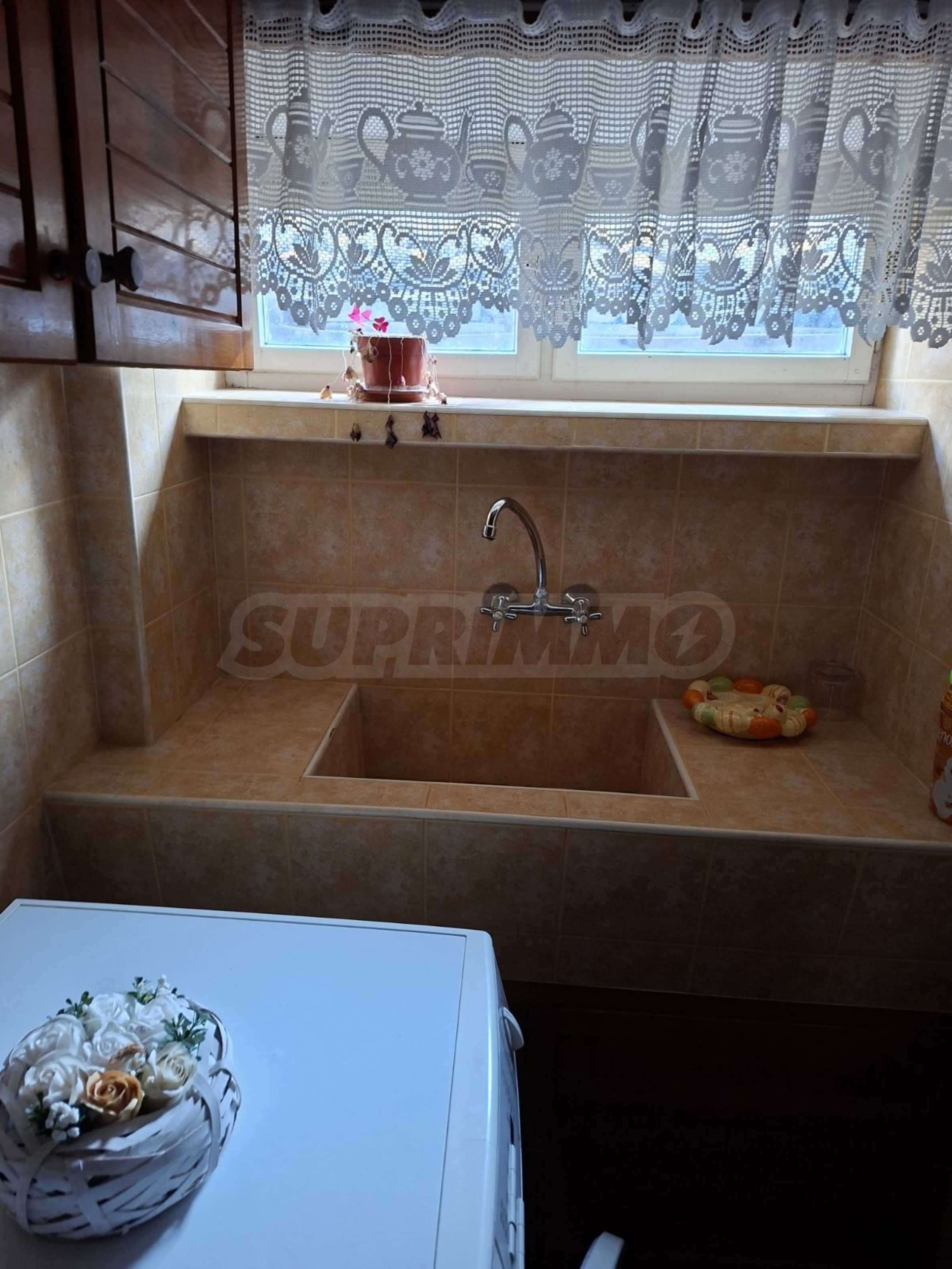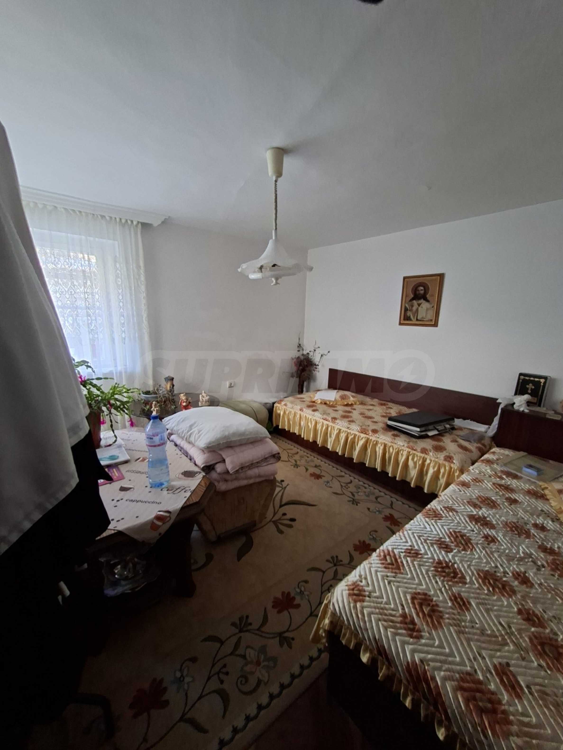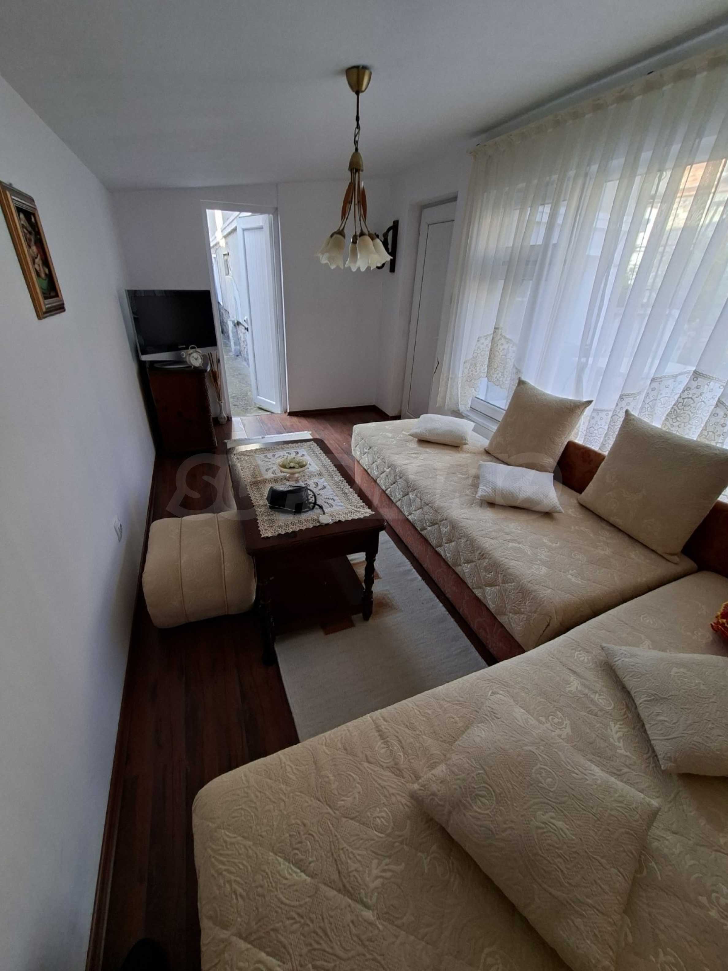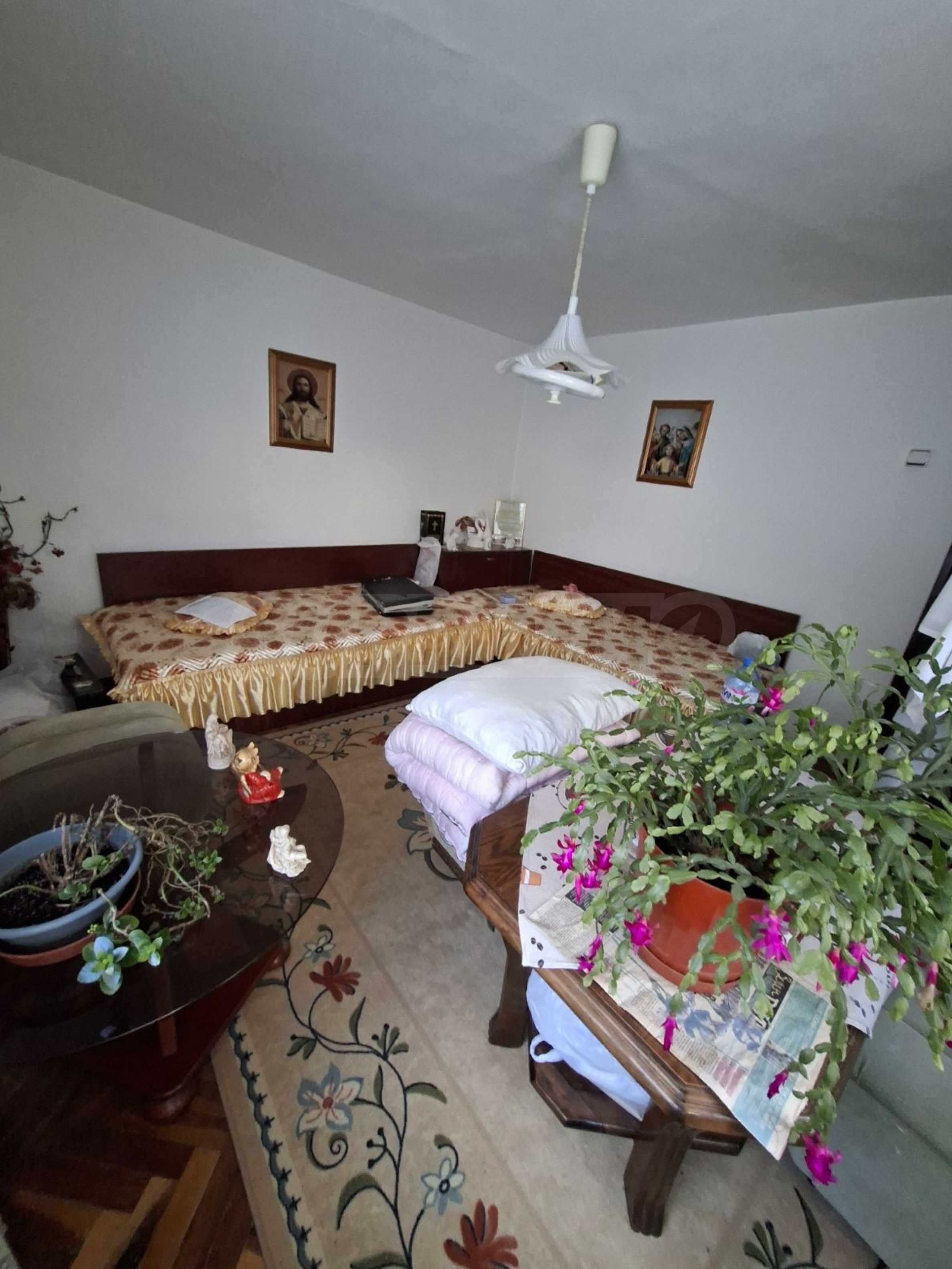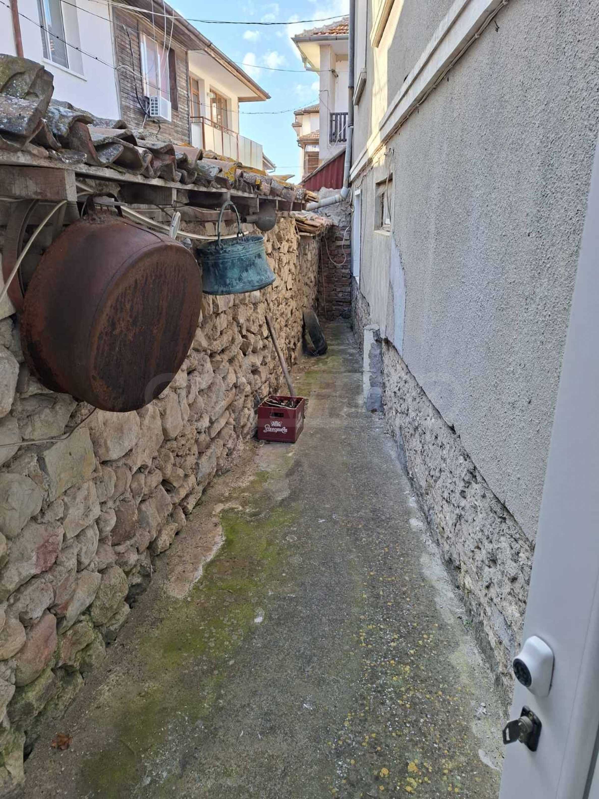 Имотът е с РЗП 160 кв.м, разположен върху парцел от 240 кв.м, поддържан и приятен двор, с външна чешма, кът за отдих и допълнителна пристройка с лятна кухня и една стая.