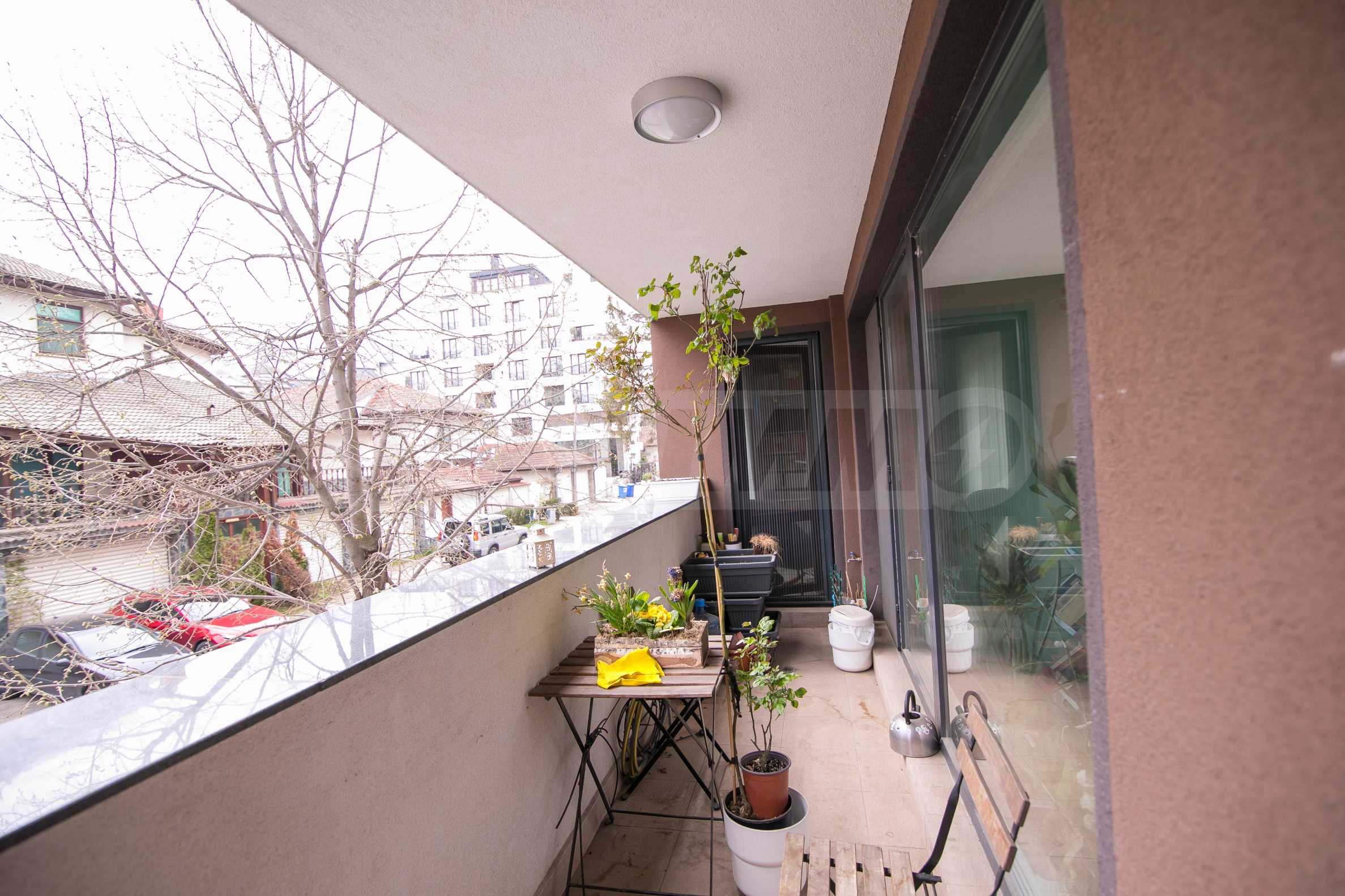 Жилището е ситуирано на първи висок етаж (втори жилищен) в модерна сграда ново строителство от 2021 г., с отлично поддържани общи части. Сградата е част от затворен комплекс с озеленен вътрешен двор и обособена зона за игра на деца.