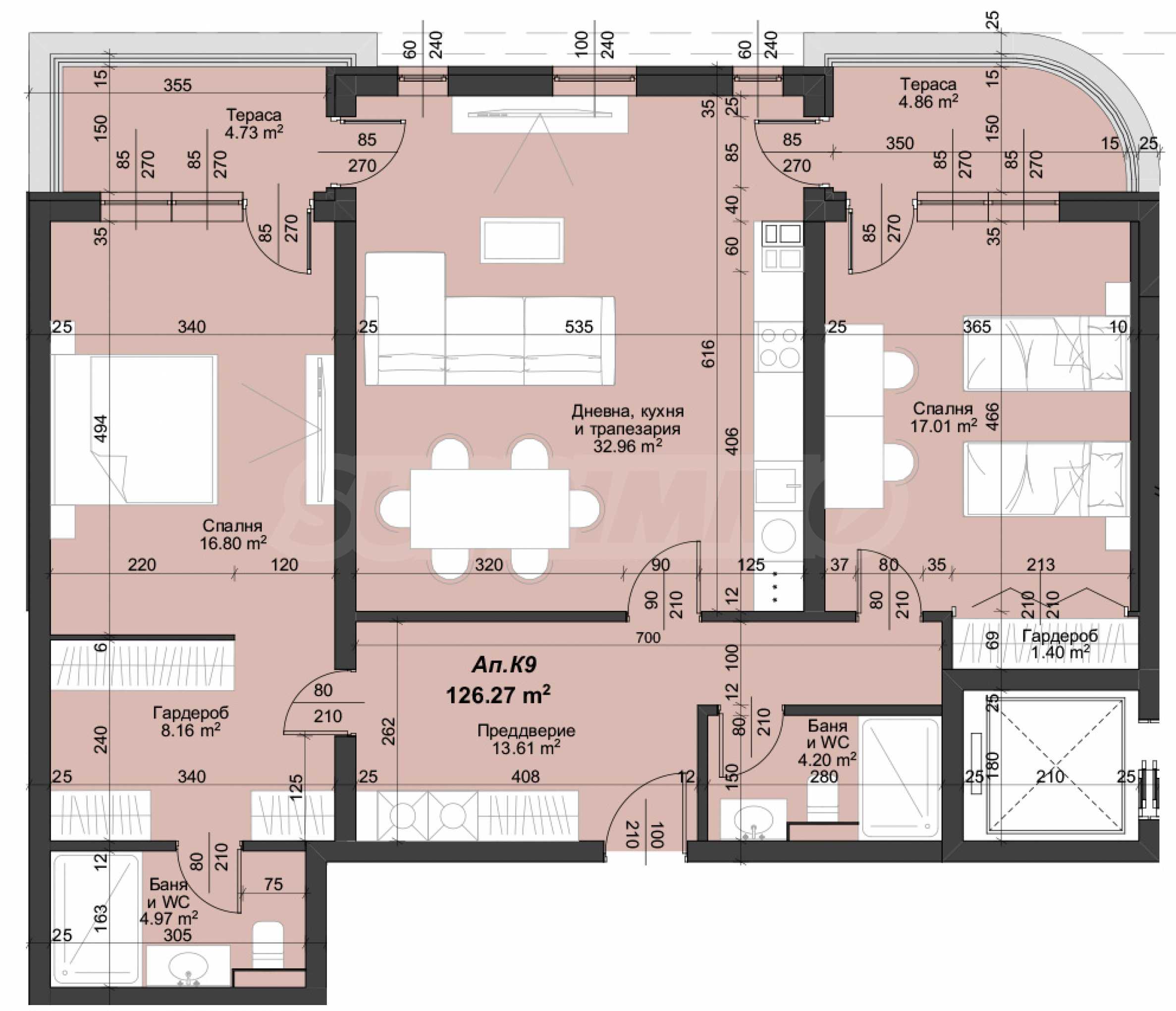 • апартаменти с една, две или три спални;