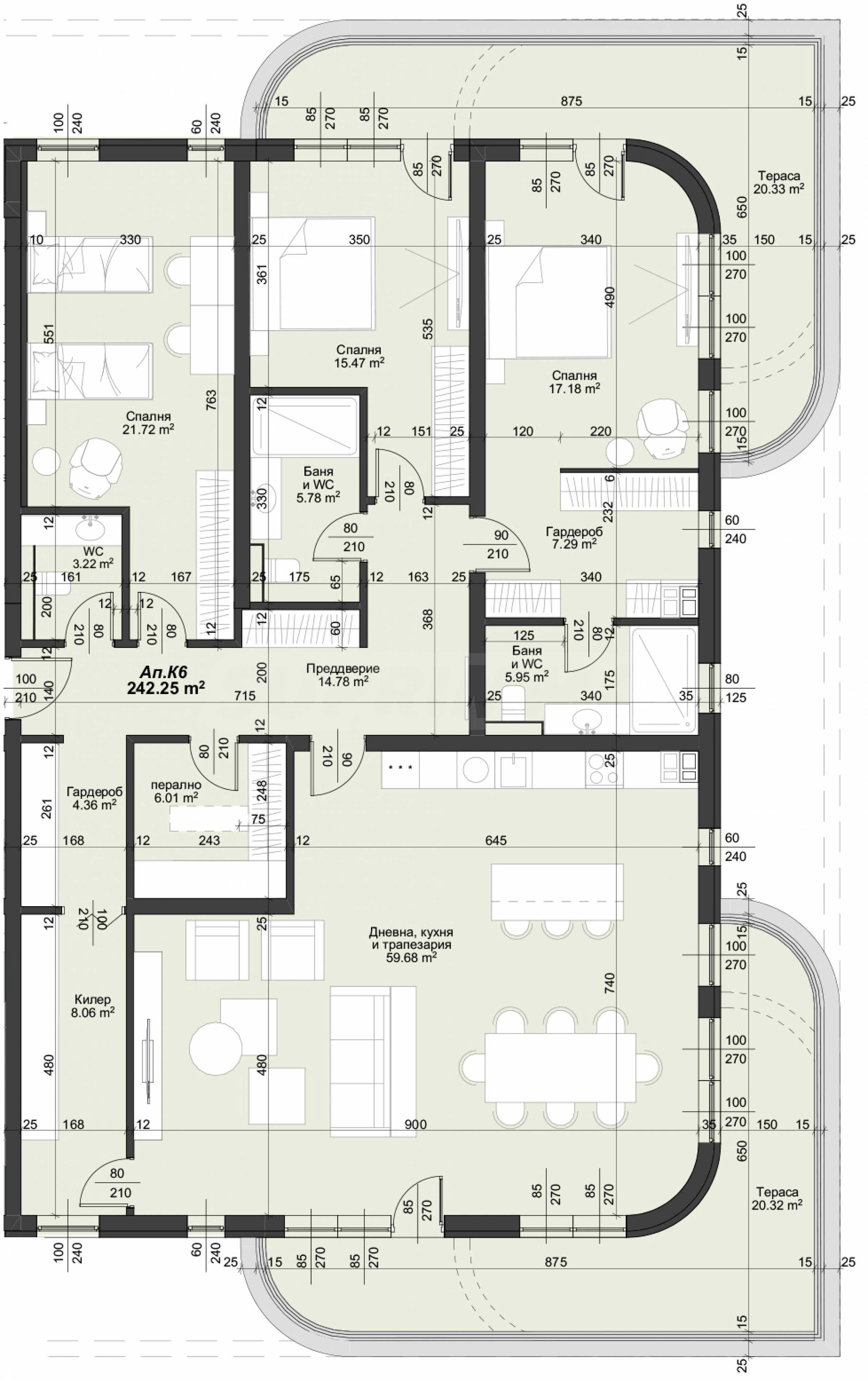 Жилището с обща площ от 282,89 кв.м е разположено на 2-ри етаж от 5.
