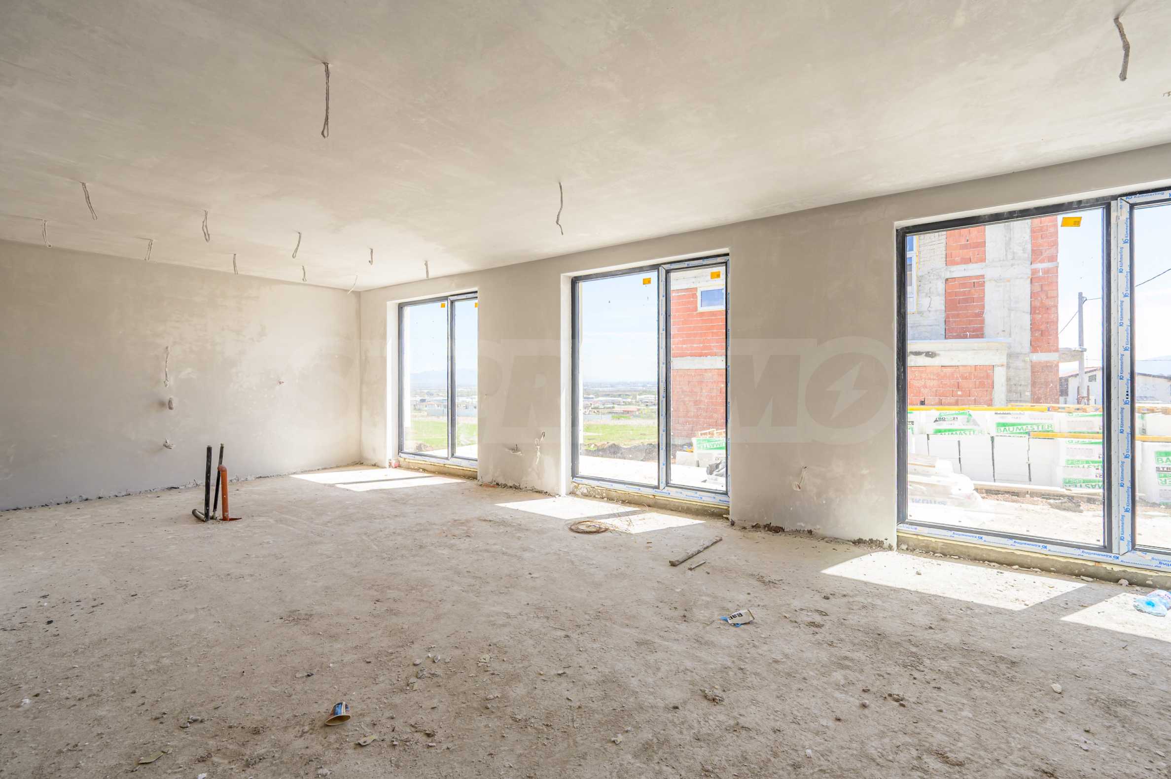 Имотът се предава в степен на завършеност, която позволява реализирането на индивидуален интериорен проект – с фино шпакловани стени и тавани. Големите прозорци с троен стъклопакет осигуряват изобилие от естествена светлина и усещане за връзка с околната среда.