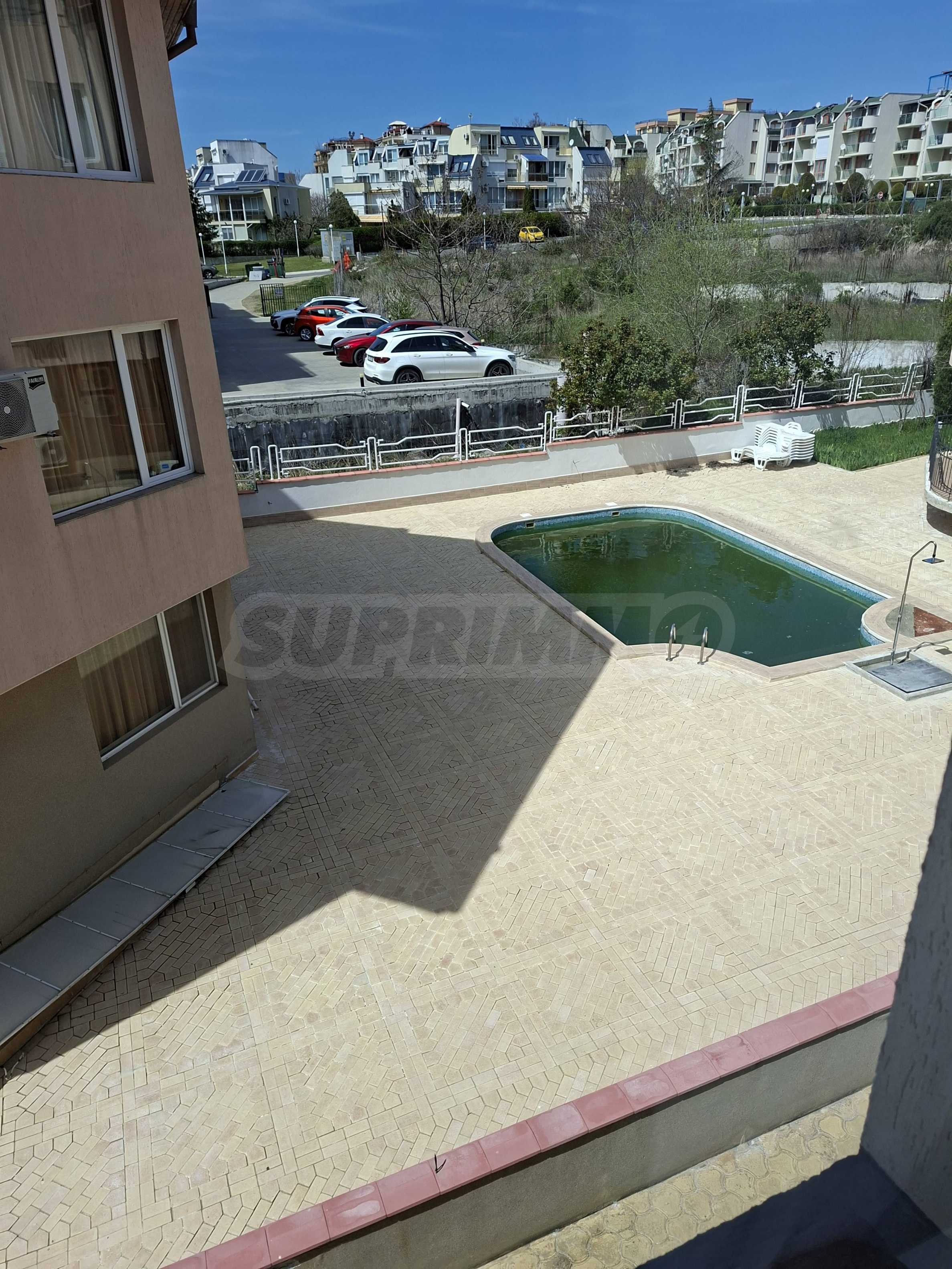 Комплексът предлага басейн, зона за барбекю, градина и приятна релакс зона, създаваща спокойна и комфортна среда.
