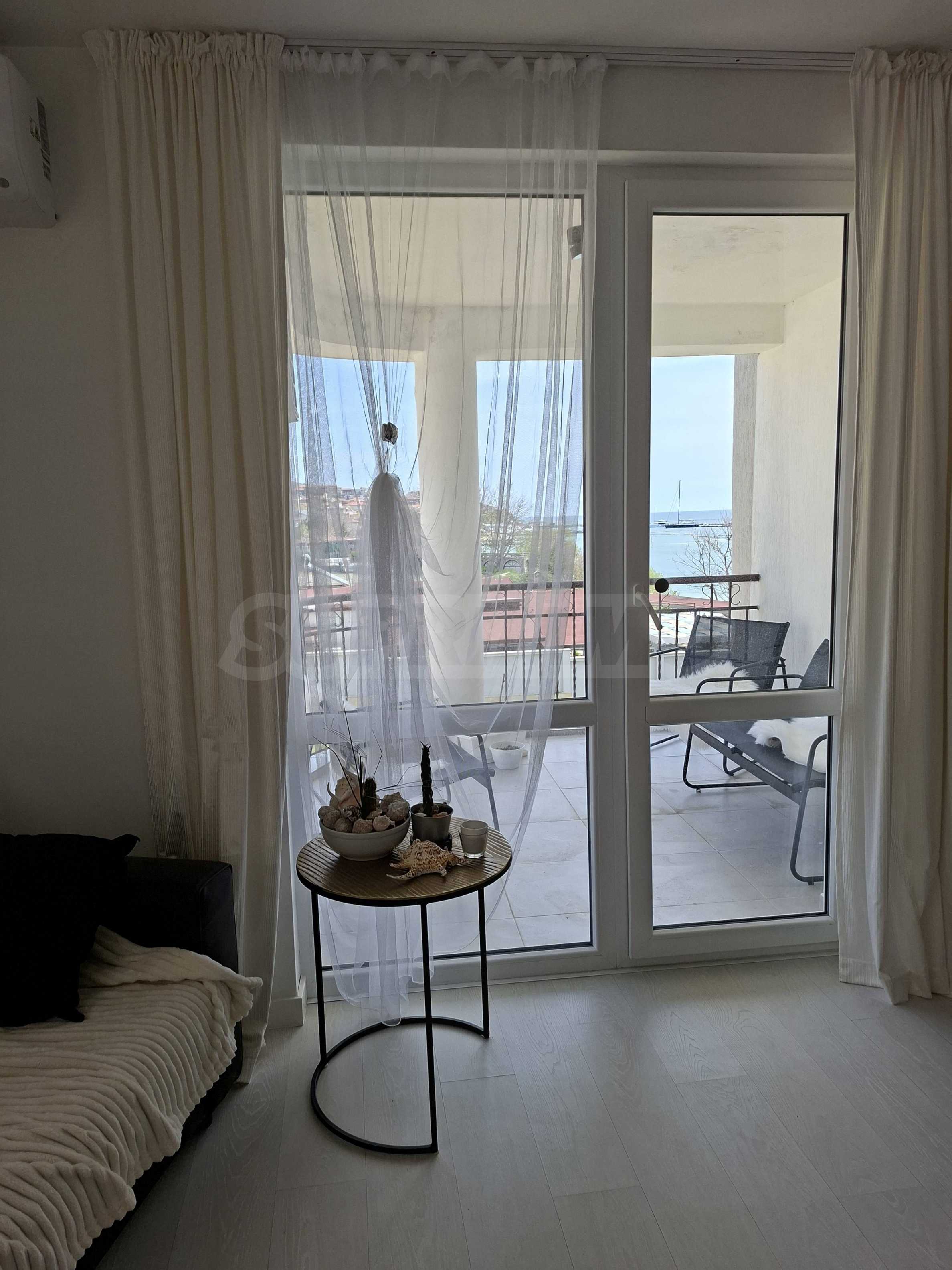 Имотът е с обща площ от 61 кв.м, разположен на 2-ри етаж с красива гледка към морето.