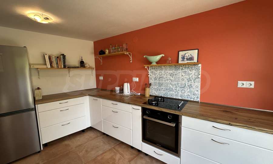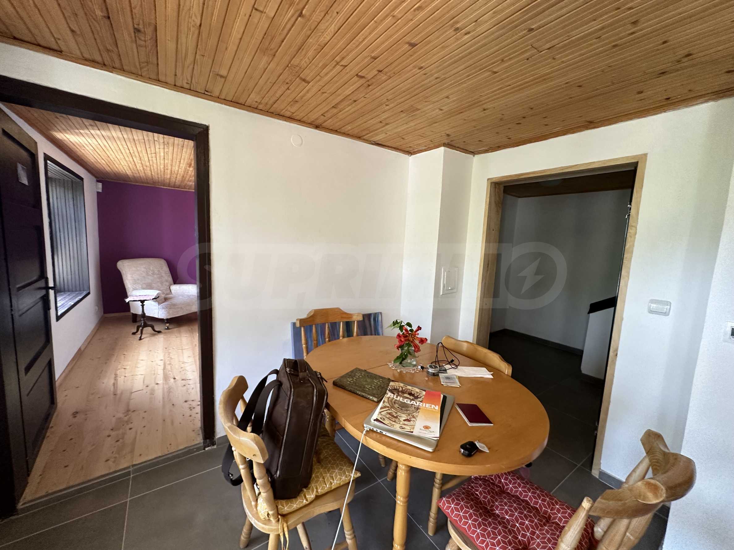 • Първи етаж: кухня, трапезария, хол и баня с тоалетна