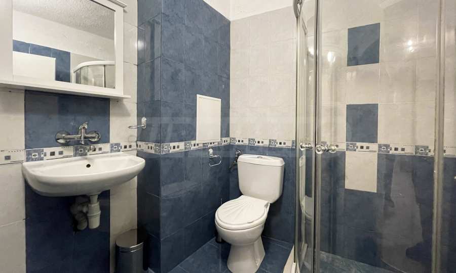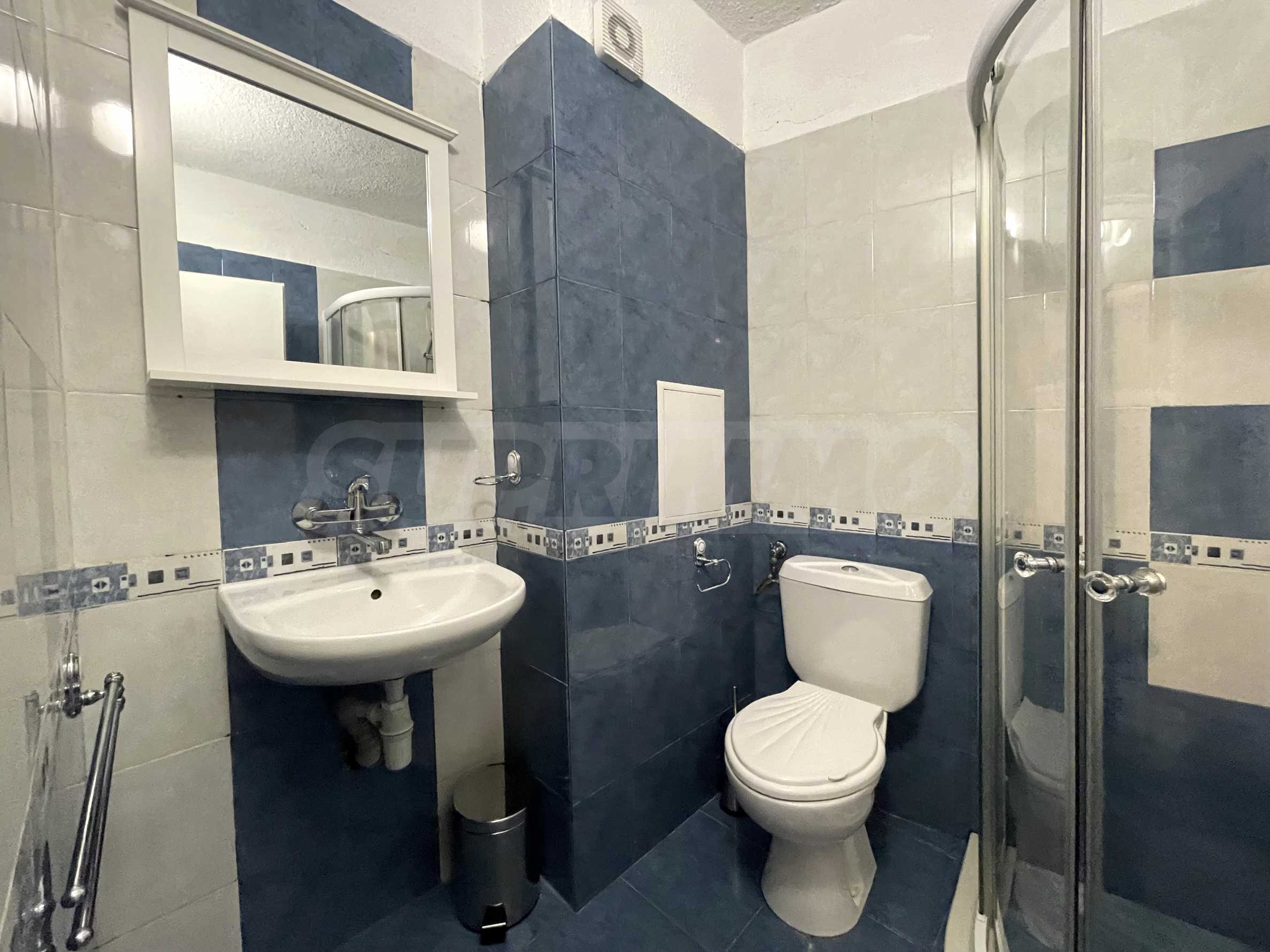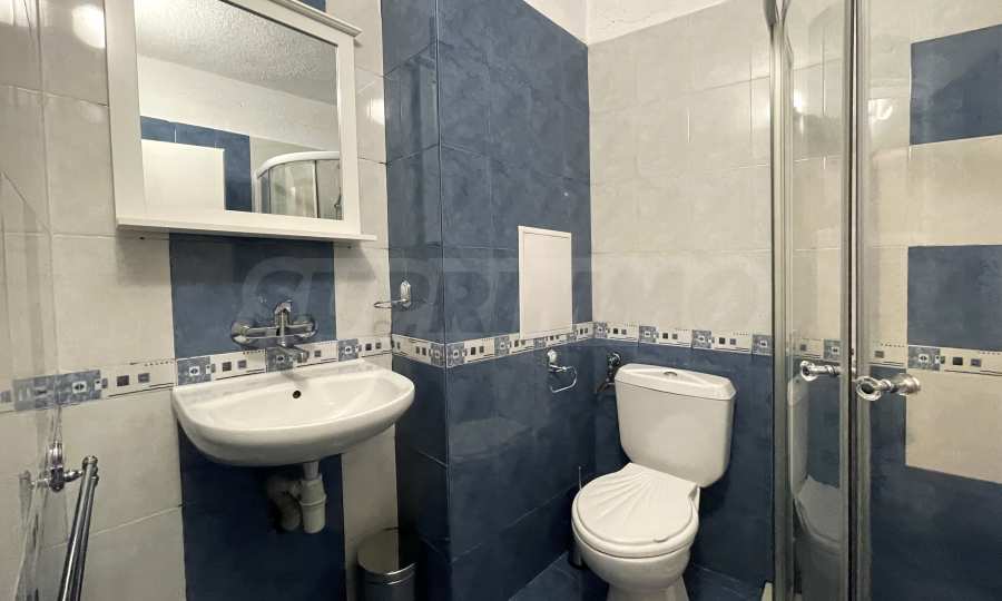 Жилището е на 6 етаж, с източно изложение, състои се от антре, едно помещение с кухненски бокс и тераса, баня с тоалетна и складово помещение.
