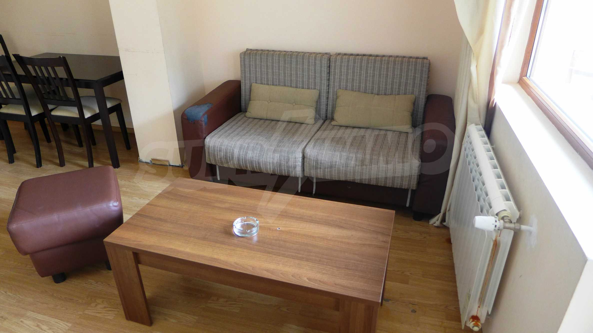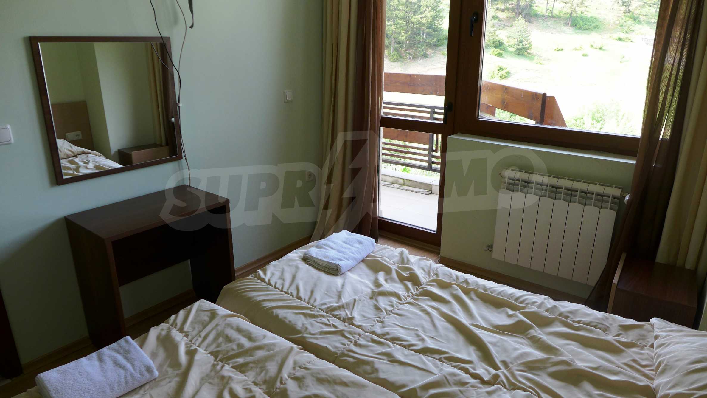 Слънчево южно изложение разполага с обща площ – 89.26 кв.м., чиста площ – 71.32 кв.м., общи части – 17.94 кв.м. От него се разкрива живописна гледка към басейна и планината. Апартаментът се състои от хол с кухненски бокс, две спални, баня с тоалетна и един балкон. Стаите са завършени със стени - латекс, подове - ламинат и теракот и ПВЦ дограма.