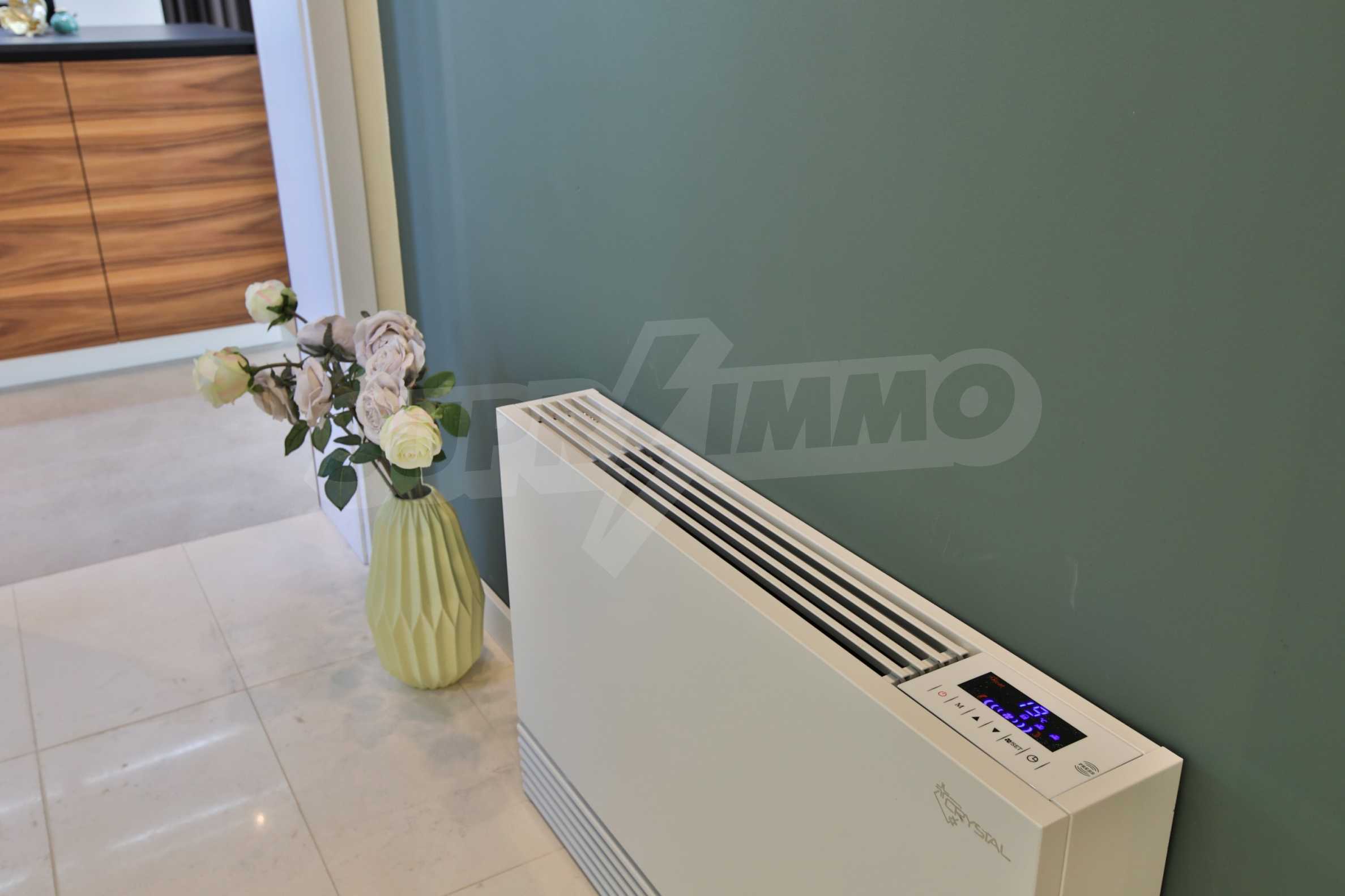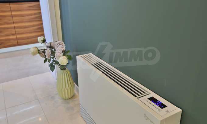 Отопленето се осъществява чрез термопомпа вода-въздух.