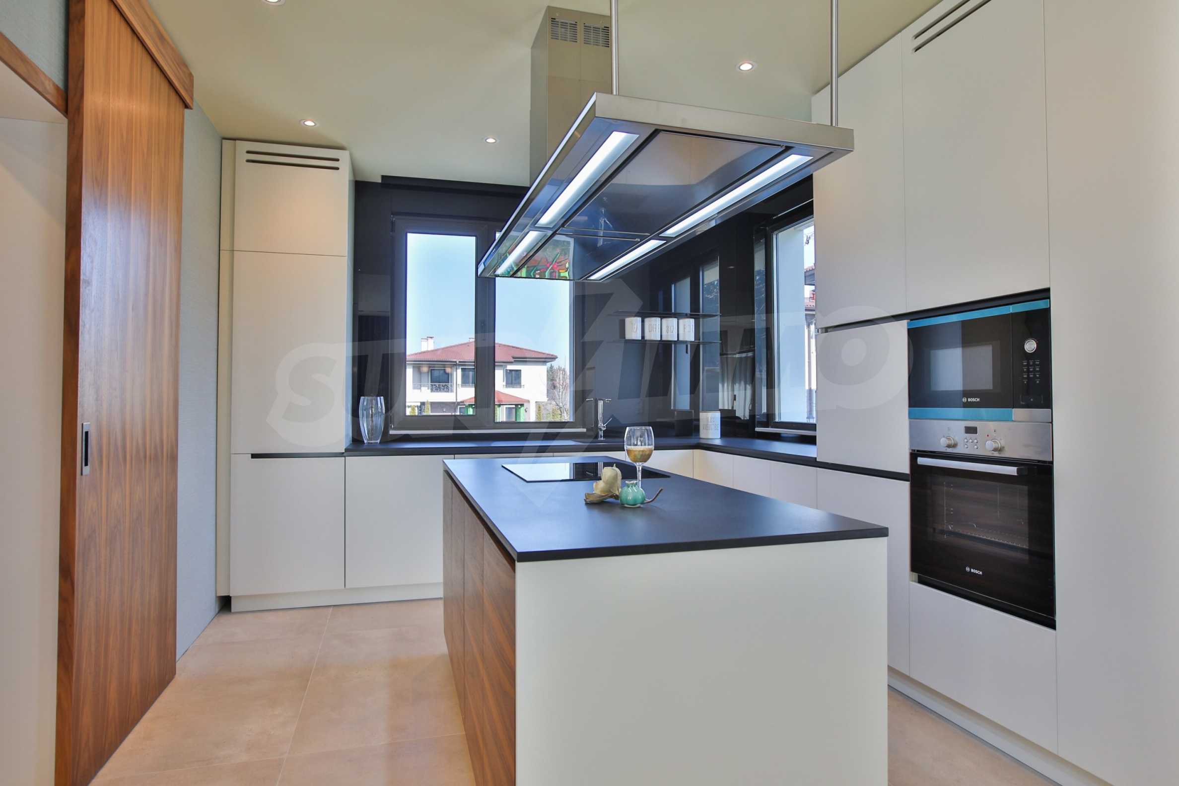 Къщата се откроява със стилен интериор и висококачествено изпълнение на довършителните работи: