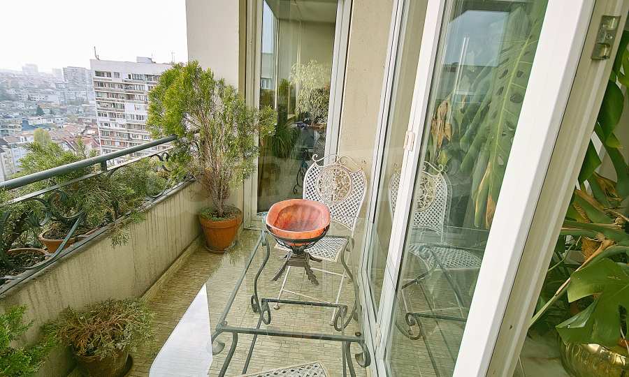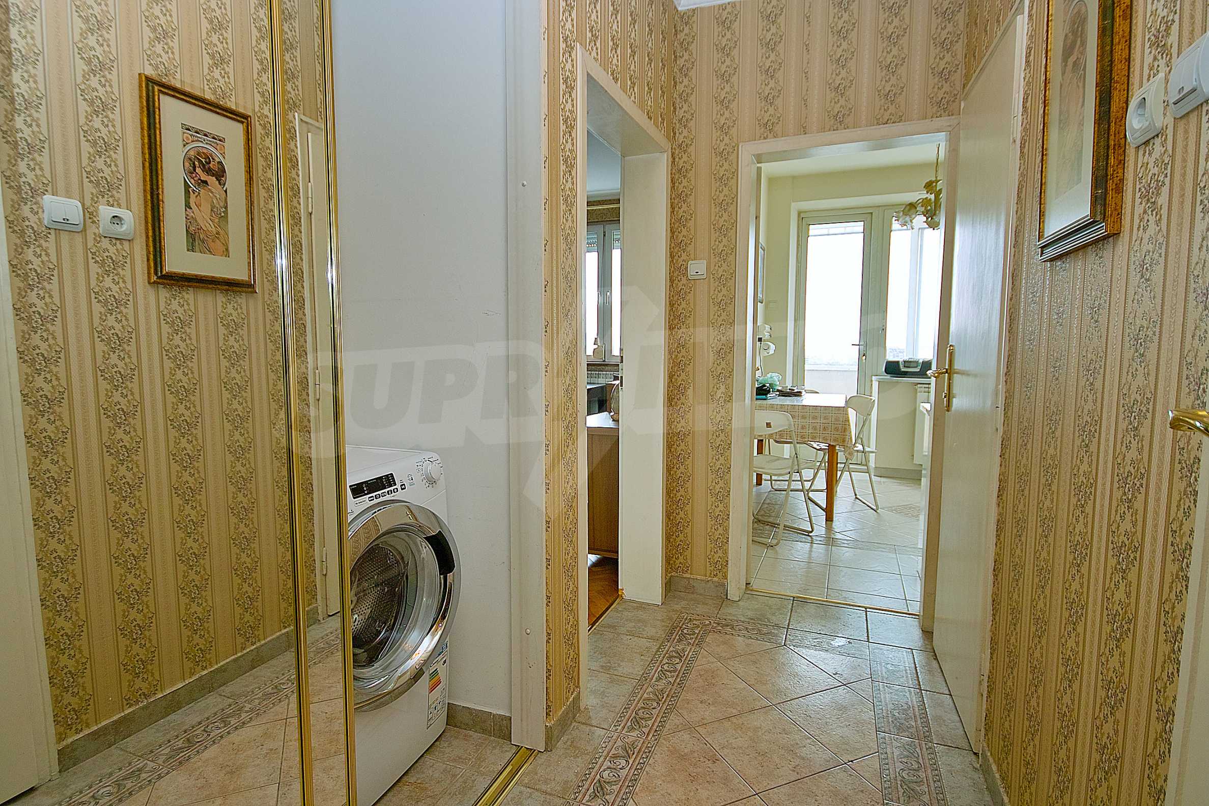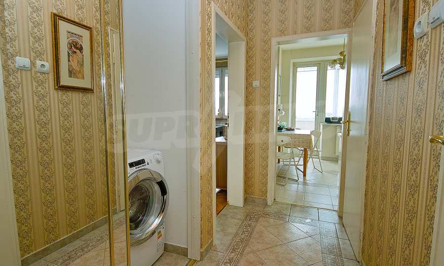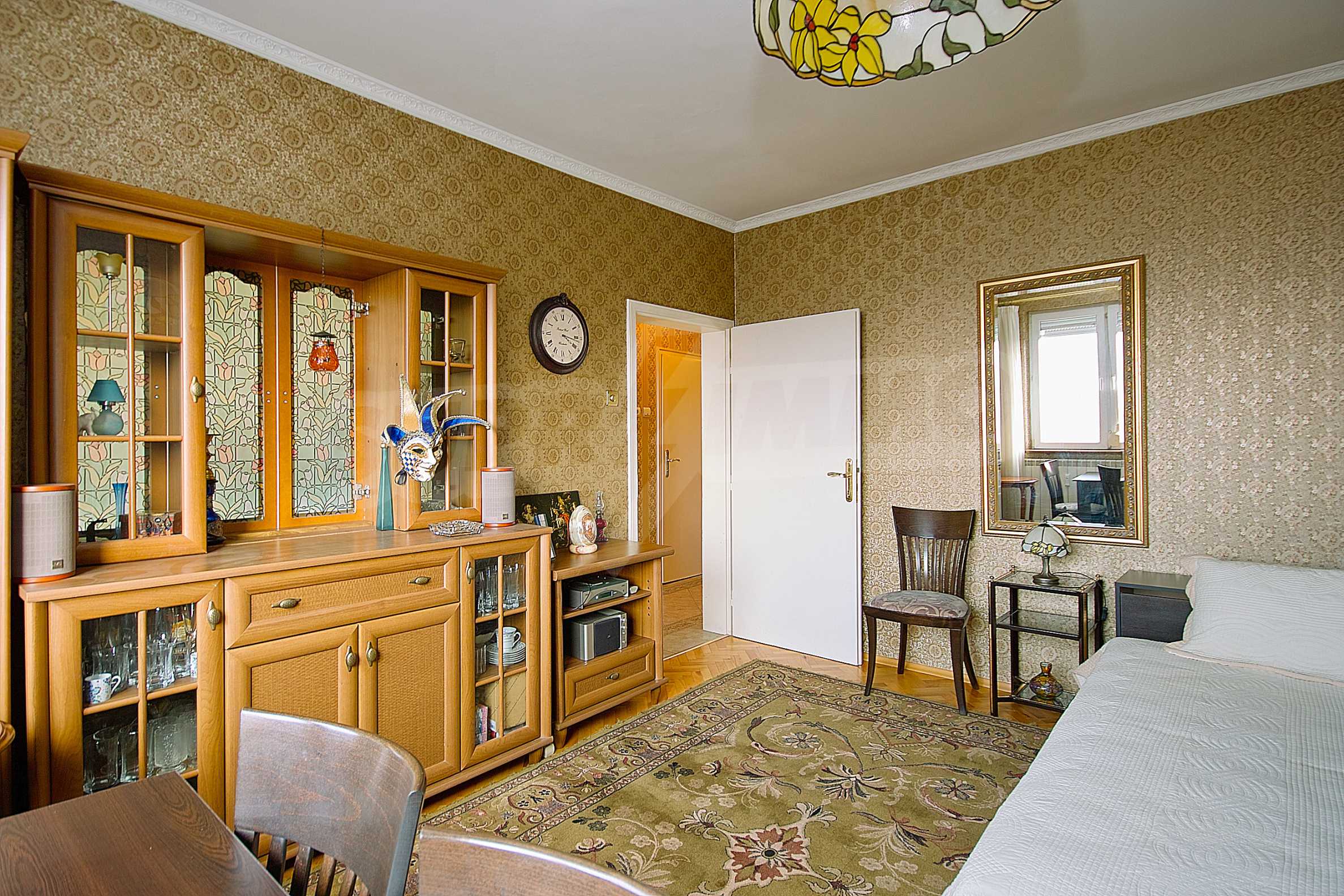 Разпределението на жилището включва коридор, кухня с остъклена тераса , тоалетна за гости , хол с преход към спалня, втора спалня, балкон с уникална панорама към Витоша и баня с тоалеа. Имотът е след основен ремонт с изцяло подменени мебели и ел. уреди.
