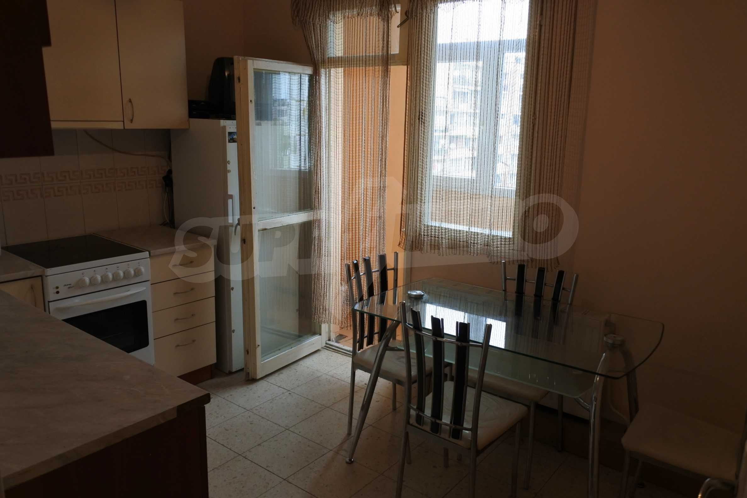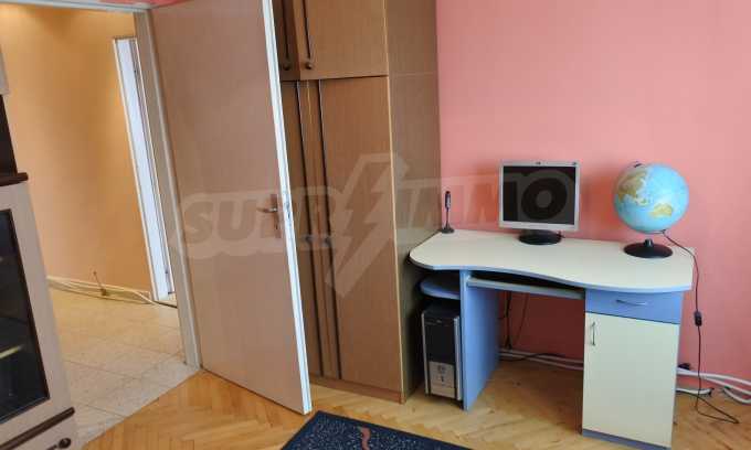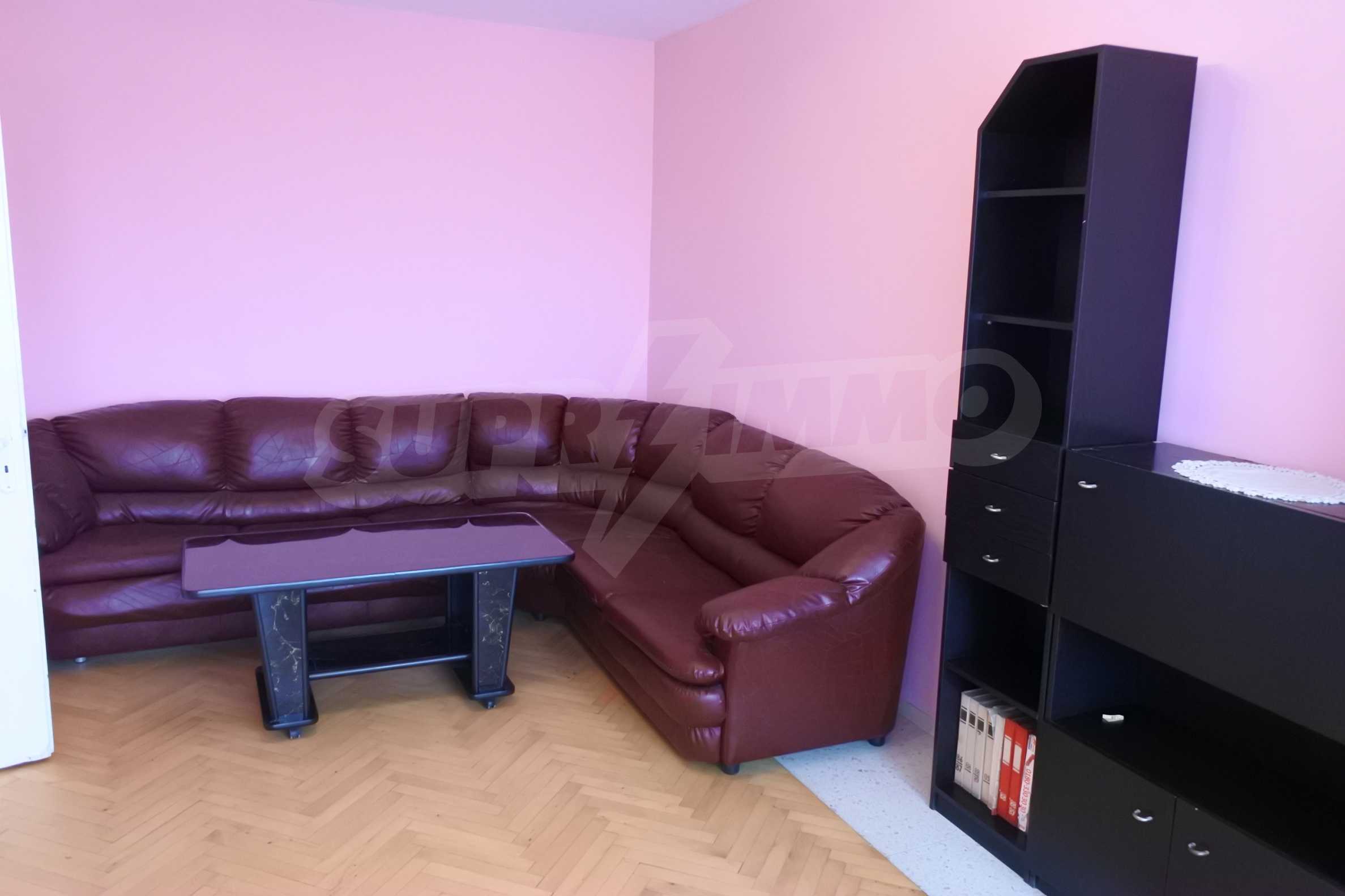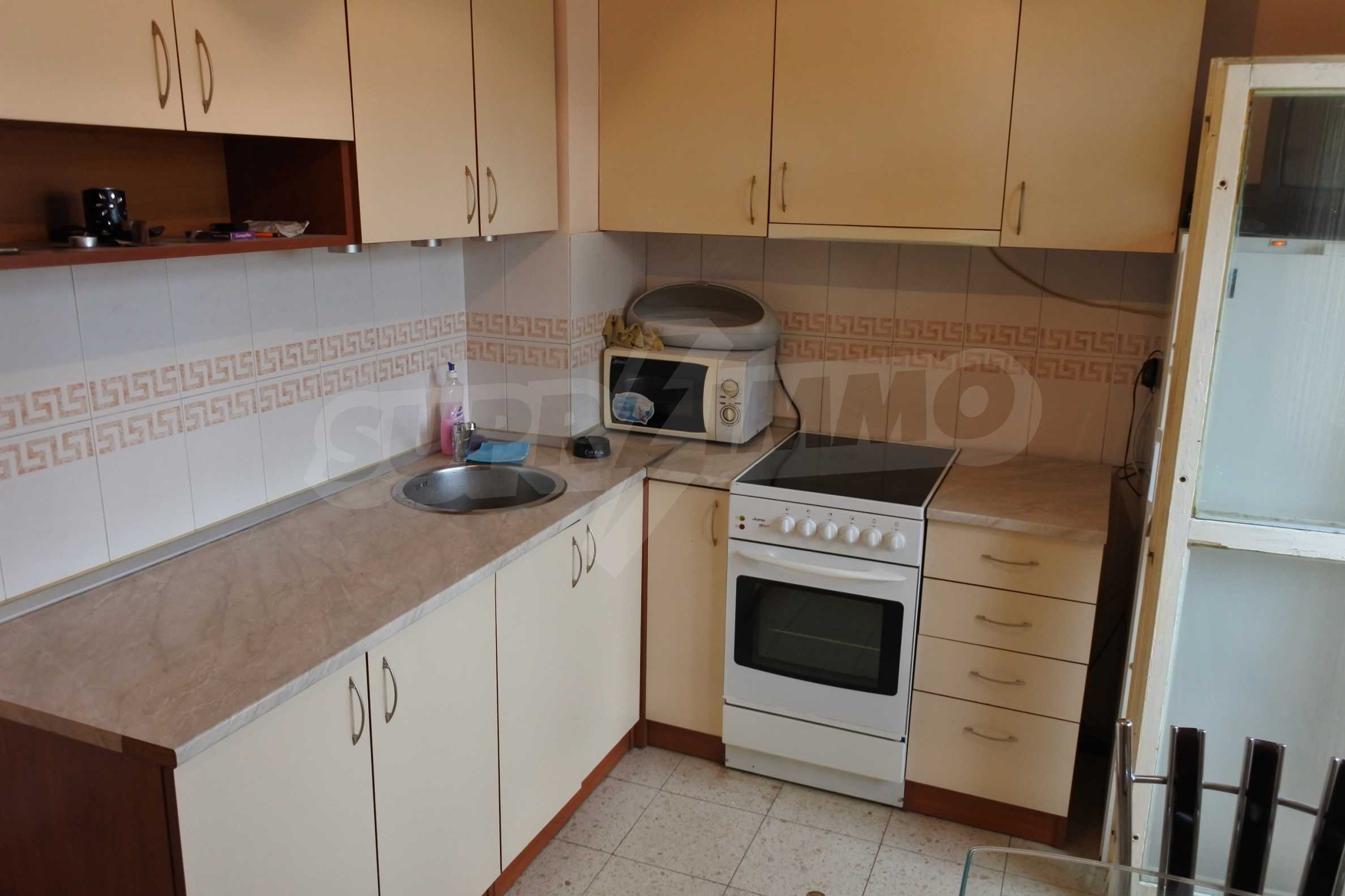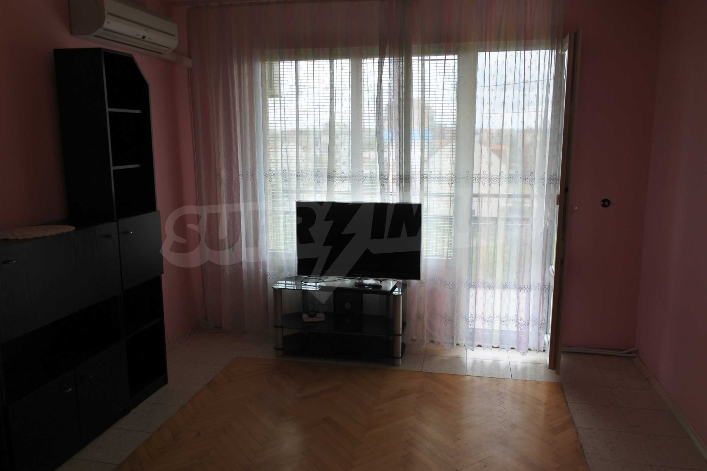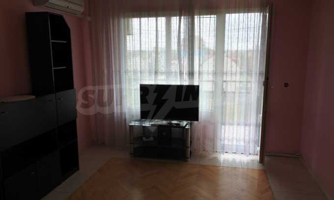 Отдава се под наем тристаен апартамент в квартал „Бонония “. Апартаментът е разположен на шести жилищен етаж в сграда с асансьор, като се характеризира с изложение север-юг и гледка към съседните жилищни сгради. Площта е разпределена между: коридор, кухня, всекидневна, две спални,две тераси/едната остъклена/, баня и тоалетна. Кухнята е обзаведена и оборудвана с шкаф мивка, стенни шкафове, готварска печка, хладилник, пералня и микровълнова фурна. Останалото обзавеждане включва маса за хранене и столове, кожен диван, спалня, легло, гардероби, секционни шкафове и писалищна маса. Отоплението е посредством климатици. В близост има хранителни магазини,детска площадка,училище и детска градина.