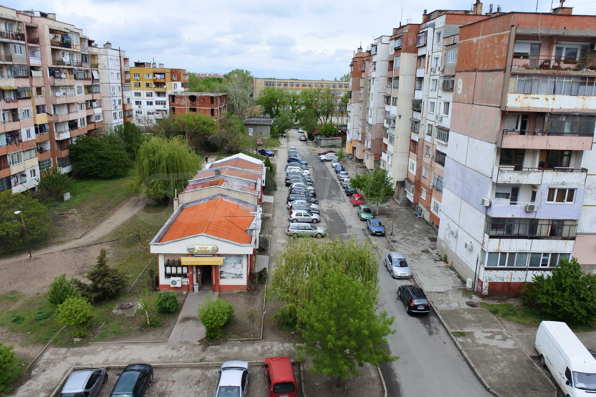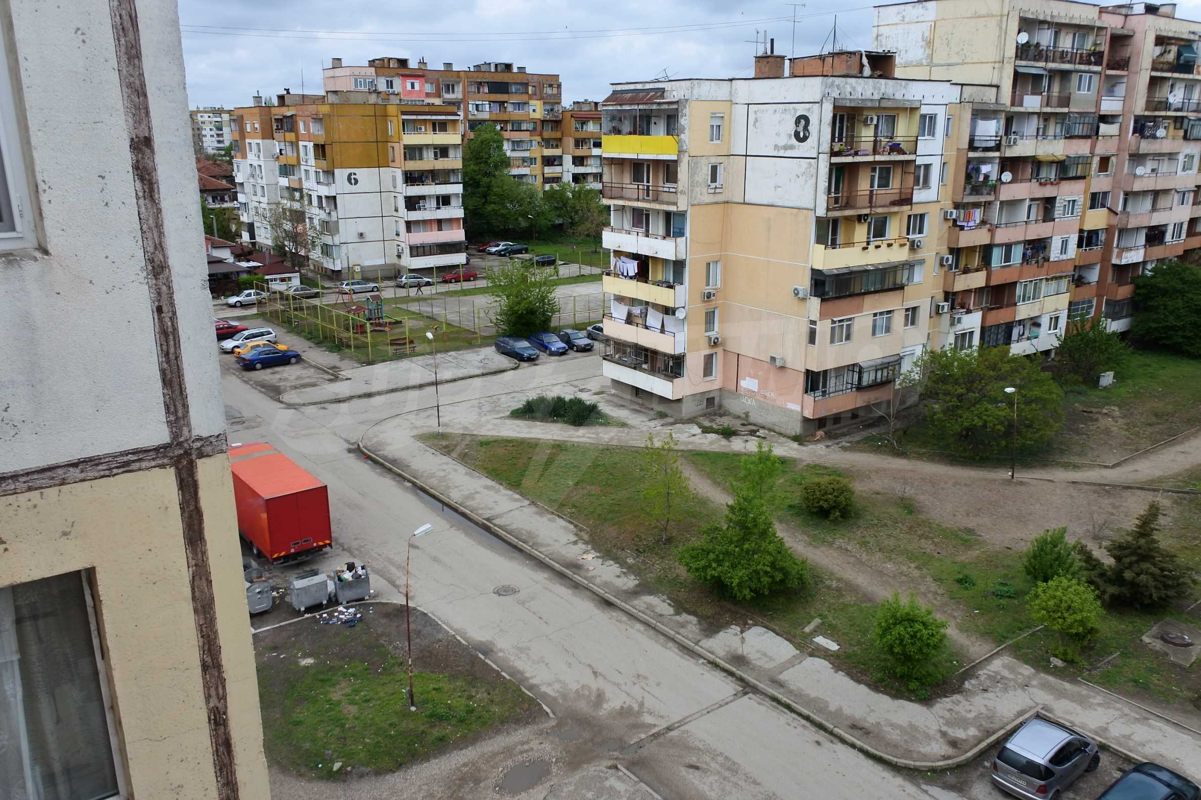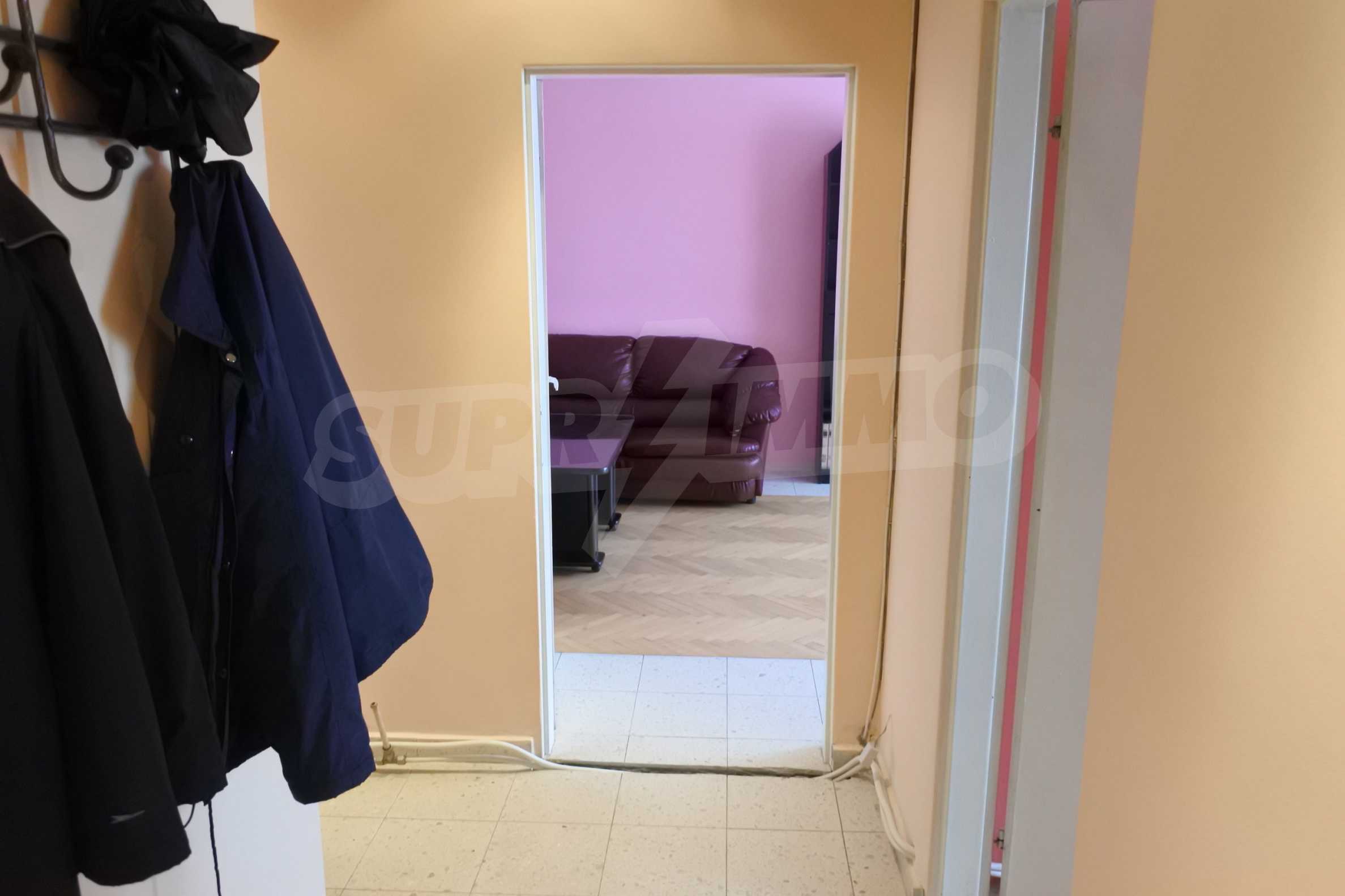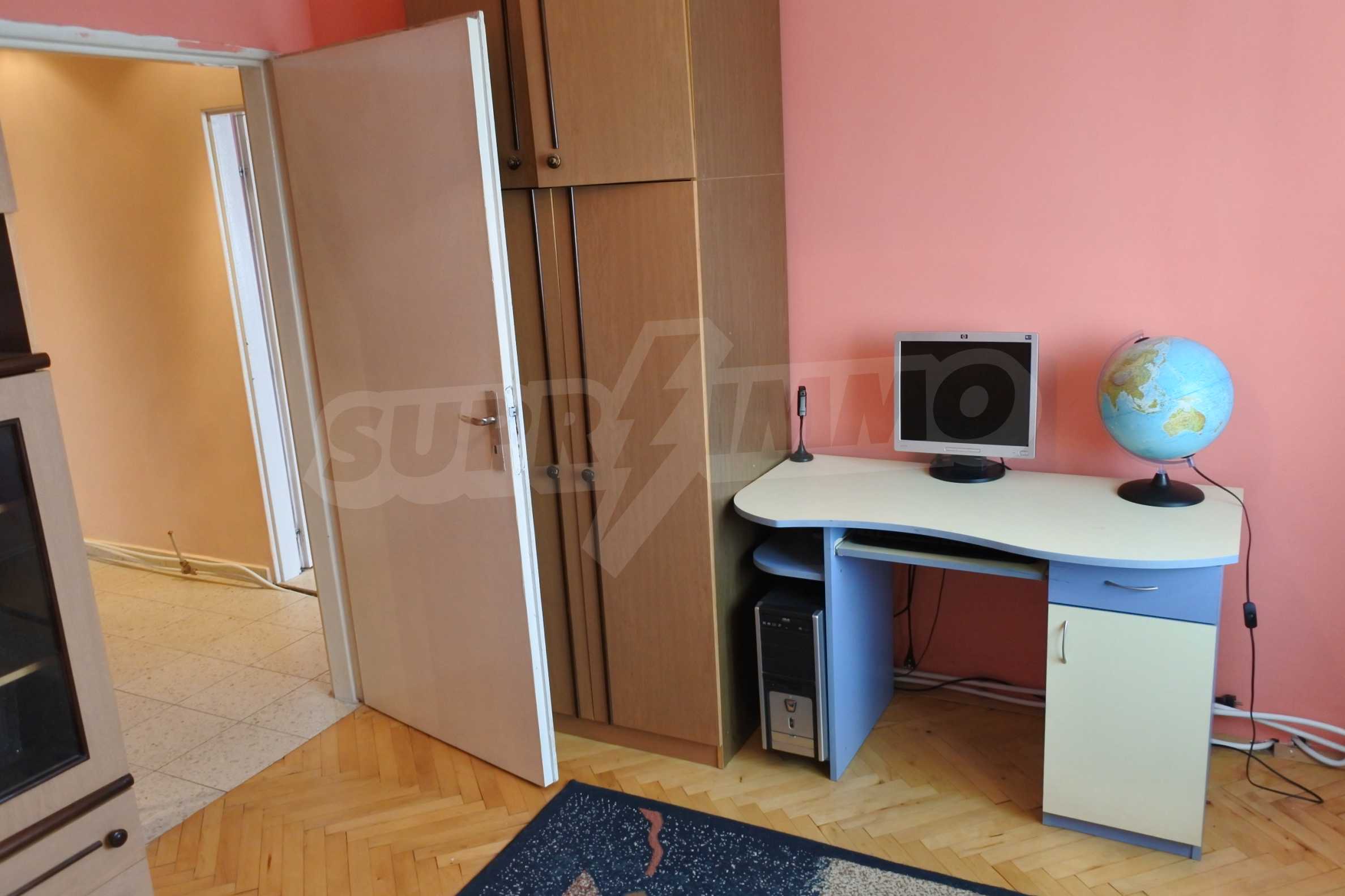 Отдава се под наем тристаен апартамент в квартал „Бонония “. Апартаментът е разположен на шести жилищен етаж в сграда с асансьор, като се характеризира с изложение север-юг и гледка към съседните жилищни сгради. Площта е разпределена между: коридор, кухня, всекидневна, две спални,две тераси/едната остъклена/, баня и тоалетна. Кухнята е обзаведена и оборудвана с шкаф мивка, стенни шкафове, готварска печка, хладилник, пералня и микровълнова фурна. Останалото обзавеждане включва маса за хранене и столове, кожен диван, спалня, легло, гардероби, секционни шкафове и писалищна маса. Отоплението е посредством климатици. В близост има хранителни магазини,детска площадка,училище и детска градина.