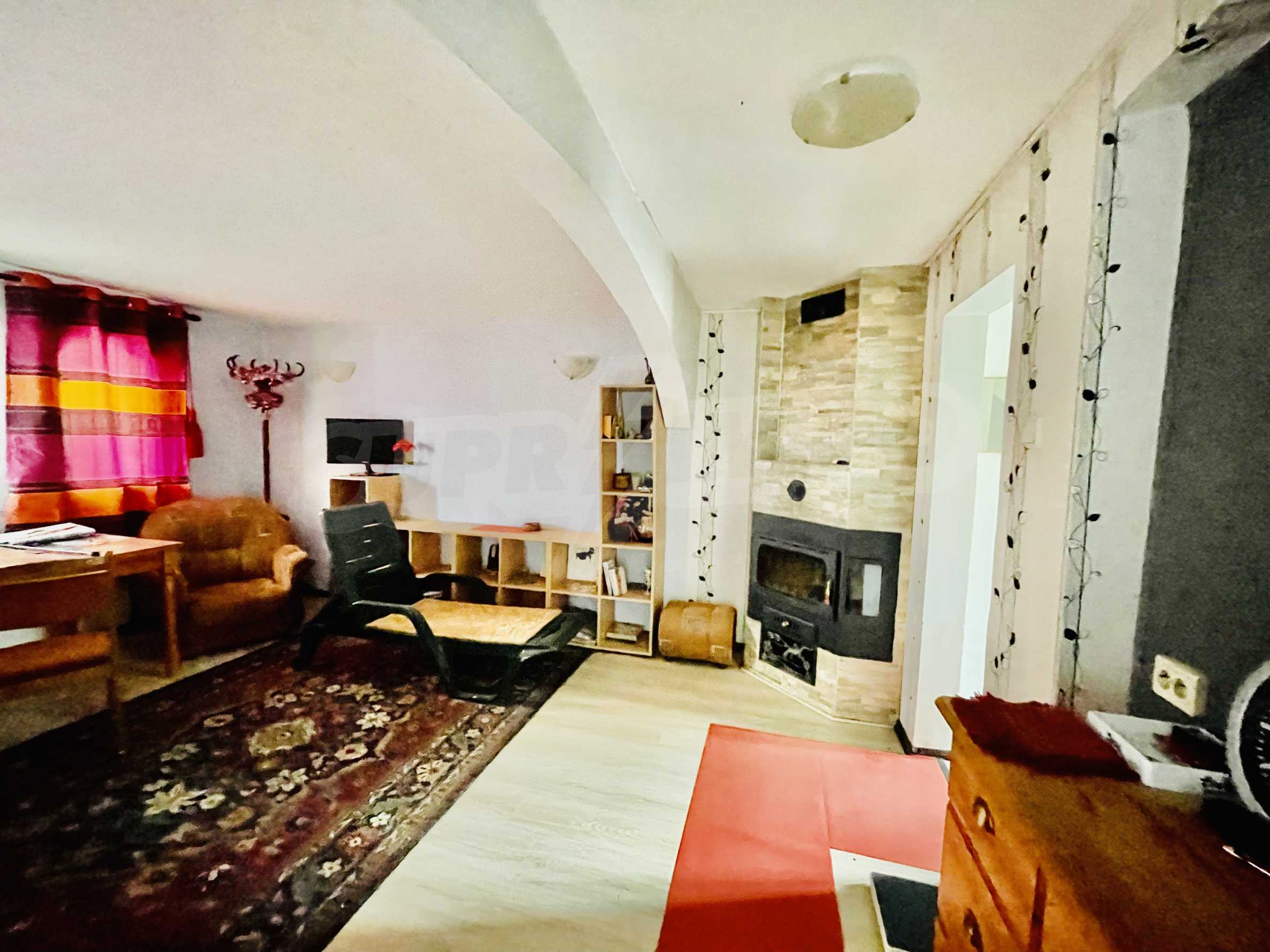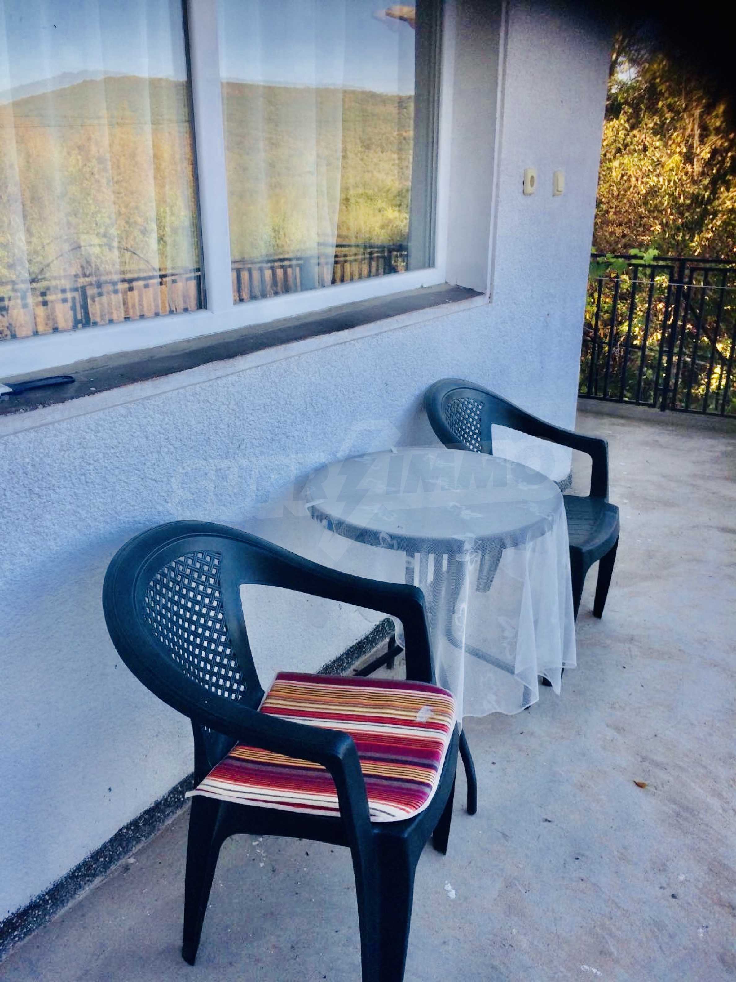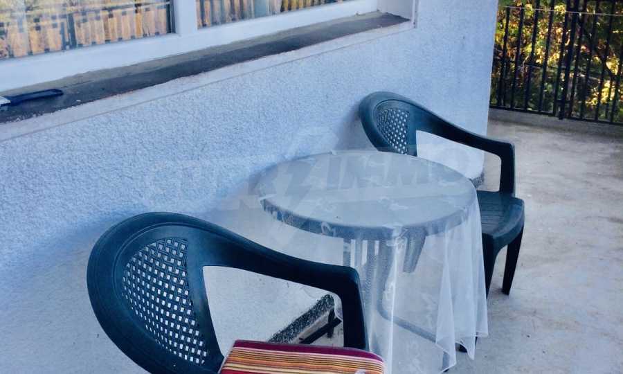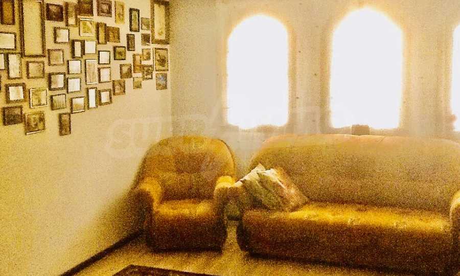 Другата стая е обзаведена с ъглов диван, фотьойли 2 бр., рафтове 3 бр., диван, трапезна маса, столове 4 бр., холна маса, щори, конвектор за отопление.В санитарното помещение има душ, бойлер, тоалетка.