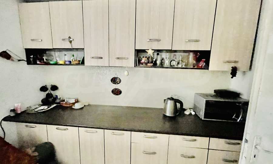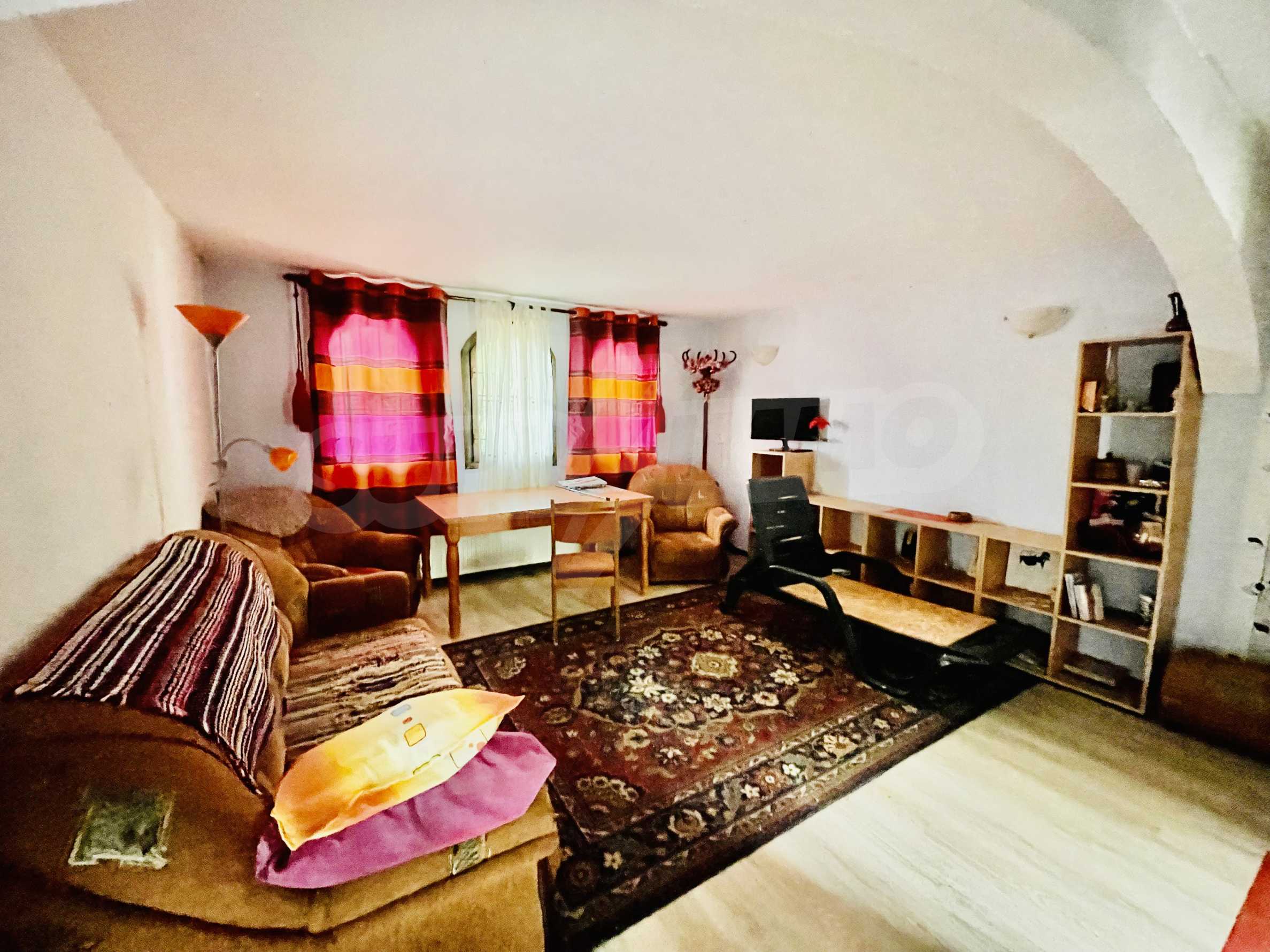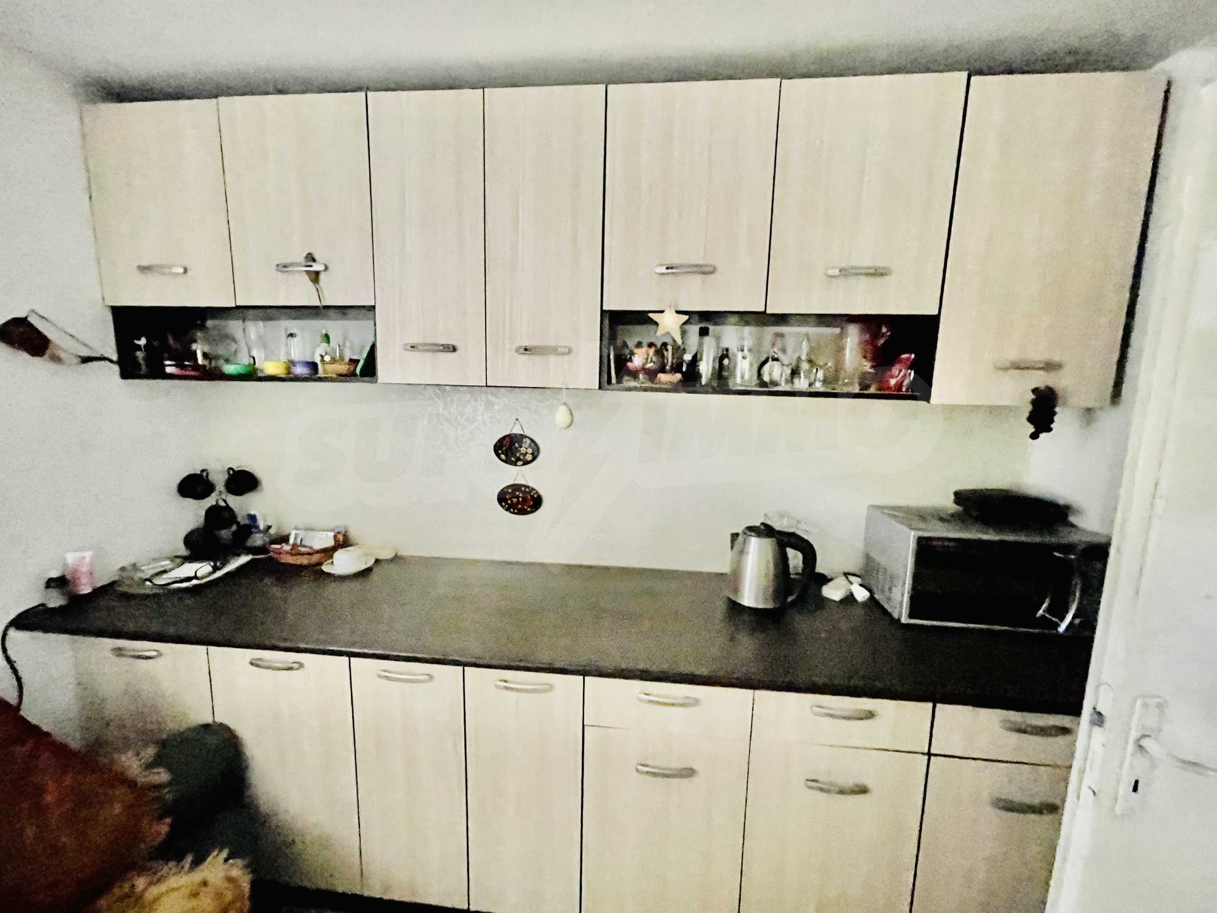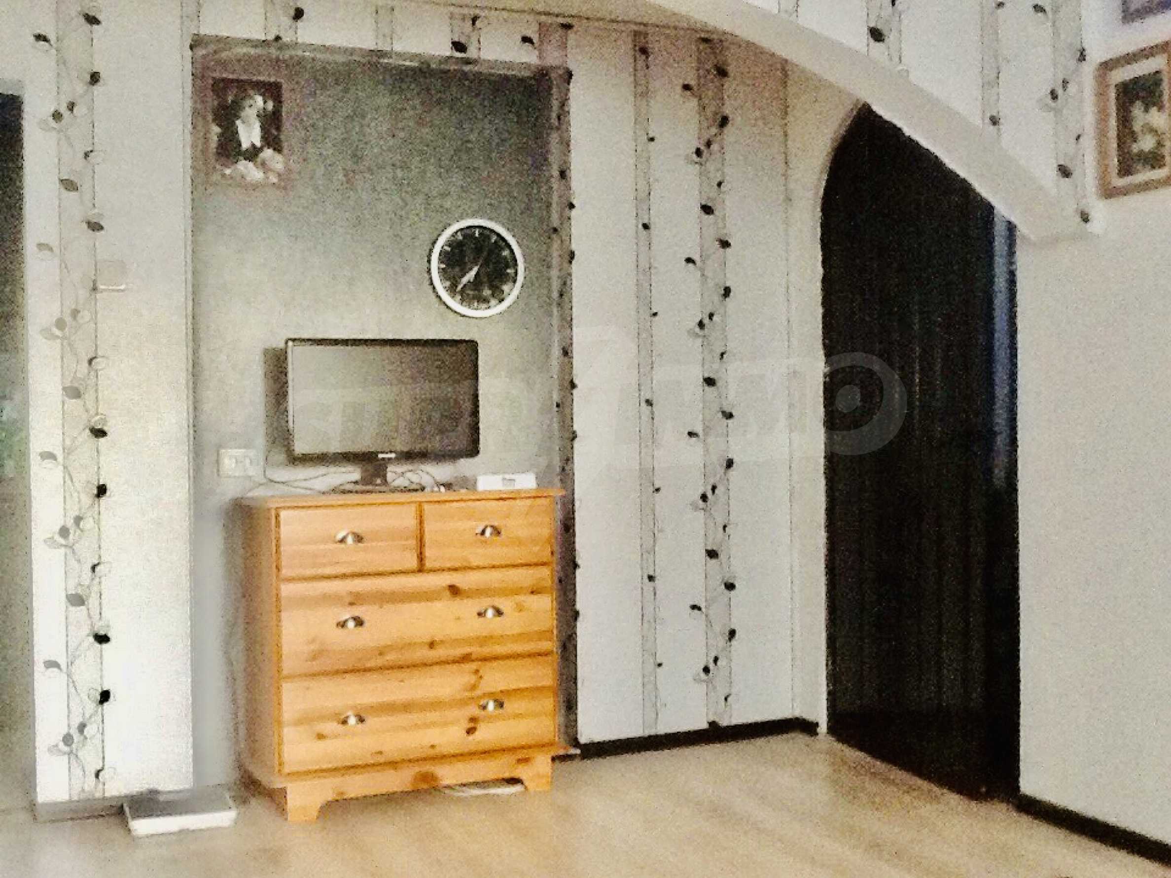 Другата стая е обзаведена с ъглов диван, фотьойли 2 бр., рафтове 3 бр., диван, трапезна маса, столове 4 бр., холна маса, щори, конвектор за отопление.В санитарното помещение има душ, бойлер, тоалетка.