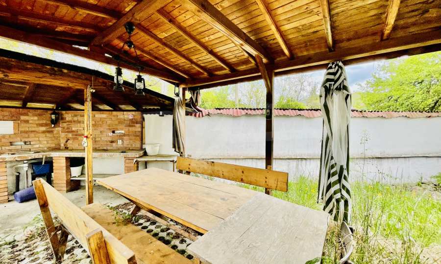 Имотът е разположен в УПИ с големина от 1000 кв.м. Къщата е строена в края на 90-те, със застроена площ 100 кв.м., РЗП 300 кв.м.