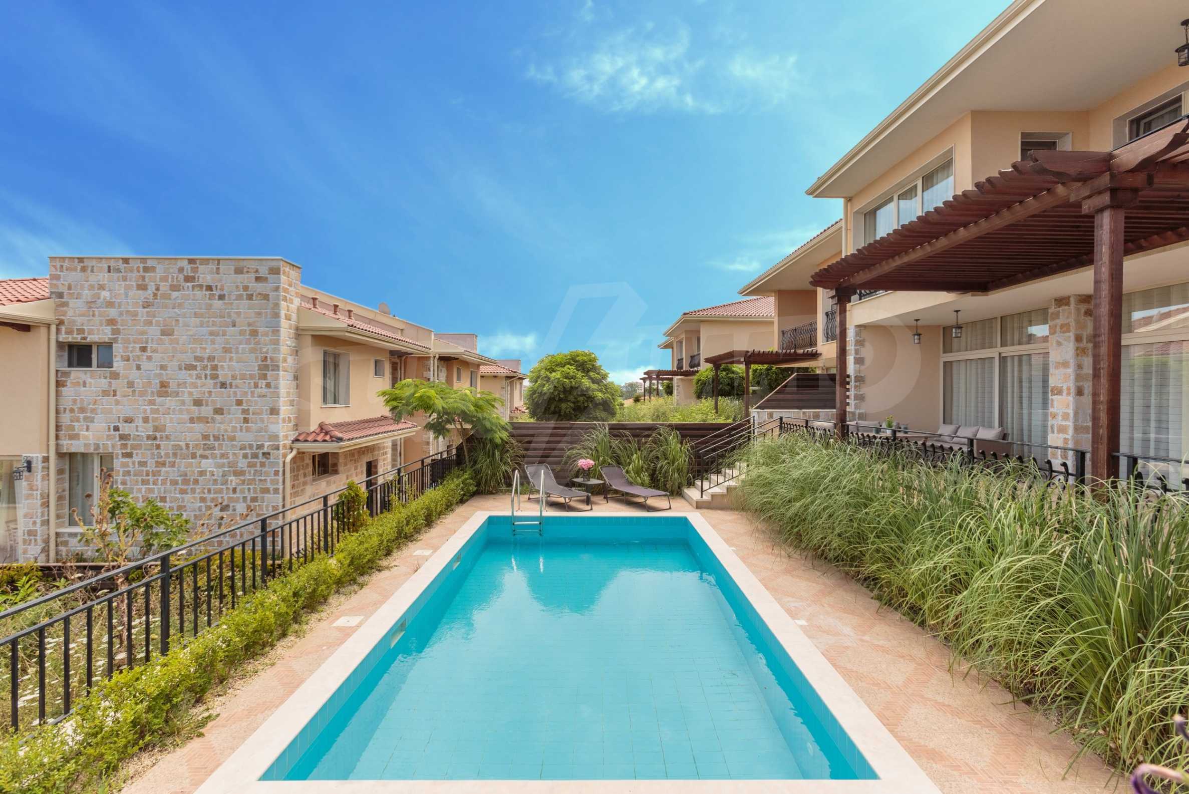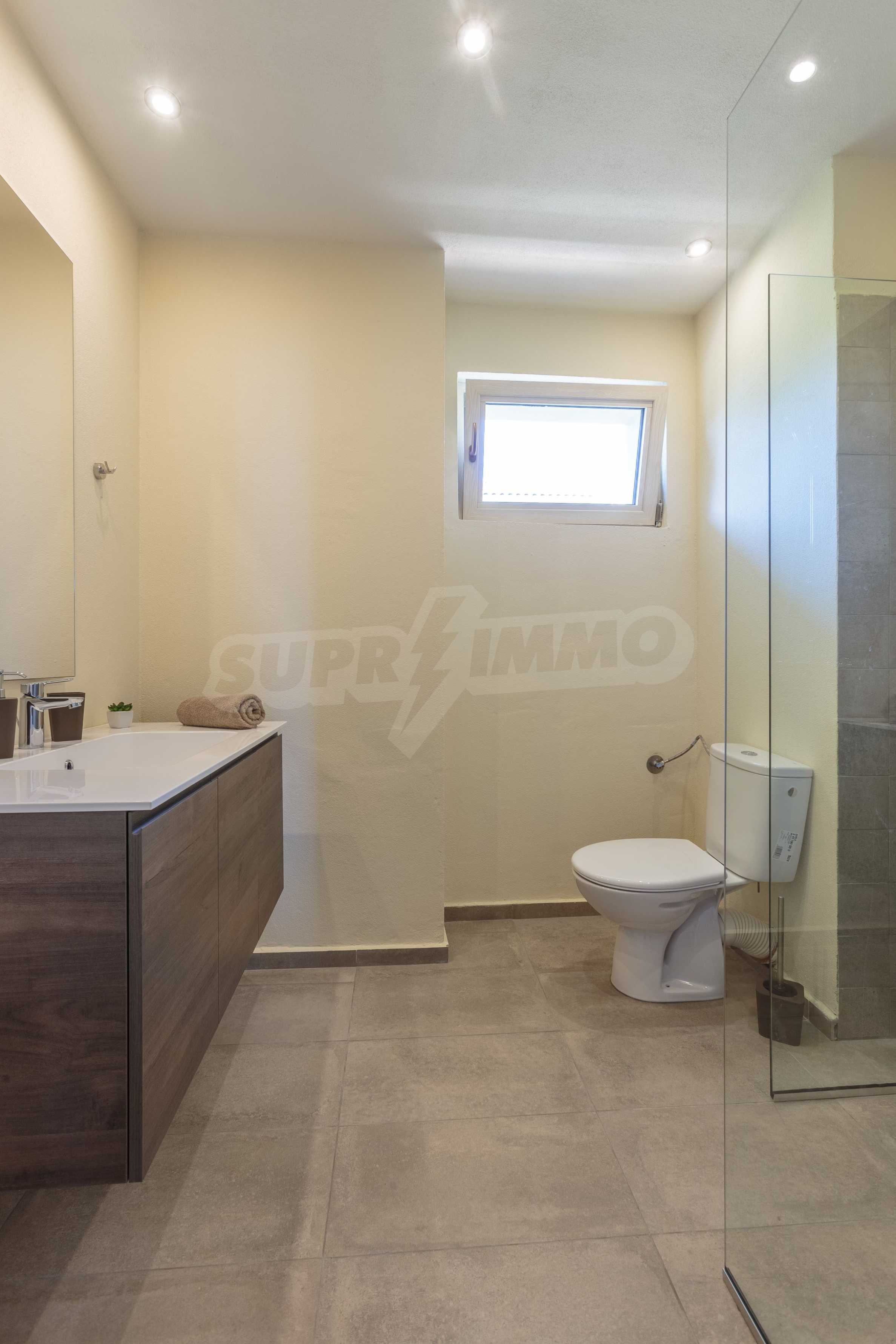 - Три спални, всяка със собствена баня и тоалетна;