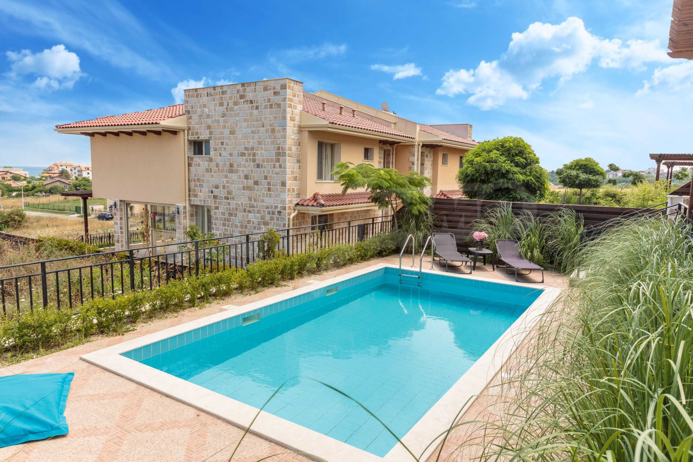 Представяме Ви за под наем привлекателна, комфортно обзаведена къща тип дуплекс, със самостоятелен басейн, разположена в близост до плаж Корал и Мечата дупка, само на 10 мин. от центъра на морския курорт Лозенец. Имотът е решен в чаровен средиземноморски стил, на две нива, с вътрешно стълбище, с прекрасна морска гледка и удобна локация.