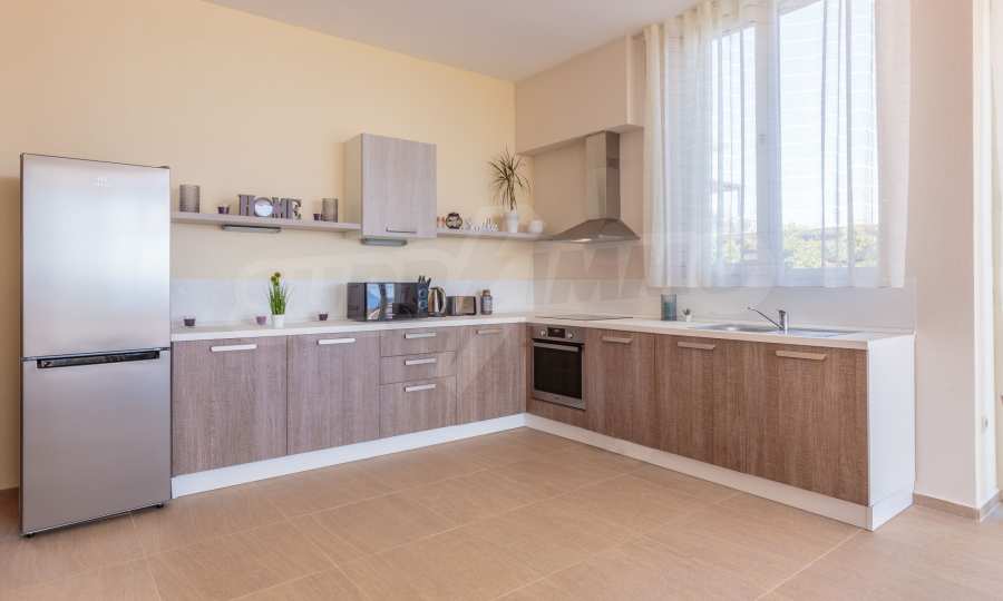 - Напълно оборудвана кухня, трапезария и кът с мека мебел;