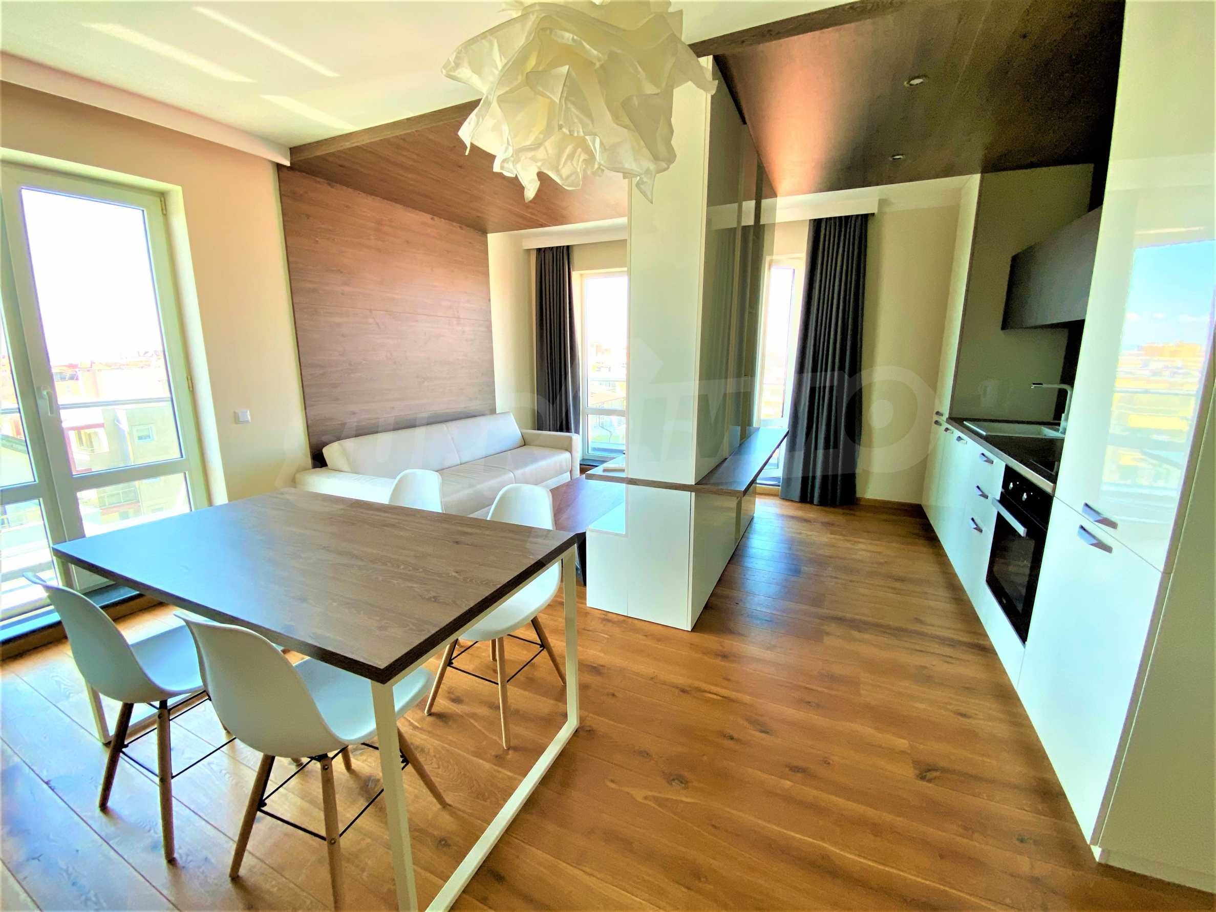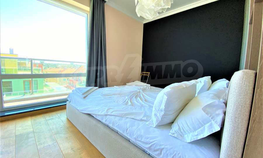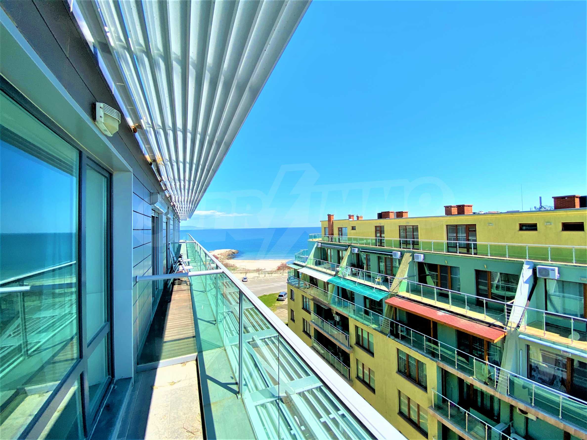 Светлина, панорама, бутиково изпълнение и простор - така можем да опишем този прекрасен тристаен пентхаус, разположен на 6-и етаж в модерна сграда ново строителство, на абсолютна първа линия море в Поморие.