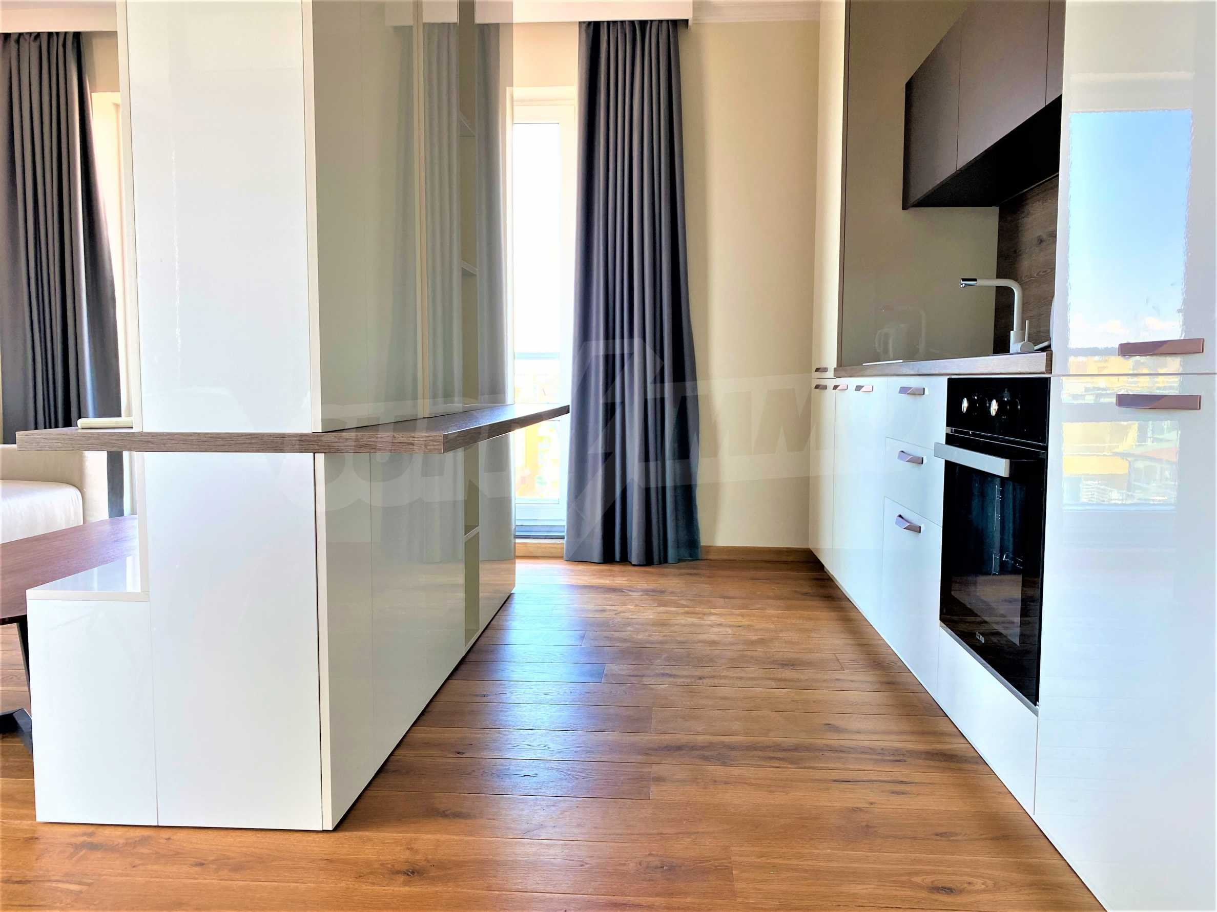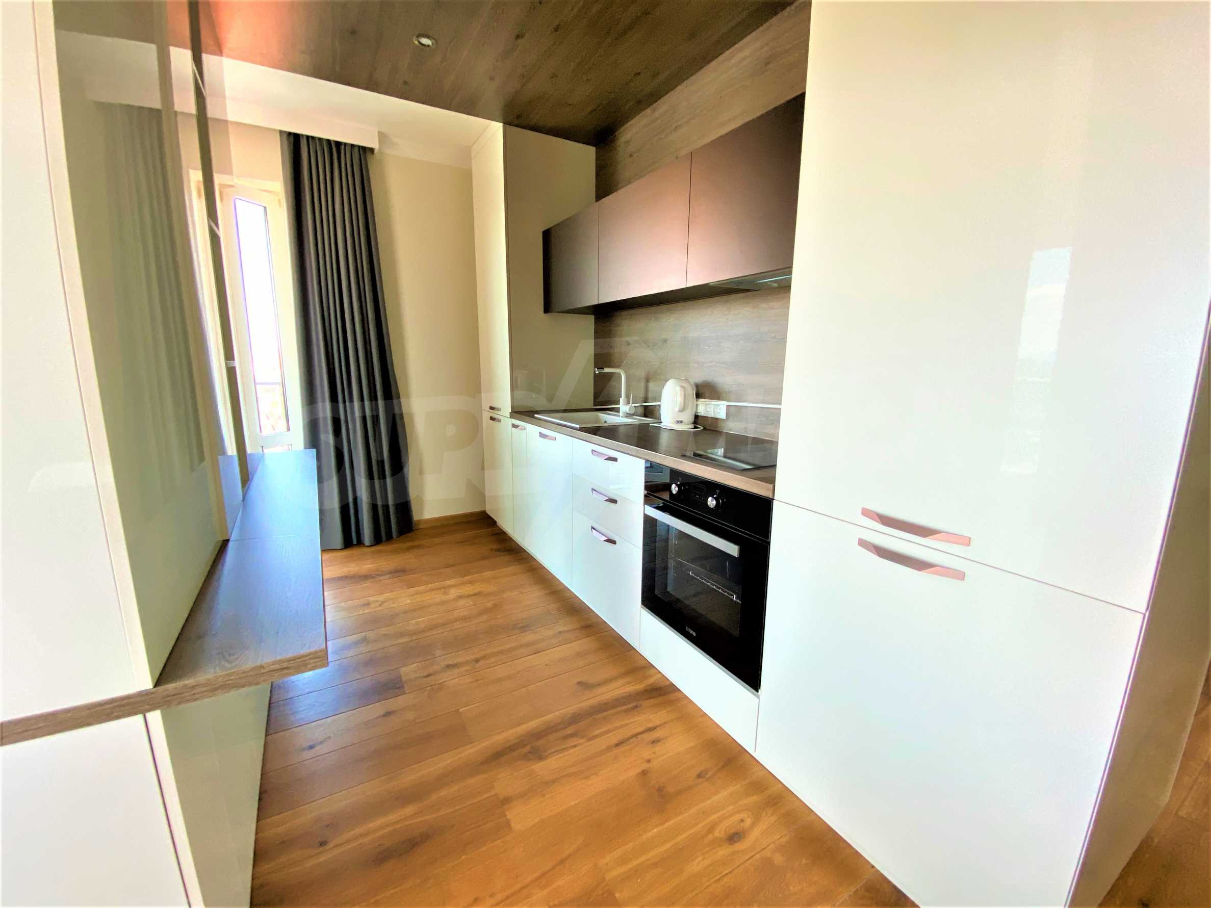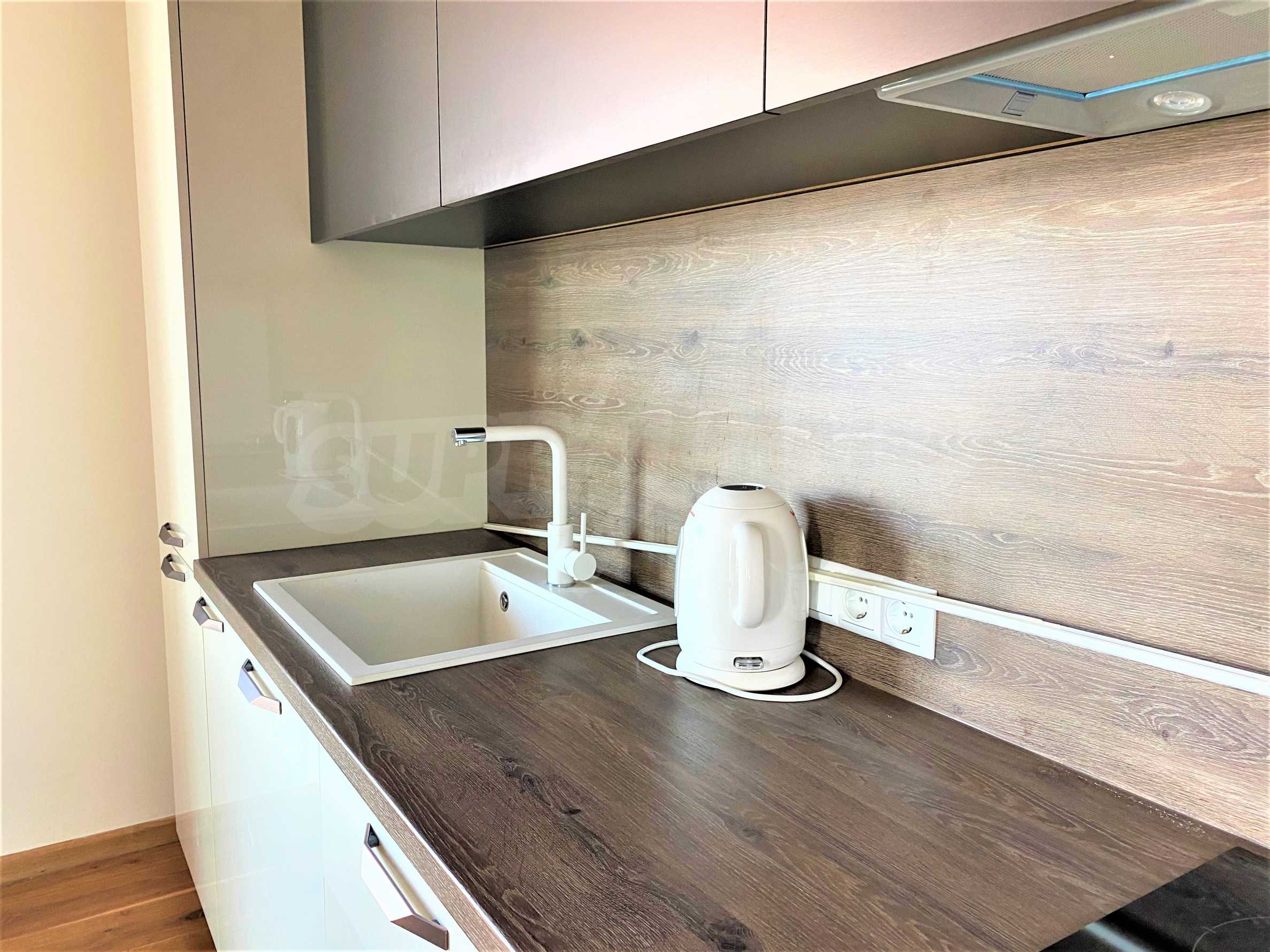 - Слънчева дневна с мека мебел, маса и столове, кухня с вградени уреди, с мивка от синтетичен гранит;