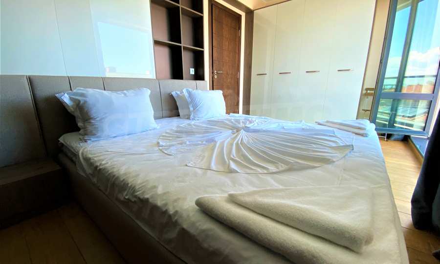 - Спалните са със стилни тапицирани легла, с висок клас матраци и гардероби, с прекрасни гледки към морето;
